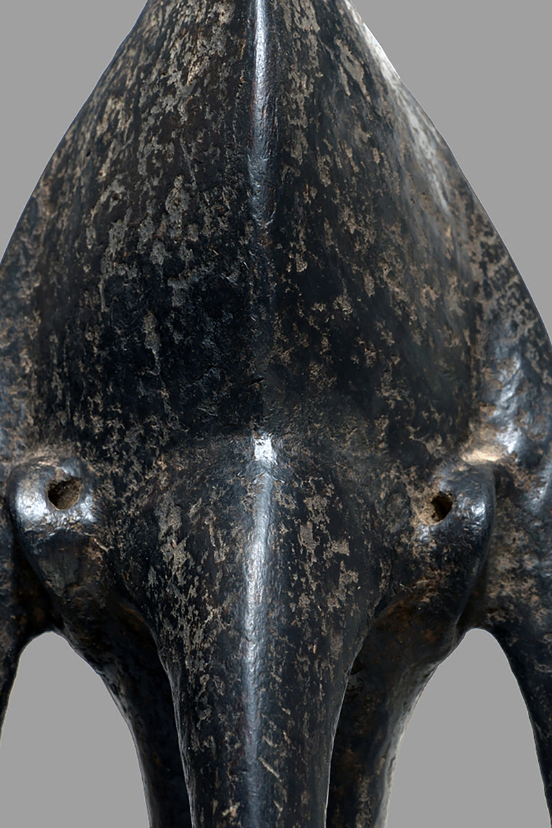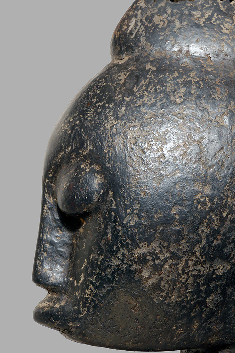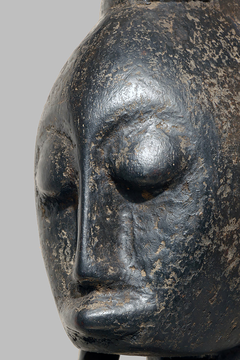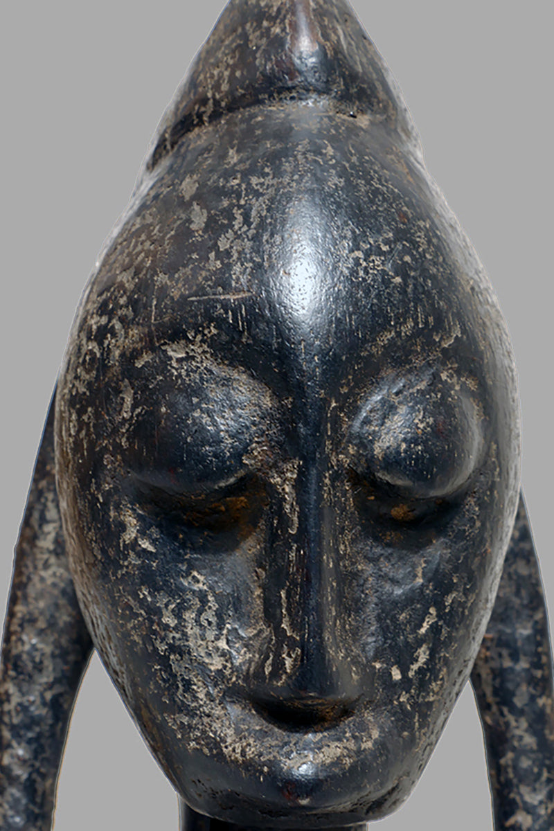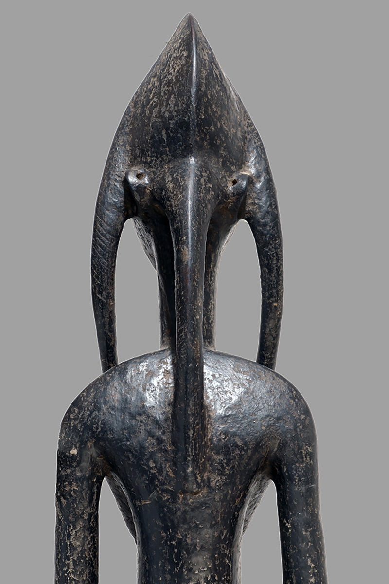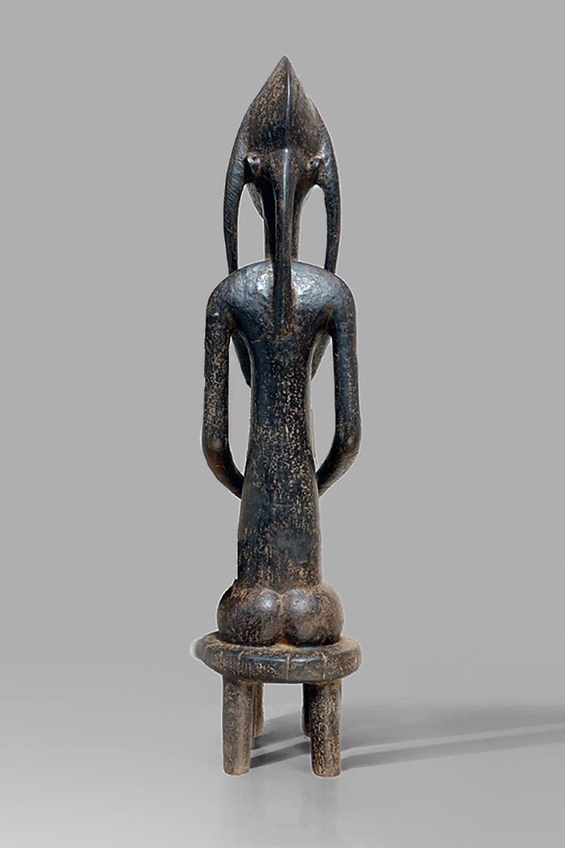 When Bamana sculptures of dignified men and women first appeared in Westren collections in the 1950sthe female figures were to as "Queens". They all came from the villages near Dioila and Bougouni in the region of the Baoule river before it joins the Bagoe to form the Bami, a tributary of the Niger river, but none arrived with any documentation (Kate Ezra, A Human Ideal in African Art. Bamana Figurative Sculpture (New York, 1986) Youssouf Tata Cissé ( Arts d´ Afrique, Paris 2000, p.15) told us, that the female figures represent the goddess of water and the primordial mother and that the groups were displayed every seven years in relevant ceremonies. In the years after 1950 till the beginning of the 1960s most of the Bamana Jo sculptures were stolen from the fields. It is more or less unknown how the cult of the Jo/Gwan society is practicing their knowledge nowdays. The last important fieldworks in the Bamana Region are done by Kate Ezra and Sarah Brett-Smith more than twenty years ago. A wellknown Parisian Tribal Art dealer told me, that the Jo statuettes, which were placed on the fields, and which have a special weathered patina, doesn´t exist anymore in the Bamana region. Only the statues, which were protected in the huts of the villages have "survived". They have a different patina, they are extremly rare but sometimes it is possible to find one of this authentic big Bamana-statues.