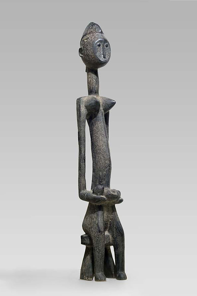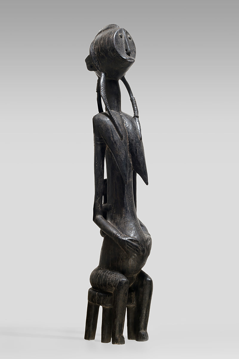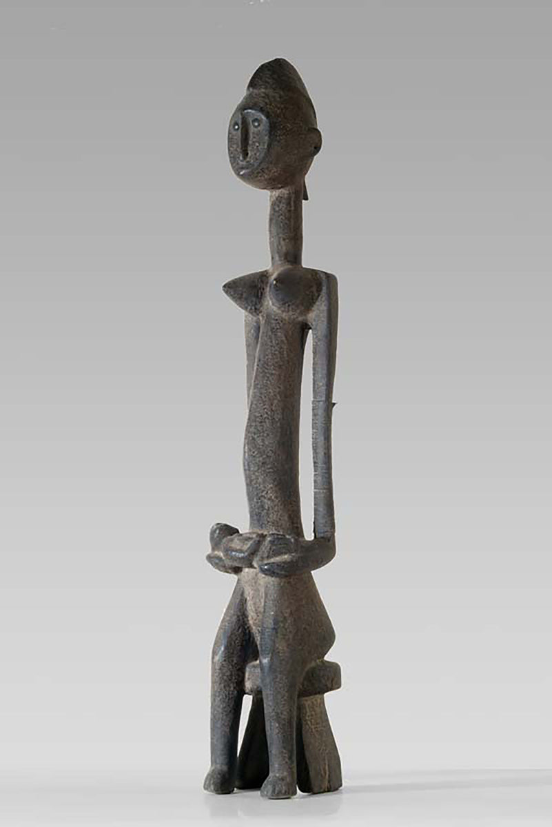 A Bamana Maternity, collected in the Tamani region, heavy, hard wood, traces of sacifications.