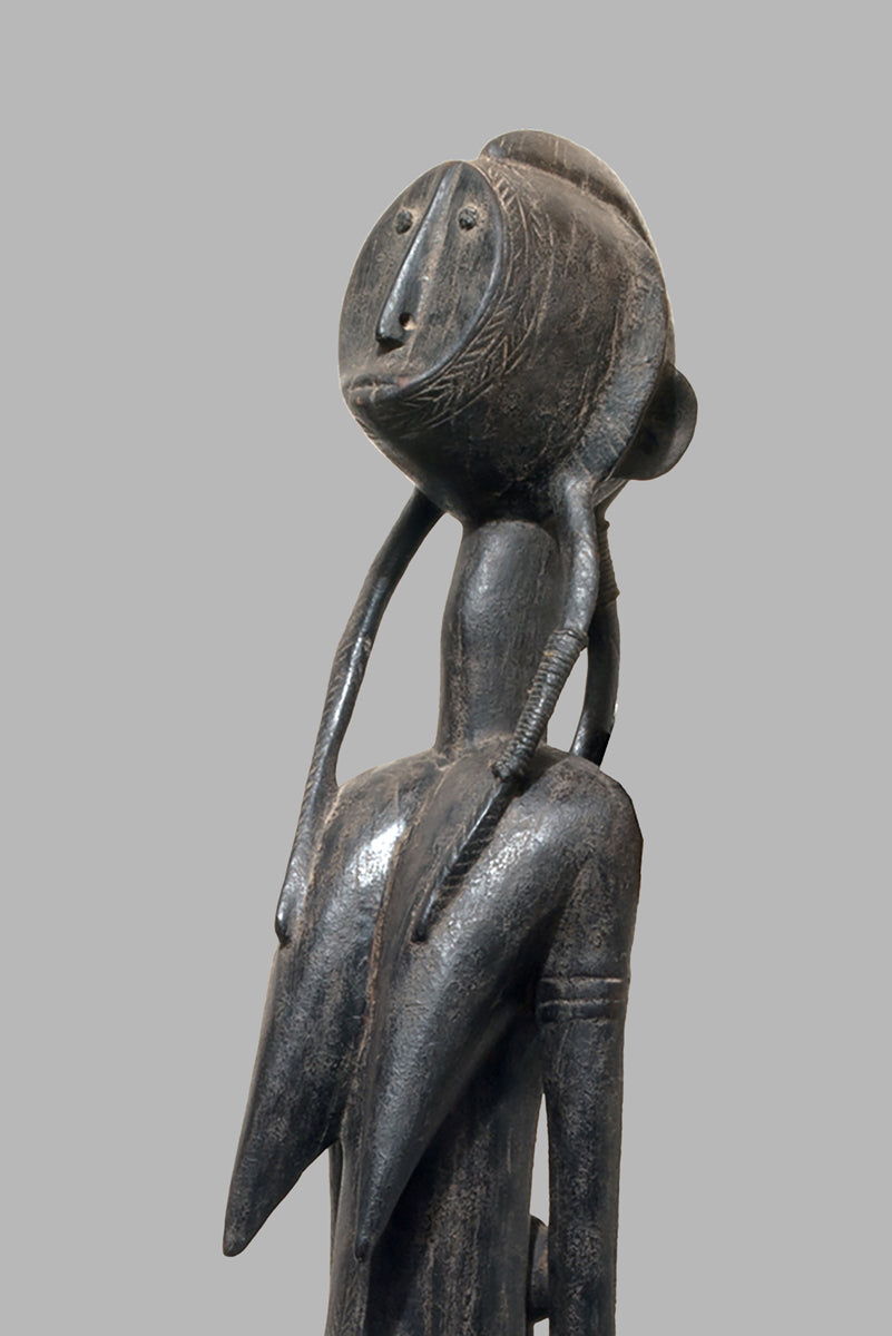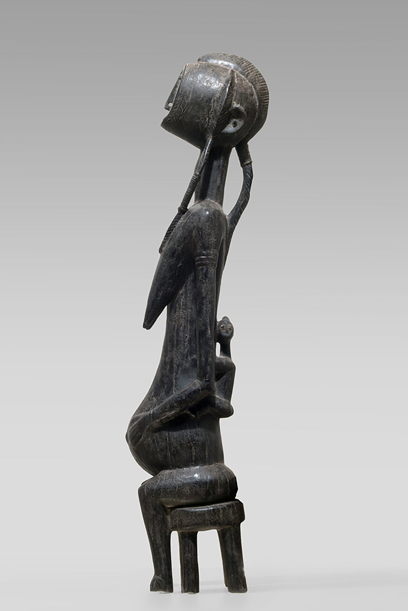 The Bamana (or Bambara) are one of the largest ethnic groups in Mali, known for a rich tradition of wood carving. Maternity figures, or Gwandusu, are often part of Jo society rituals—a women's initiation and leadership group. These figures honor ideals of fertility, motherhood, moral strength, and ancestral lineage.