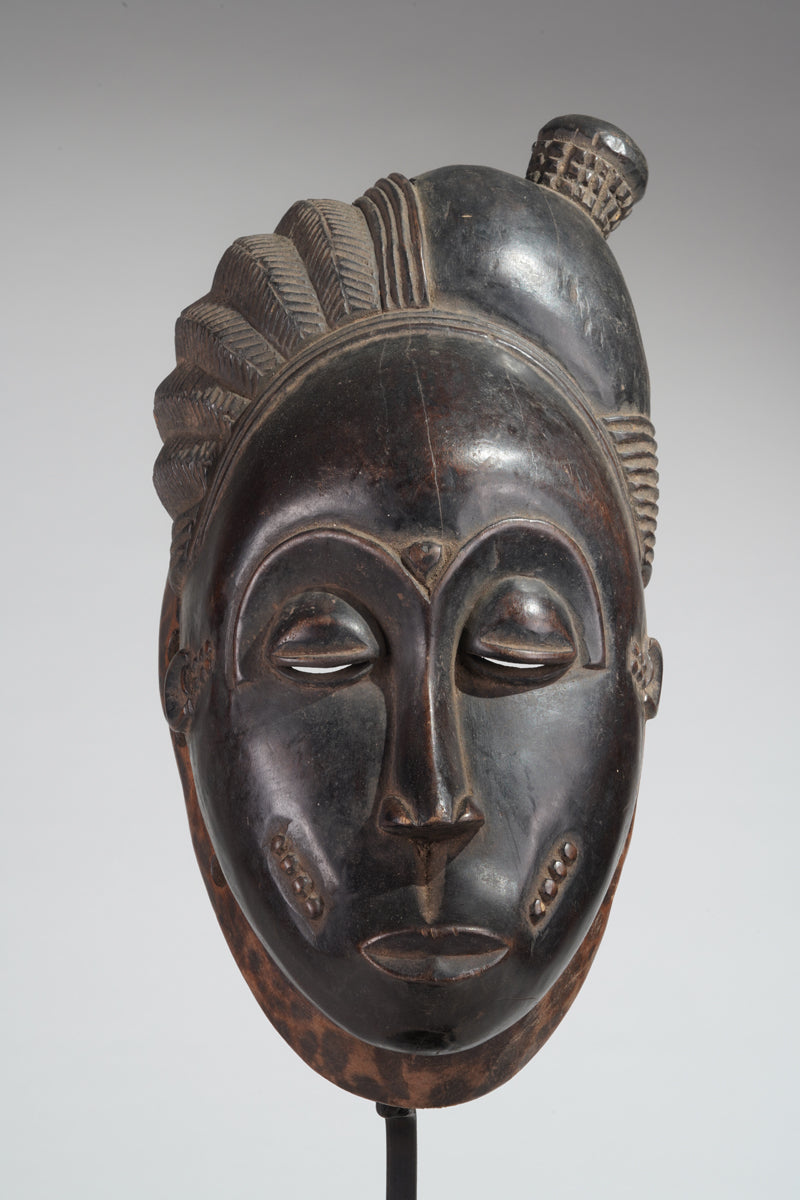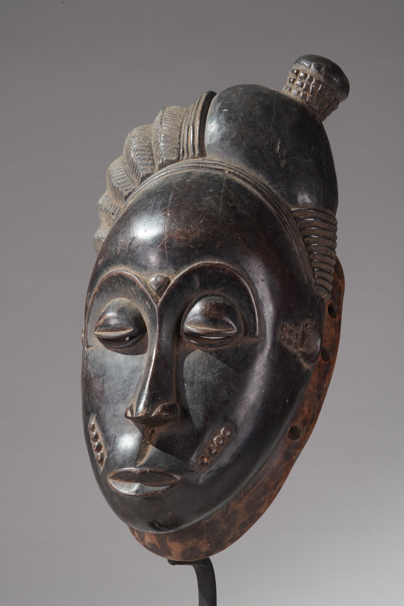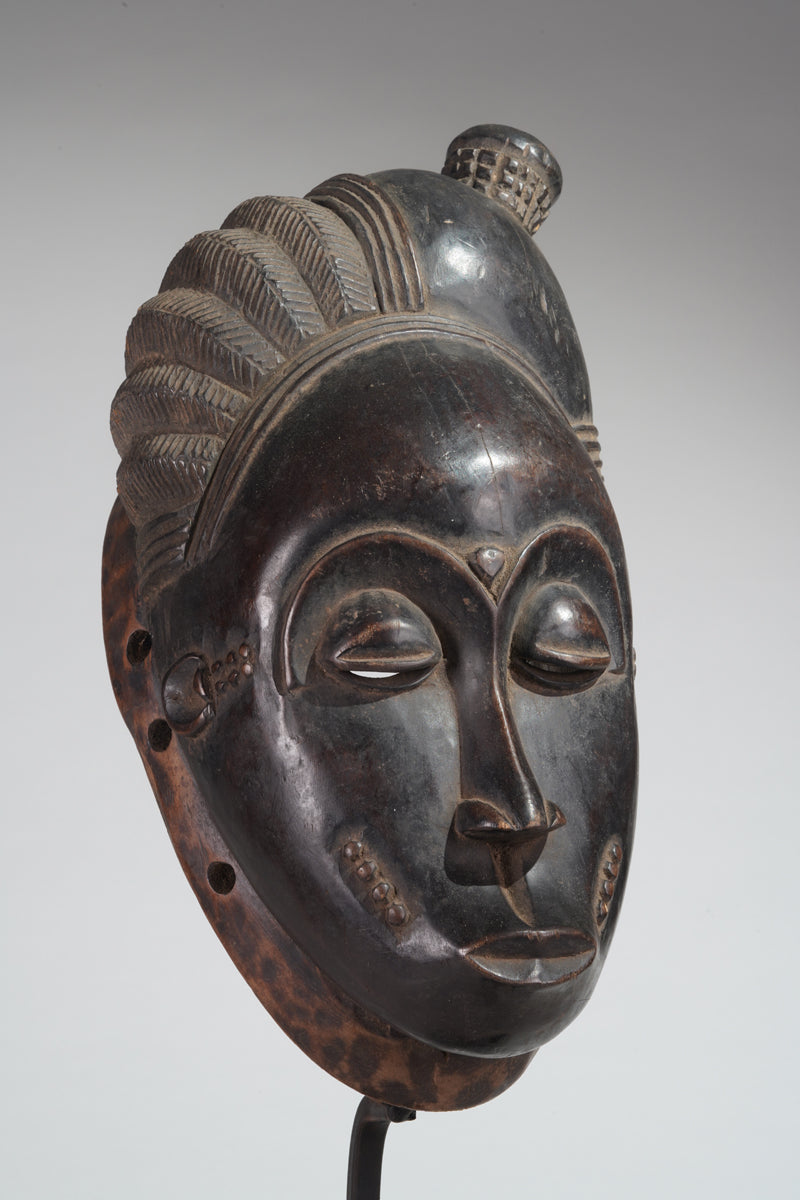 Hairdressing in African art is a rich and meaningful subject. Hairstyles in African cultures are not just about aesthetics—they often carry deep social, cultural, spiritual, and identity significance. The asymmetric hairdress on Baule masks is typically characteristic of masks from the Didievi region in Côte d’Ivoire.