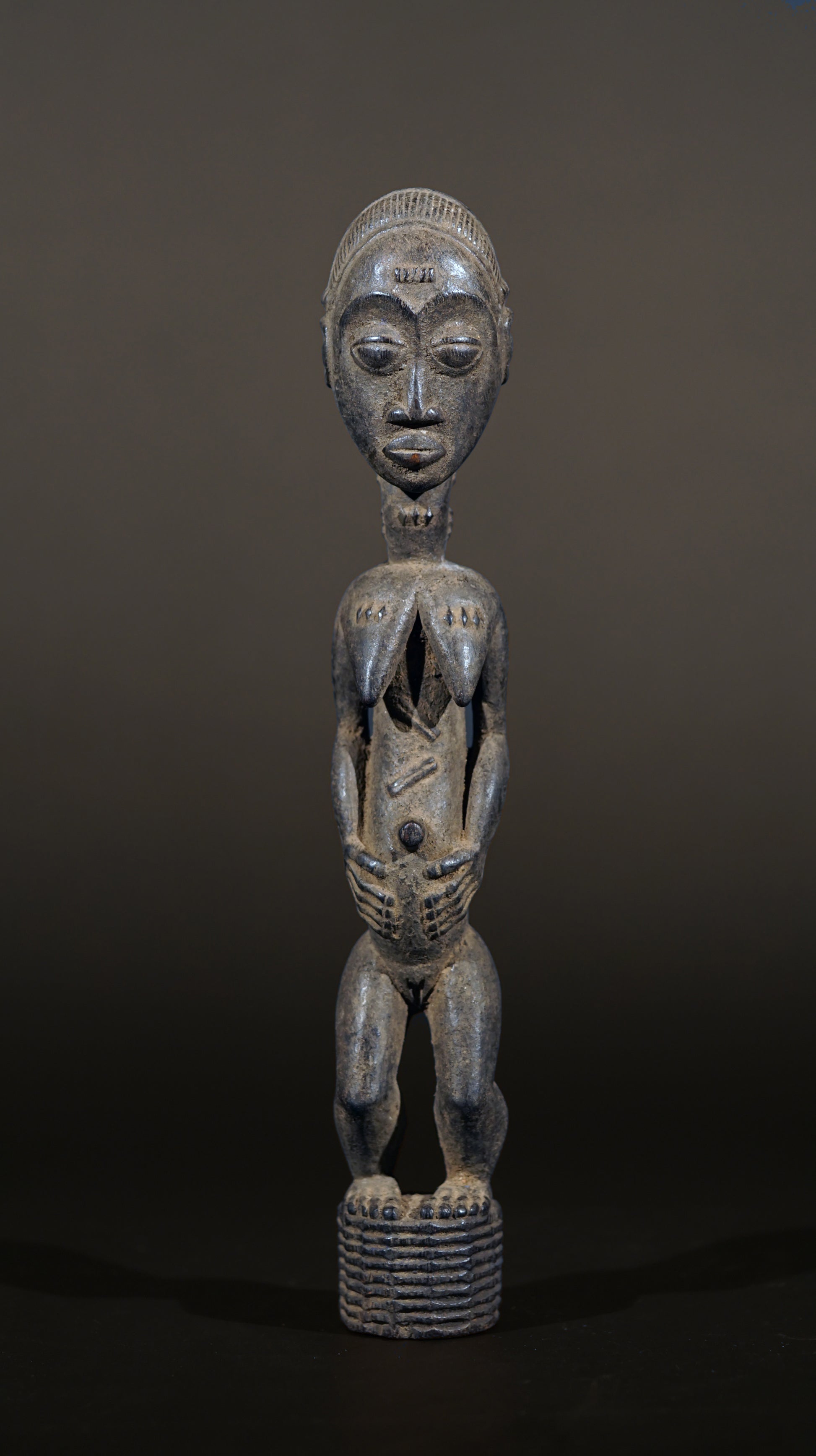 Lit.: A male Baule sculpture, the workshop of Master of Sakassou (atelier des Maîtres de Sakassou).