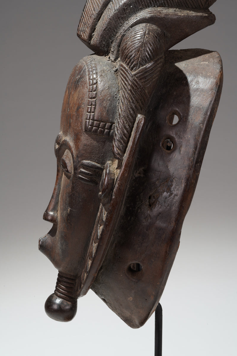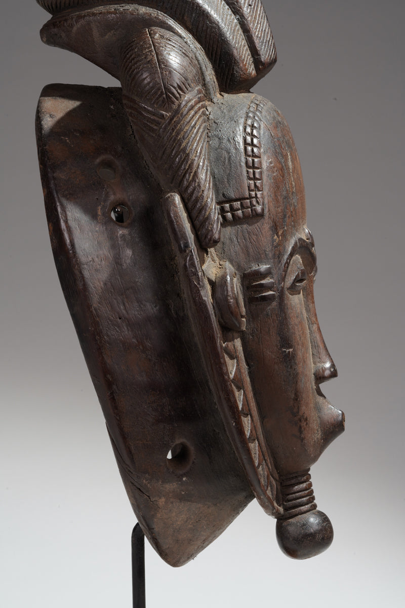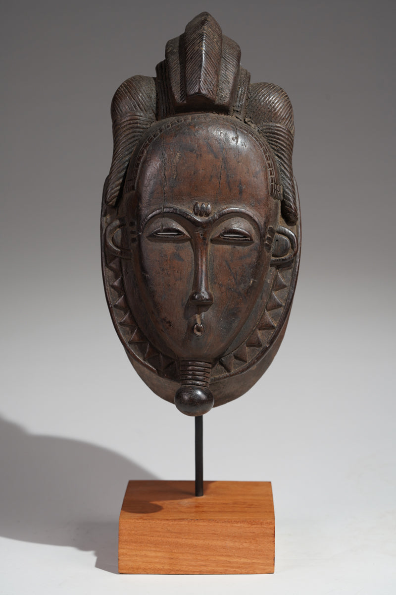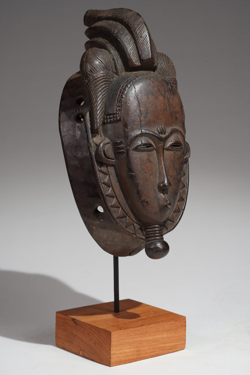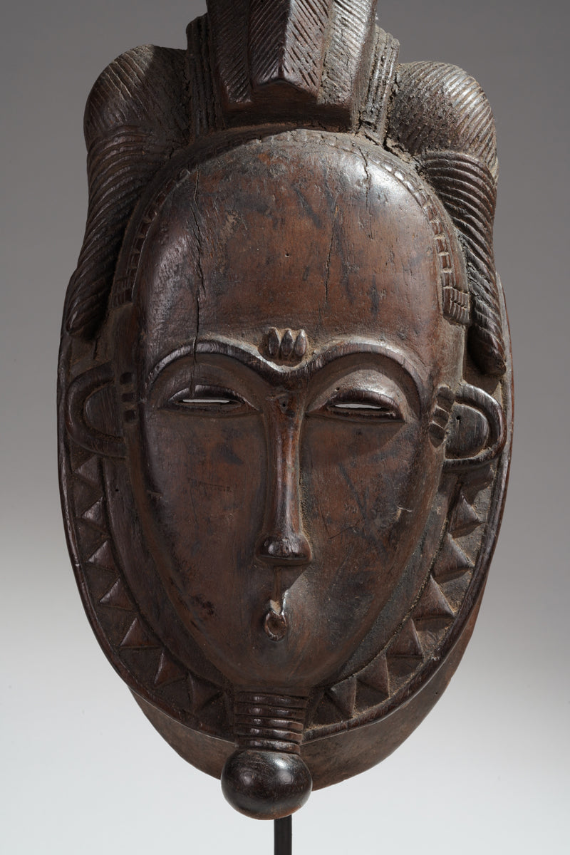 A Baule mask (masque de rejouissance), Ivory Coast, Sakassou region. Signs of ritual use; Certificate of origin and provenance. Incl. stand