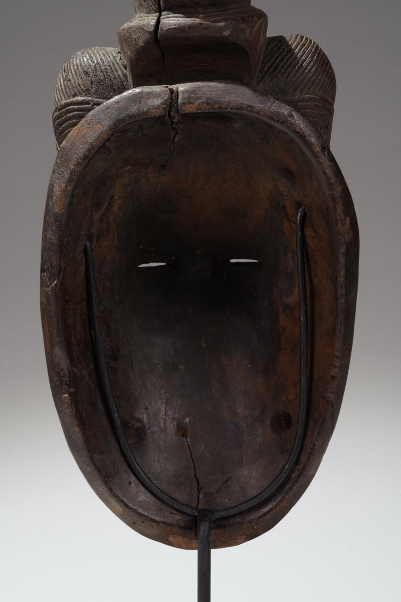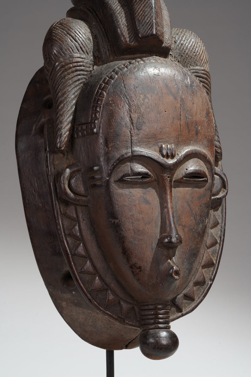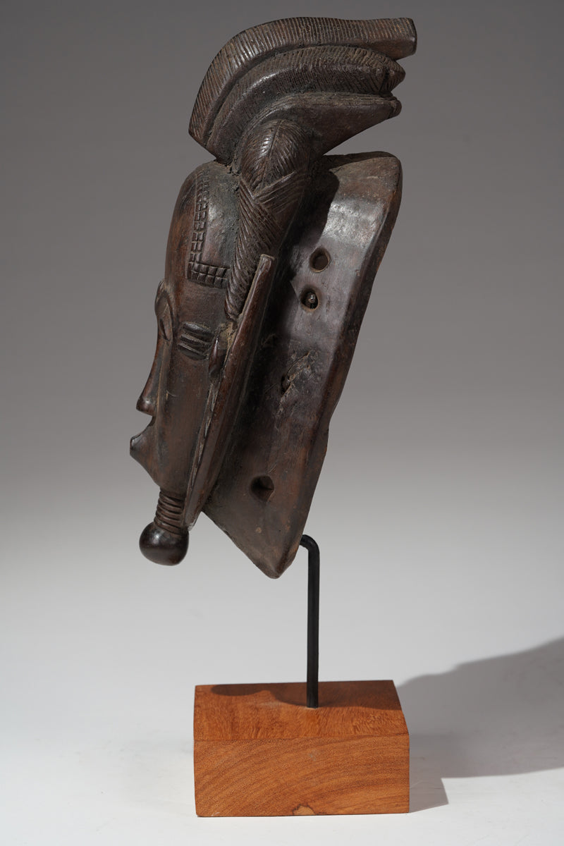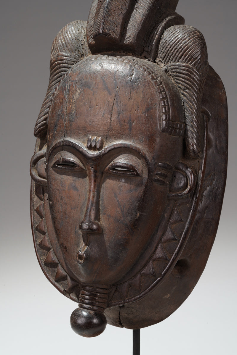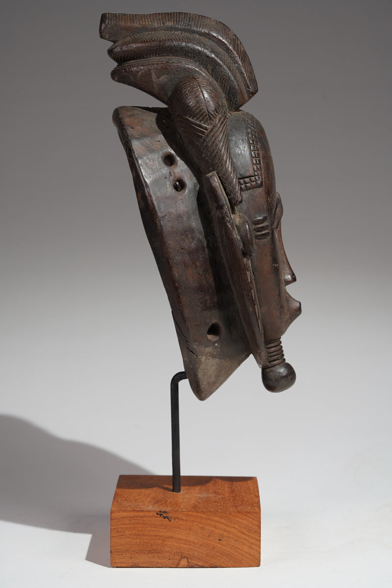 A Baule mask (masque de rejouissance), Ivory Coast, Sakassou region. Signs of ritual use; Certificate of origin and provenance. Incl. stand