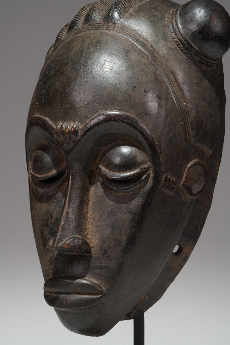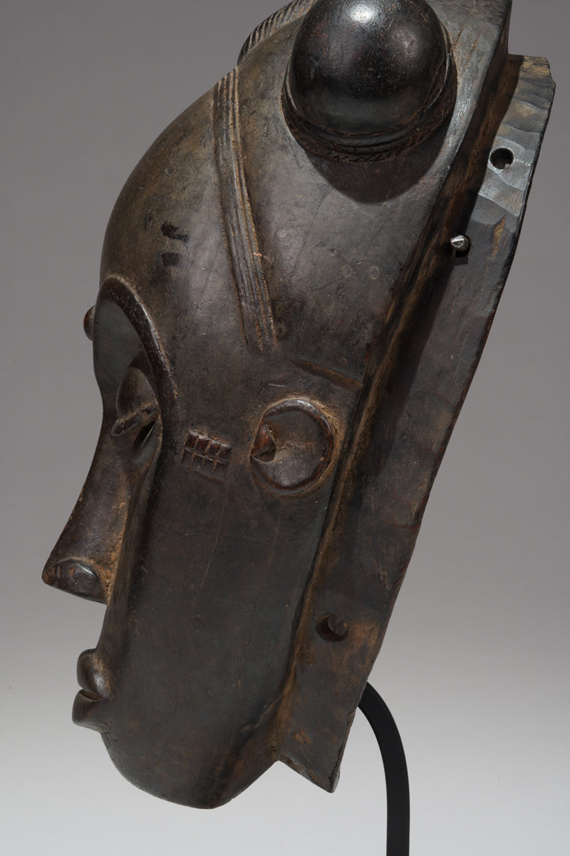 A Baule mask (masque de rejouissance), Ivory Coast, Daoukrou region. Signs of ritual use; Certificate of origin and provenance. Incl. stand.
