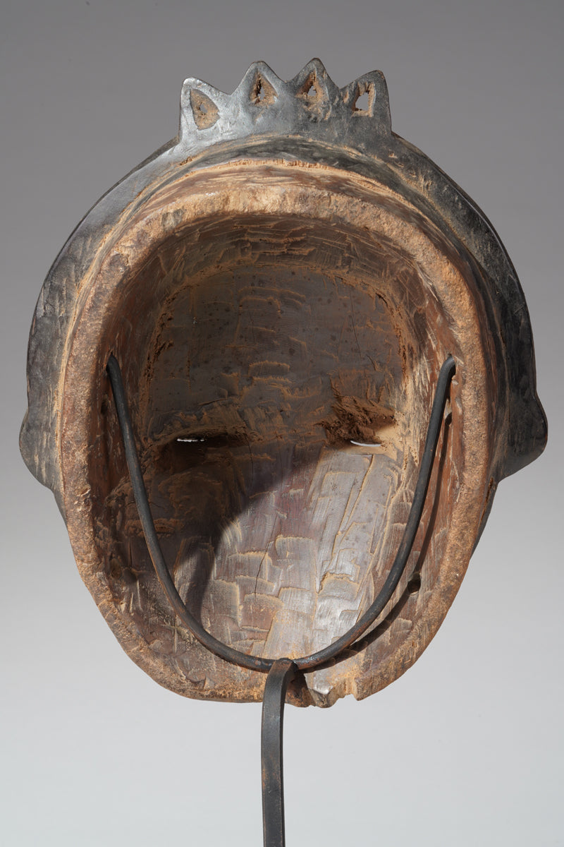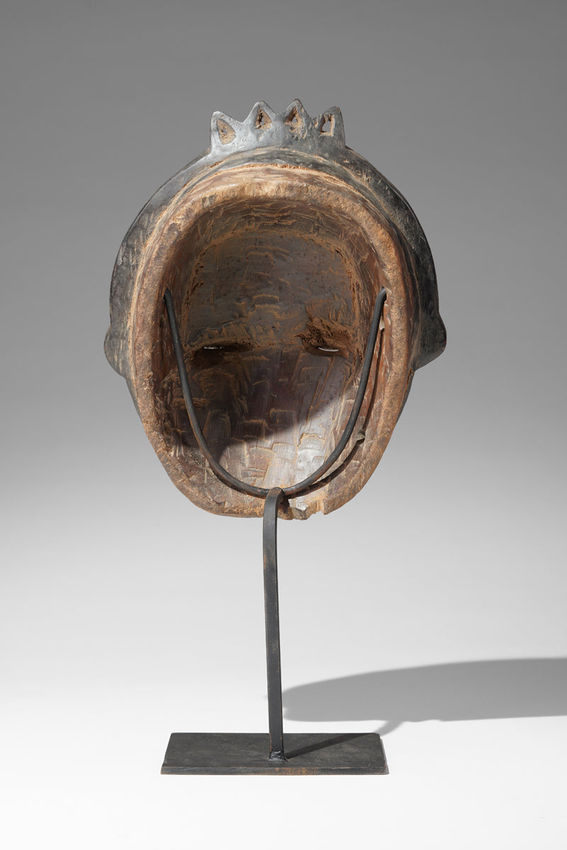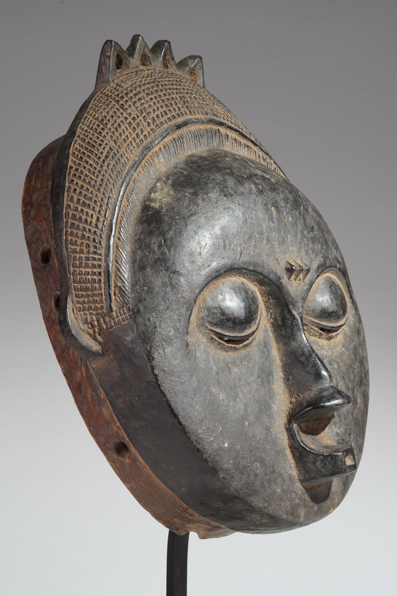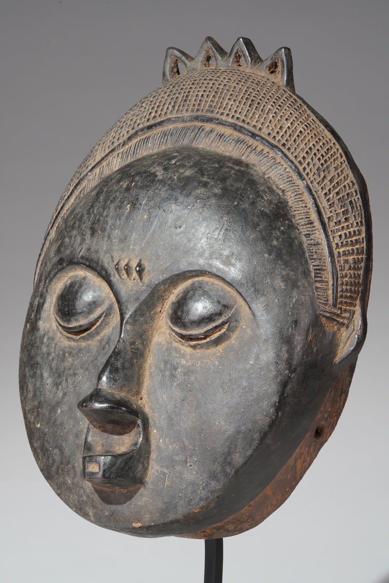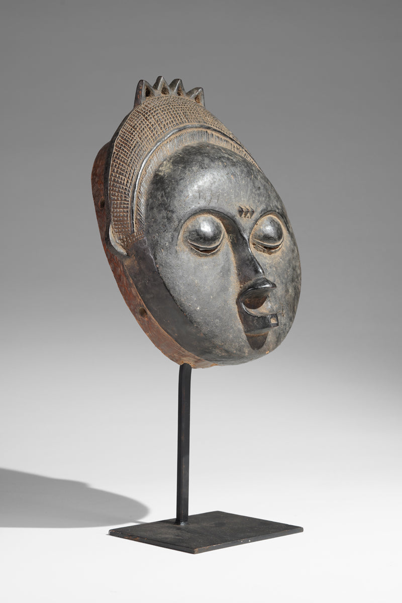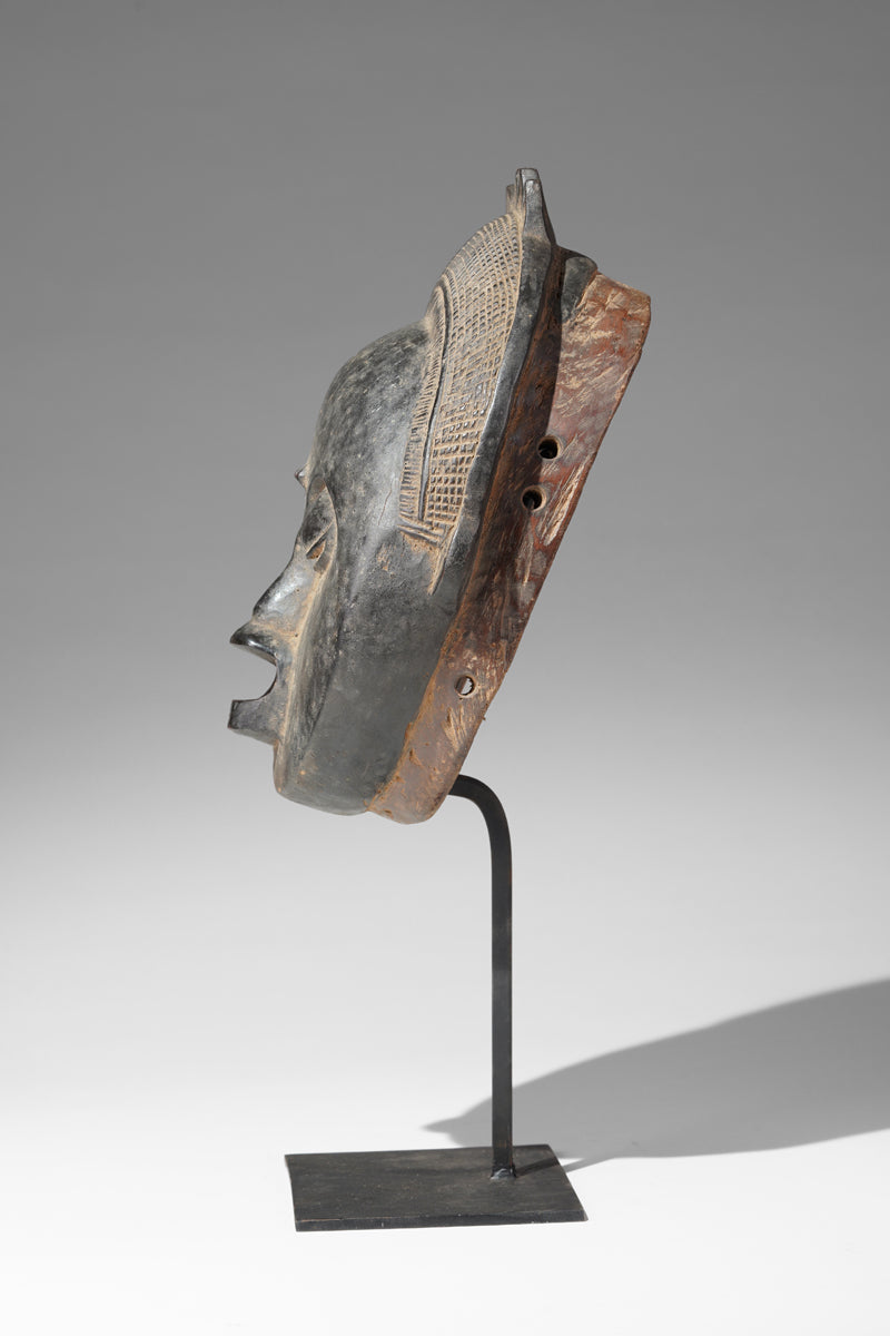 "Portrait masks embody the core Baule sculptural style that is echoed in figural sculpture and decorative arts. They also have provided Baule sculptors with their prime opportunity for artistic invention, and the corpus demonstrates enormous formal diversity. This diversity is often apparent in imaginative decorative passages extending above the face […] Such masks appeared as the final sequence of an operatic public entertainment known as Mblo. Mblo performances consist of a succession of dances that escalate in complexity and importance, culminating ultimately in tributes to the community's most distinguished member. Individuals honored in this way are depicted by a mask that is conceived of as their artistic double or namesake."
