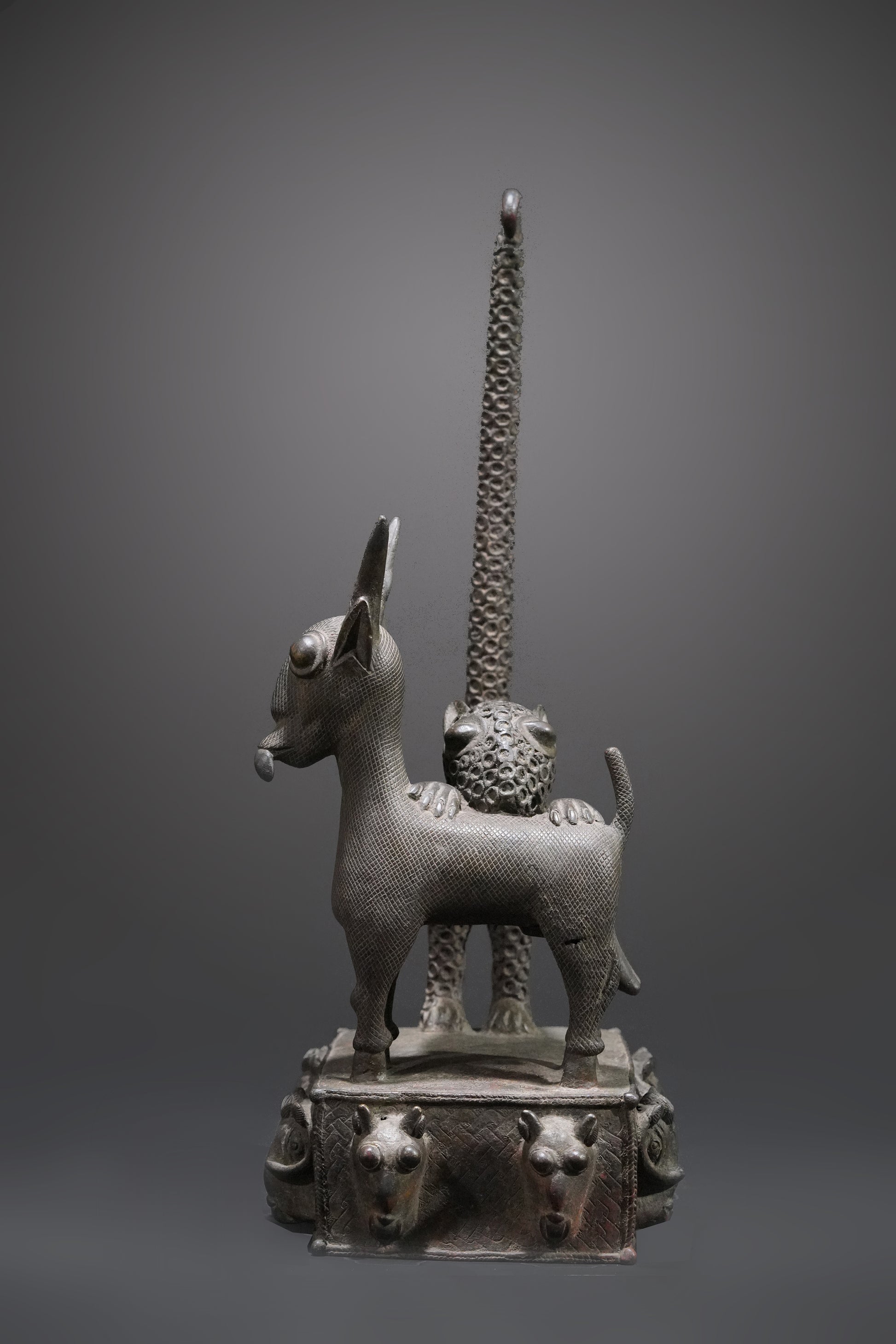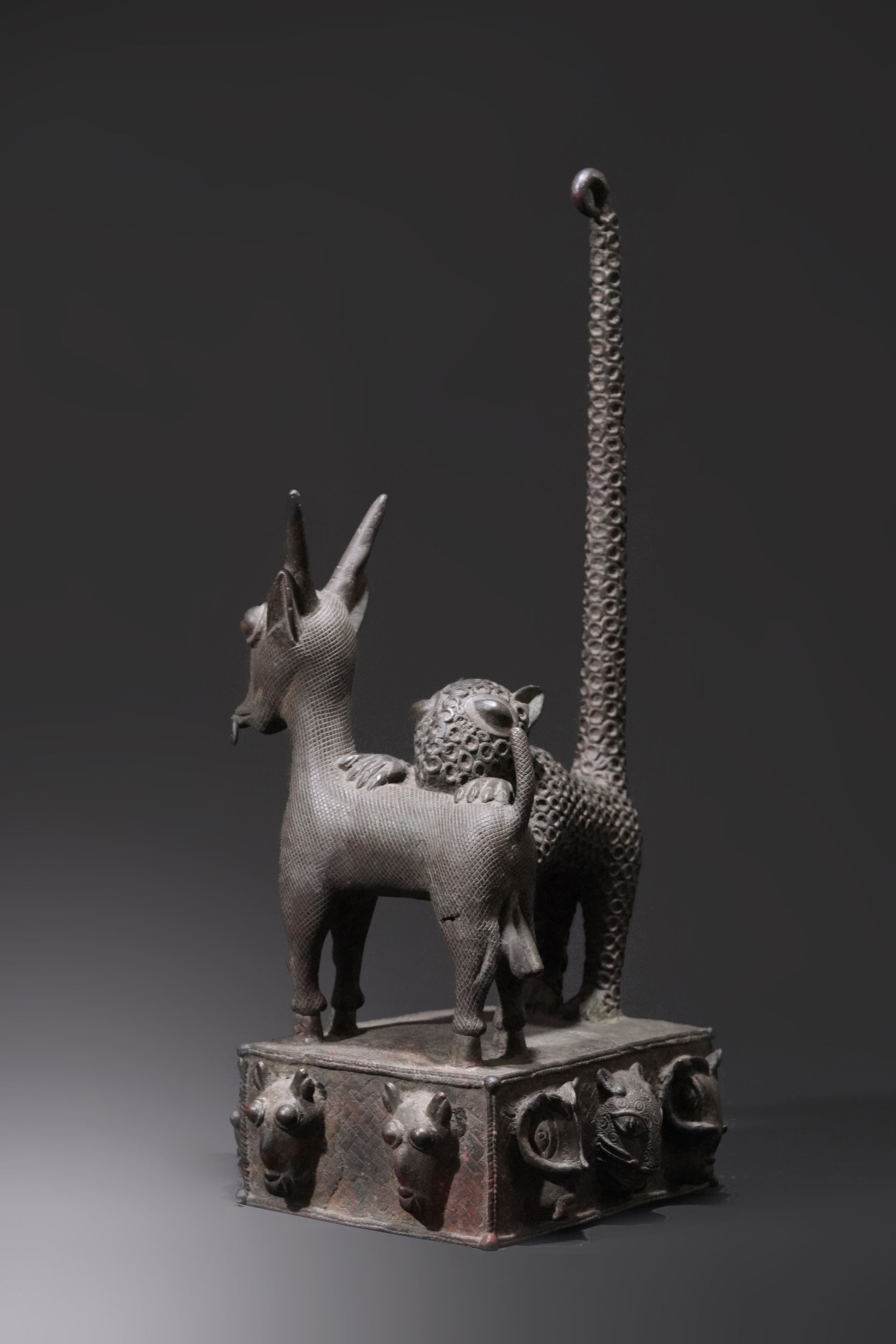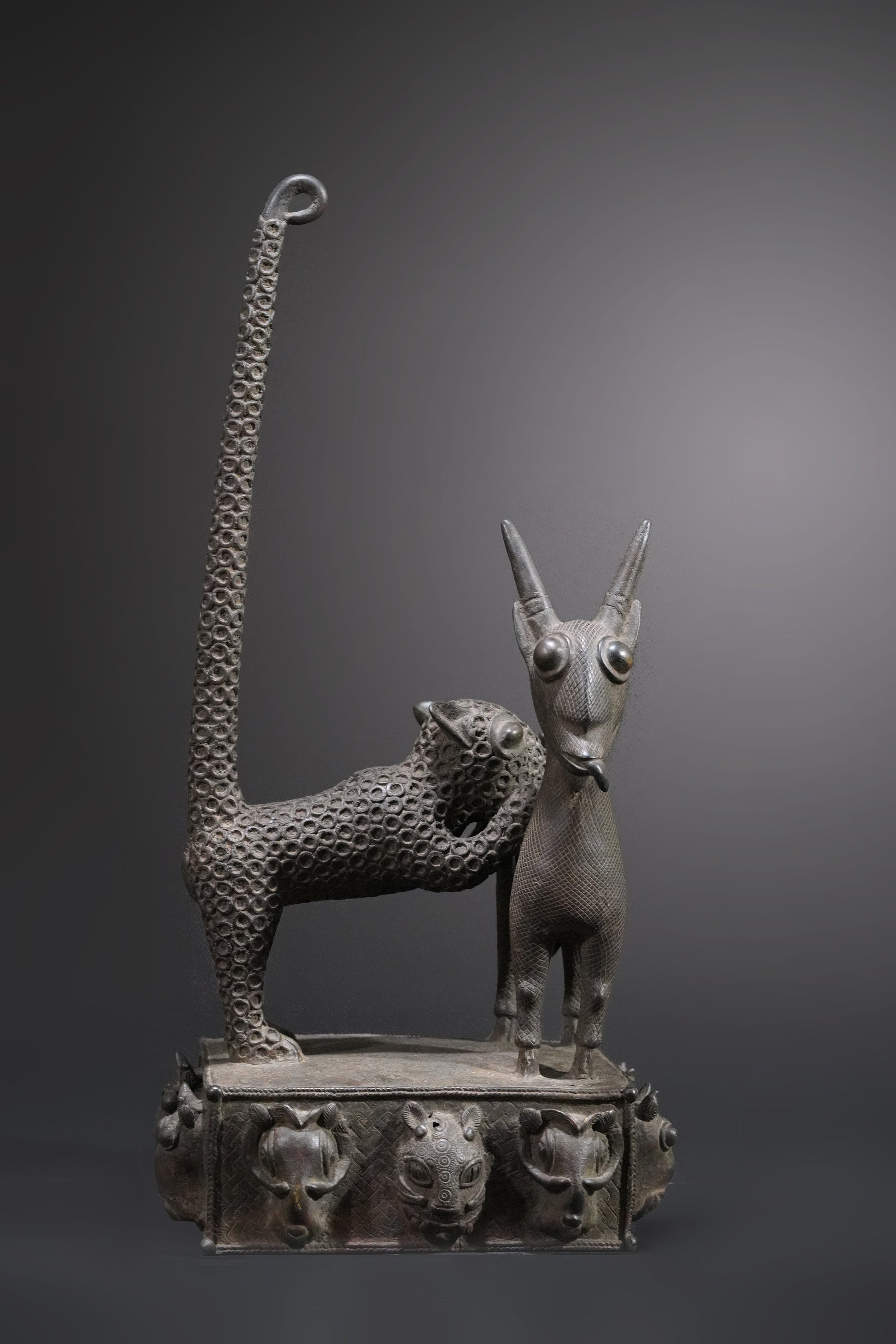 A Benin animal bronze, "A panther hunts an antelope"