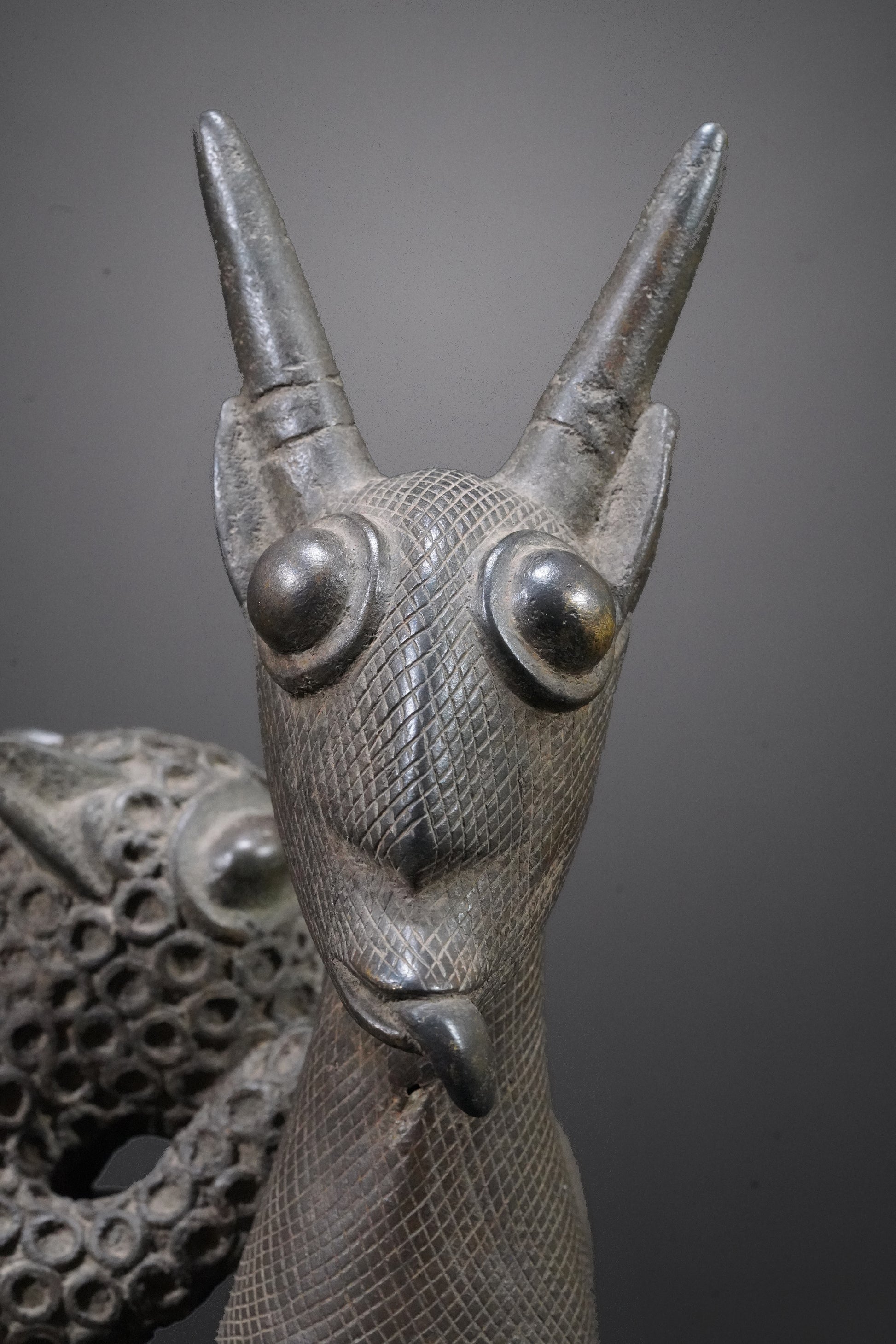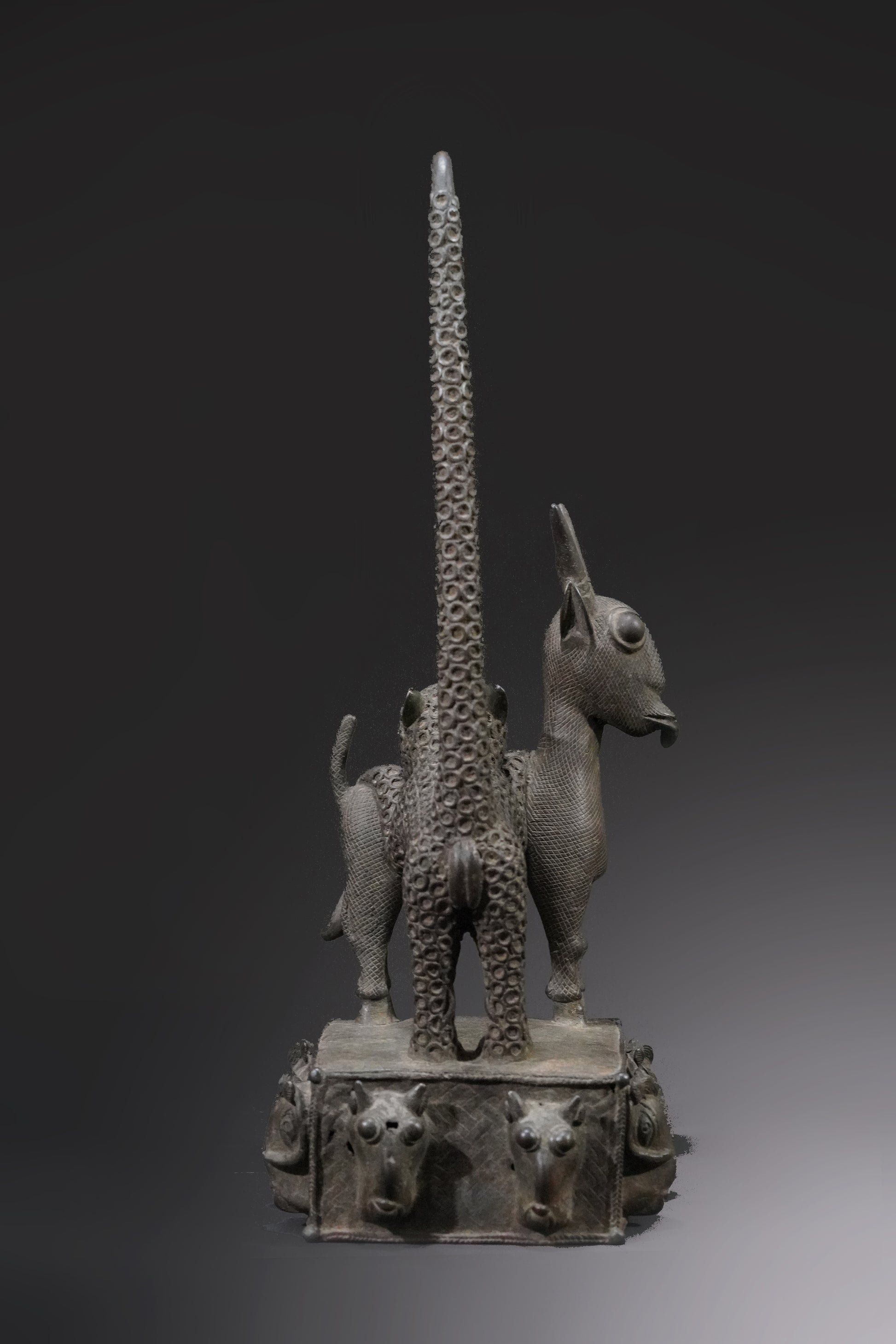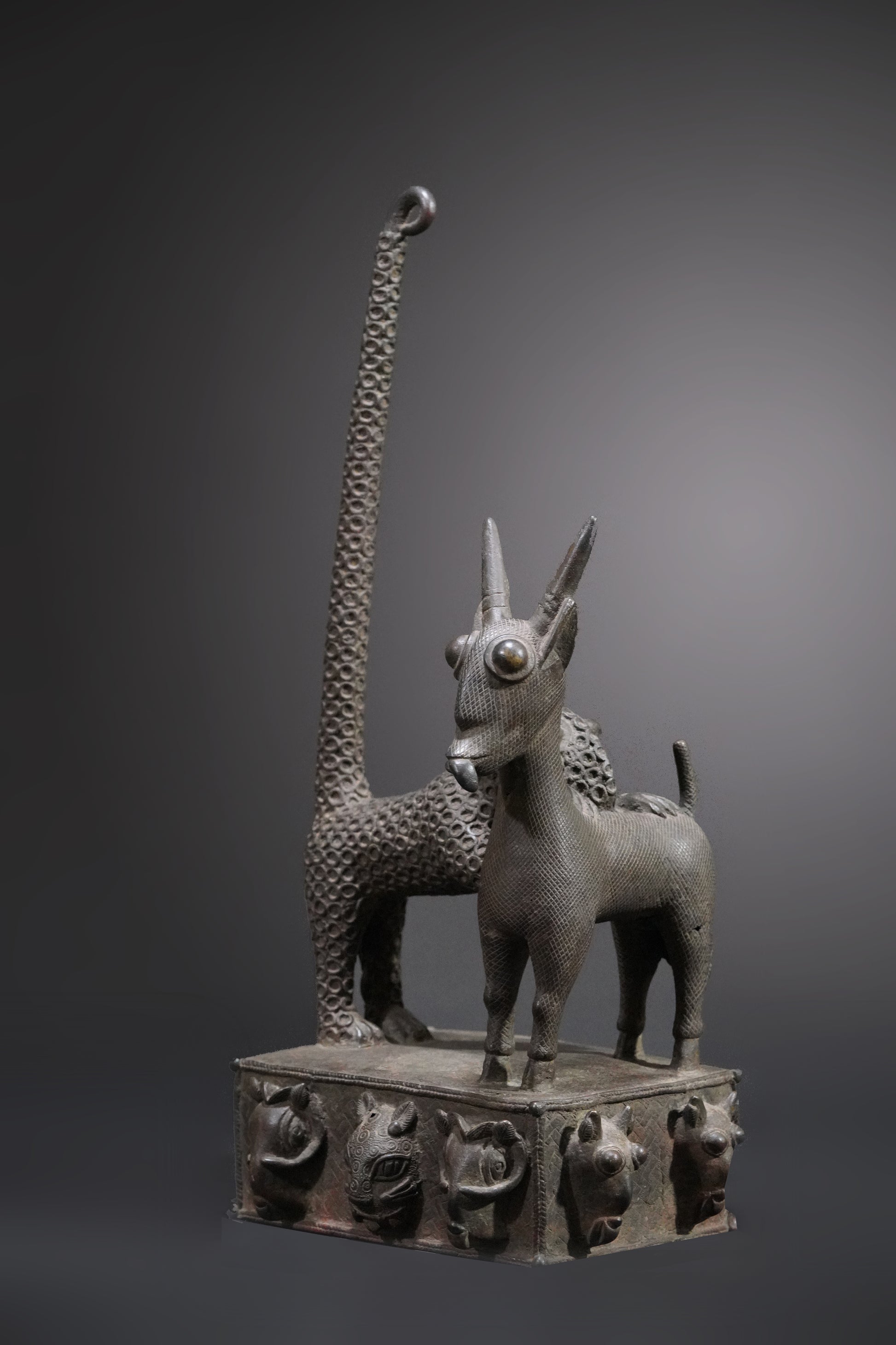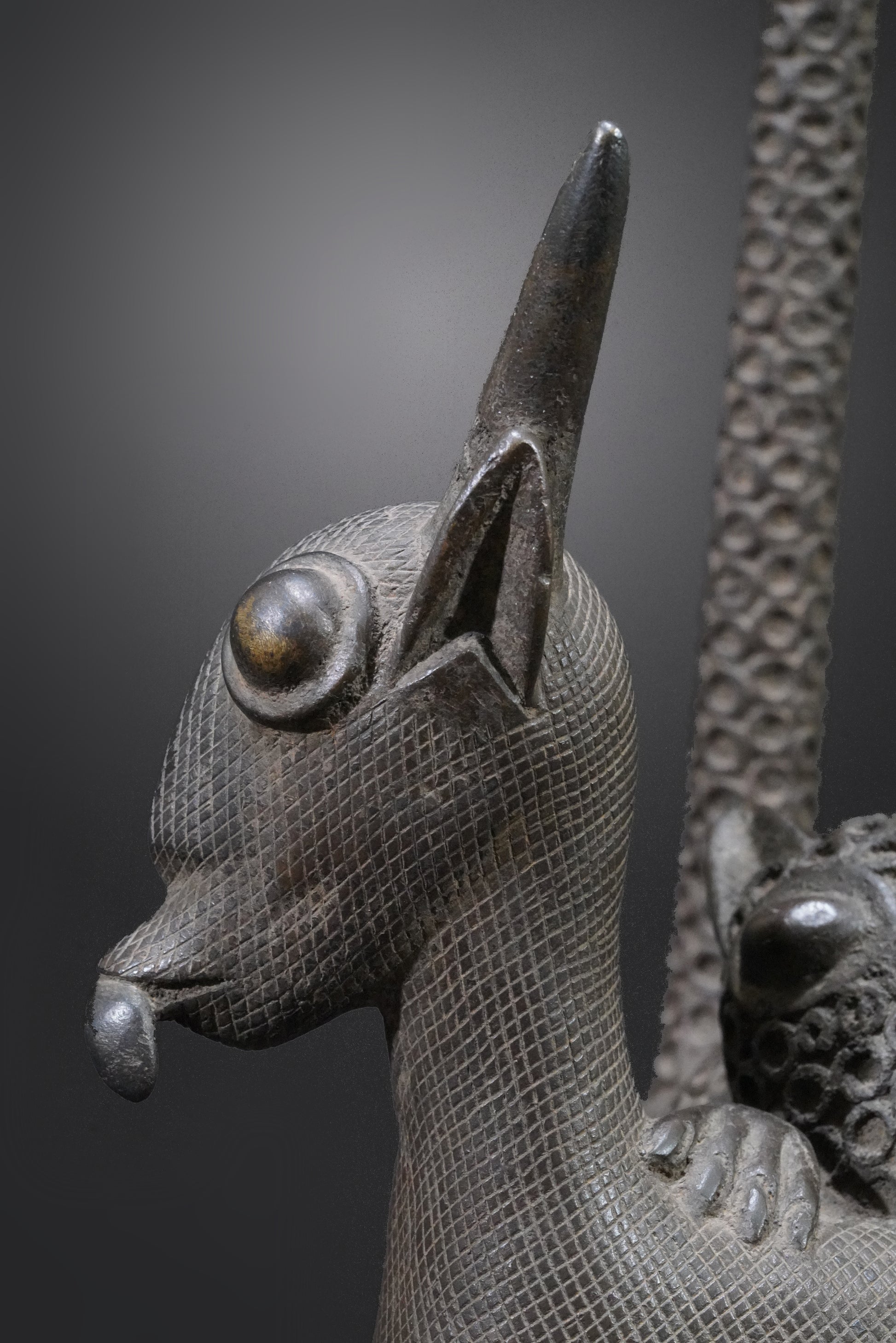 Probably one of the most beautiful Benin animal bronzes that we have ever seen. The type of depiction is reminiscent of the first jungle painting that Henri Rousseau painted in 1905 and which is now in the Fondation Beyeler.