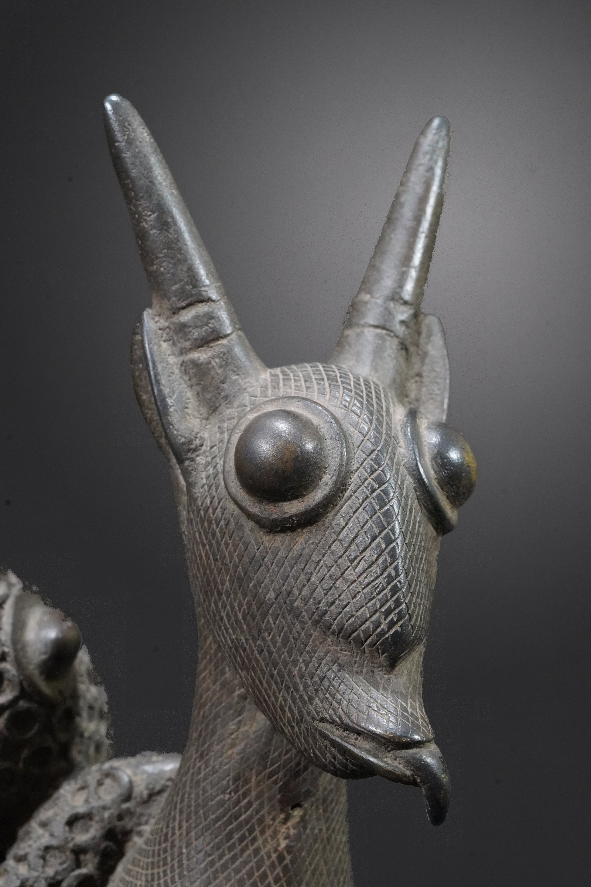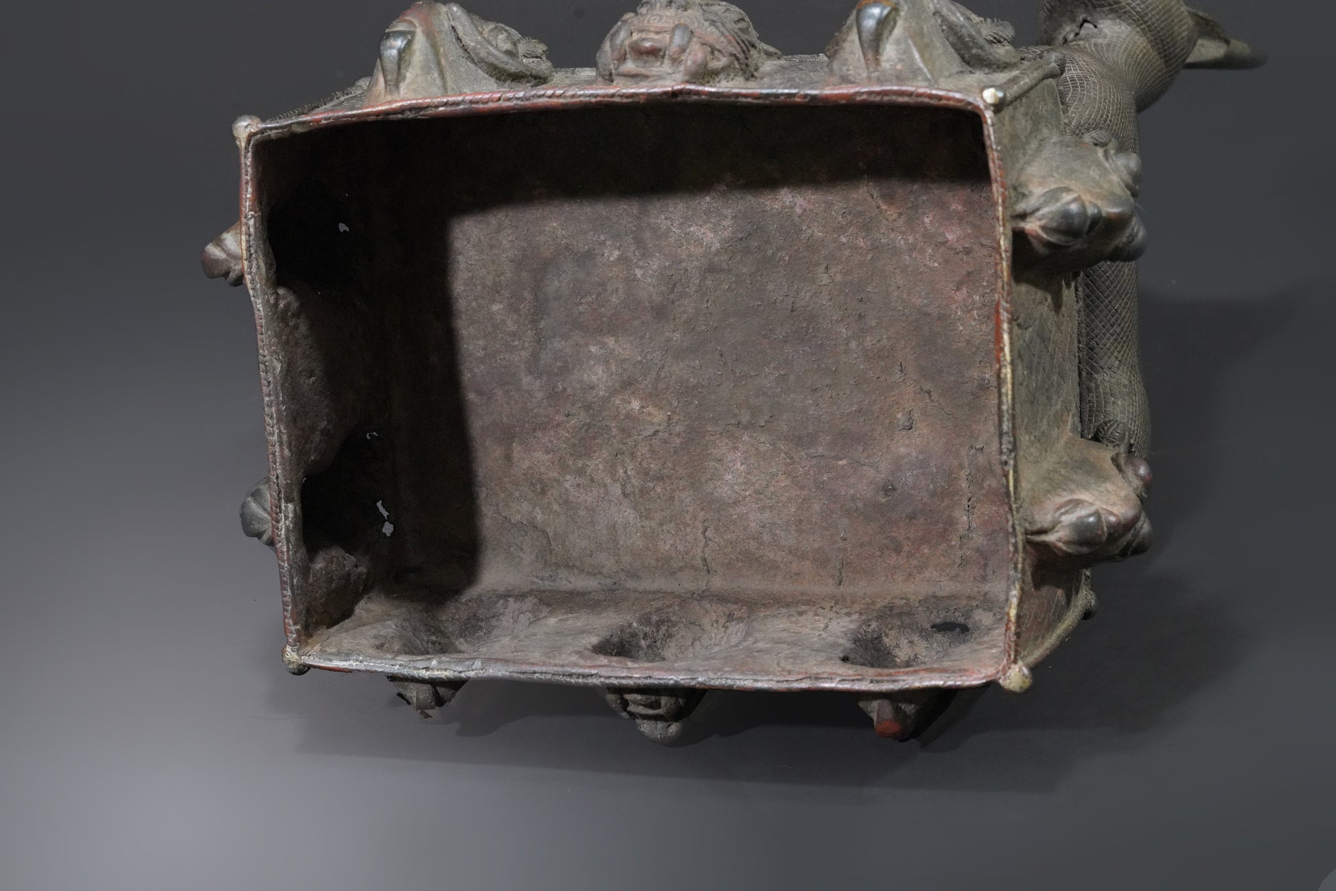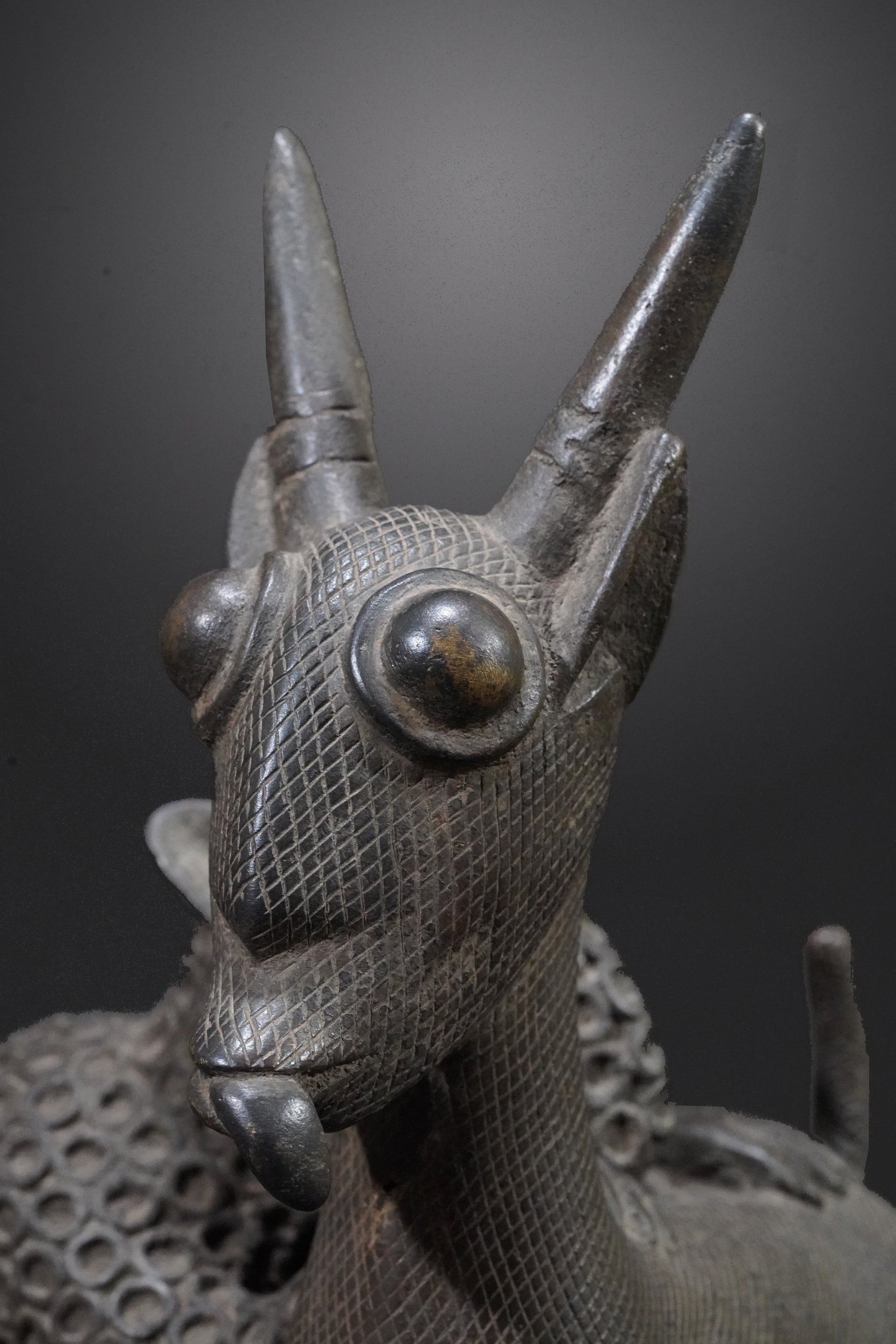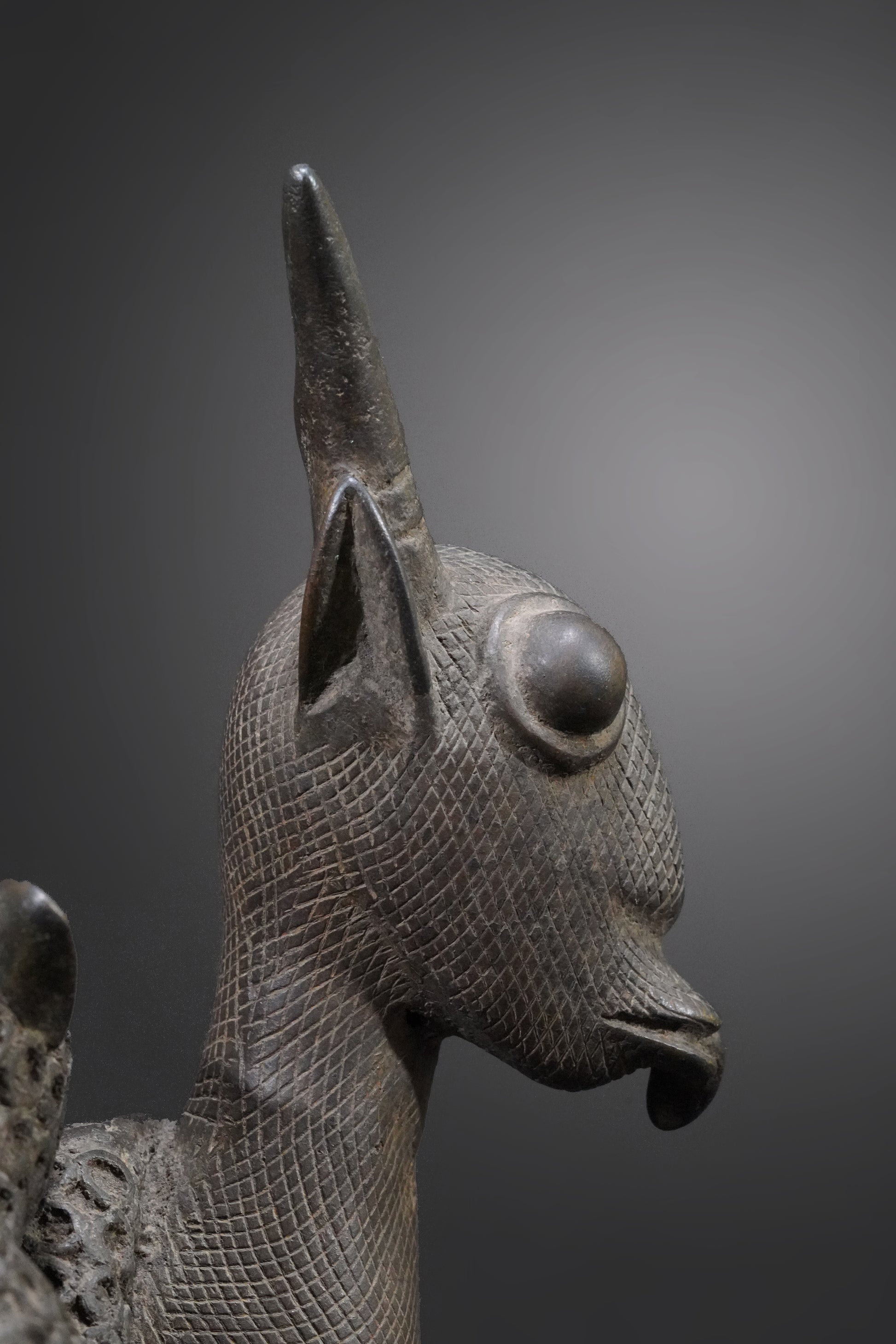Probably one of the most beautiful Benin animal bronzes that we have ever seen. The type of depiction is reminiscent of the first jungle painting that Henri Rousseau painted in 1905 and which is now in the Fondation Beyeler.