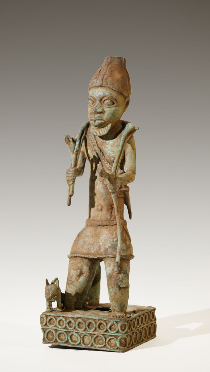 A Benin Bronze of a hunter, Nigeria, Tada style.