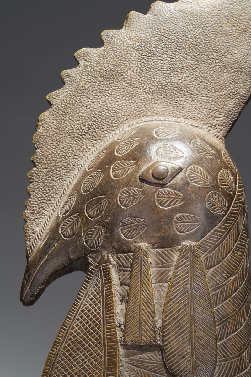 The Benin Bronze Rooster is a remarkable example of the sophisticated brass and bronze work produced in the Kingdom of Benin (Edo), in what is now Nigeria, between the 16th and 19th centuries. These objects were created using the lost-wax casting technique, a method that allows for intricate detailing in metal by first sculpting the form in wax, encasing it in a mold, and then melting the wax out to pour molten metal into the cavity.