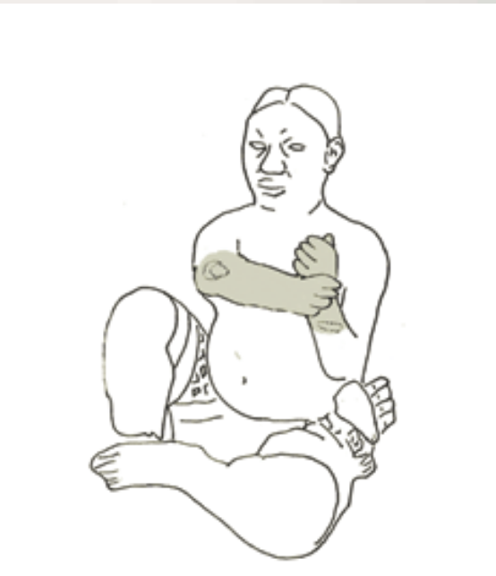 A few years ago we collected probably a recent figurine with an artificial patina in the same sitting position, which to this day has attracted a great deal of attention on the internet. One foot touched the ground and the other was parallel to it. In this case arms abd legs were intact and the figure held a snake in its hands.