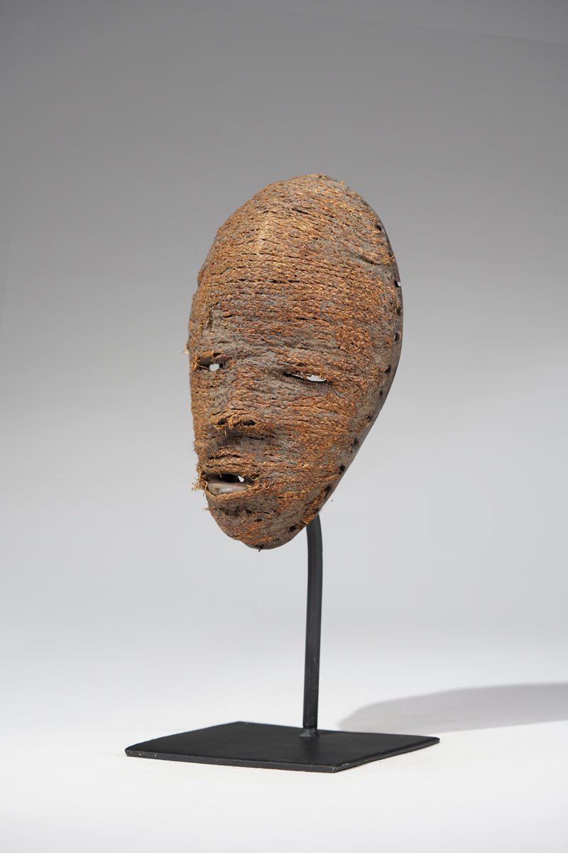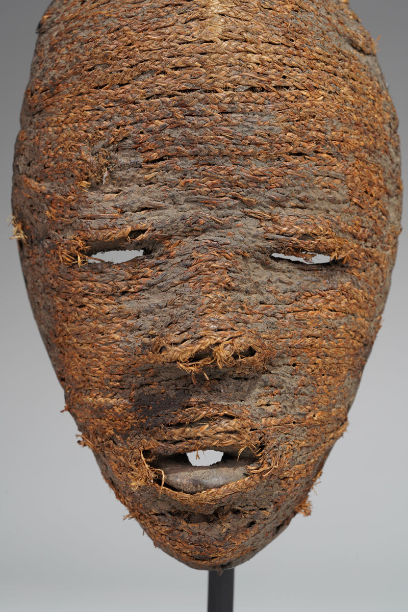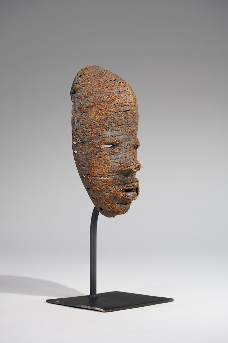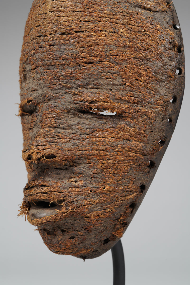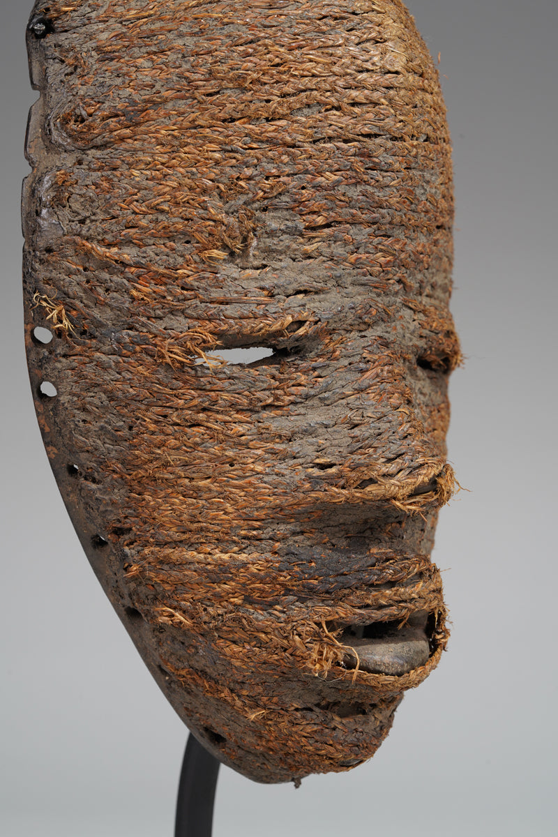A Dan fetish mask, Cote d'Ivoire, collected in the Man region, the surface decorated with ines of ropes glued to it; signs of age and ritusl use. Certificate of origin and provenance.