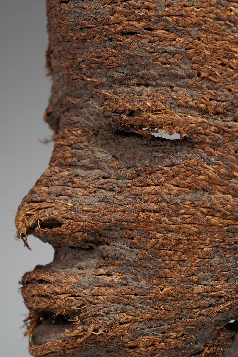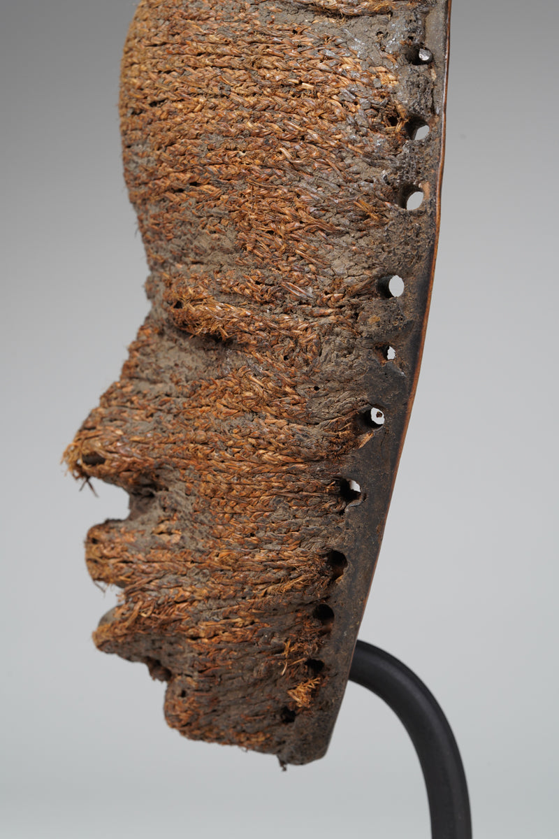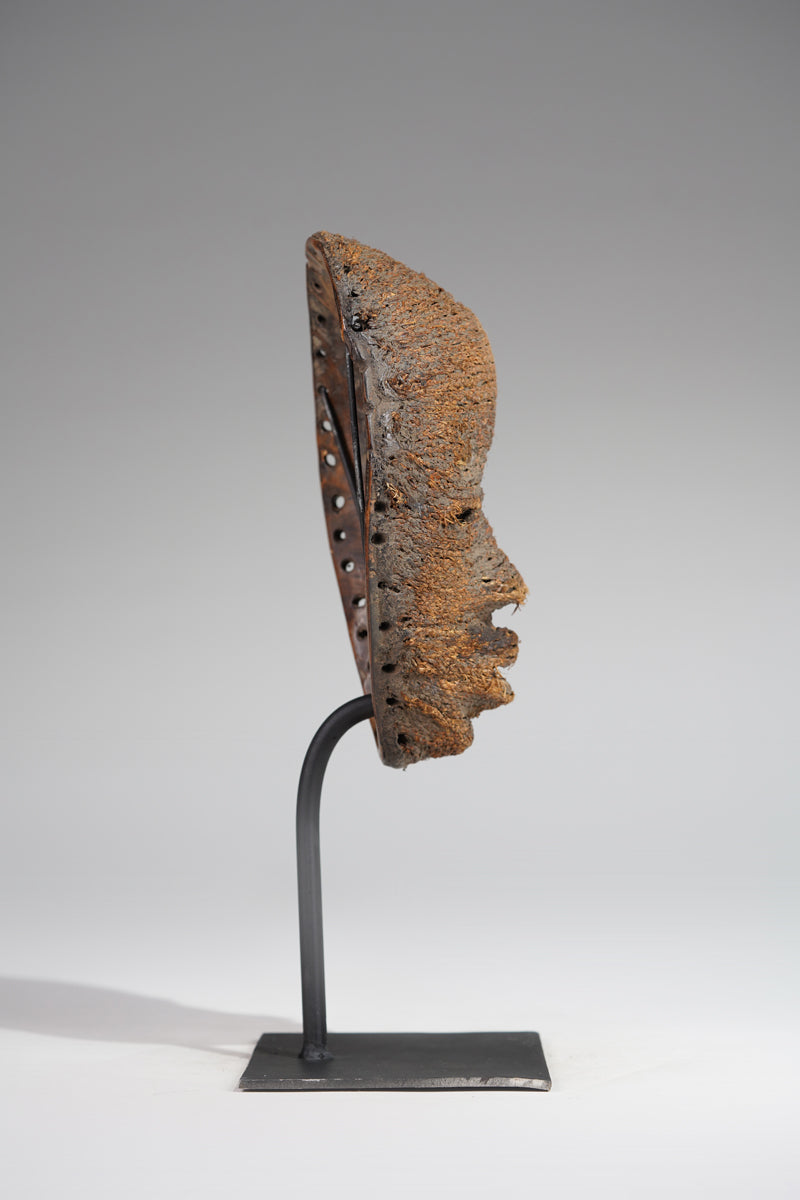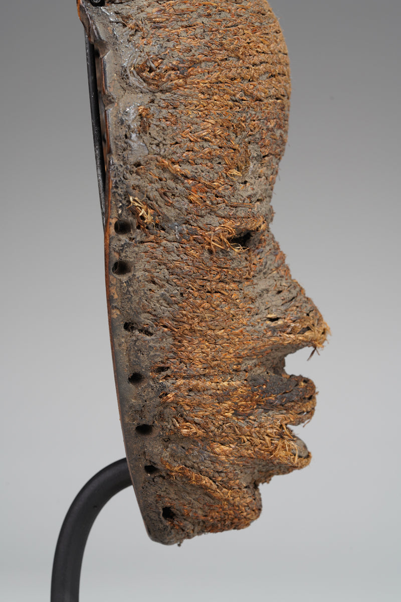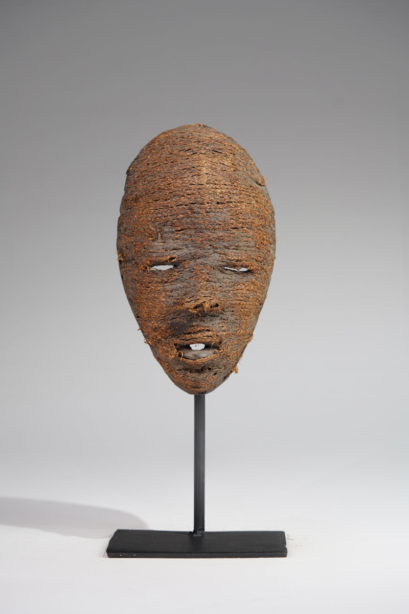 A Dan fetish mask, Cote d'Ivoire, collected in the Man region, the surface decorated with ines of ropes glued to it; signs of age and ritusl use. Certificate of origin and provenance.