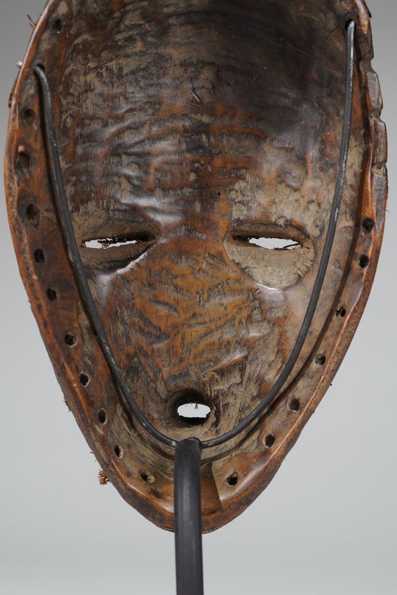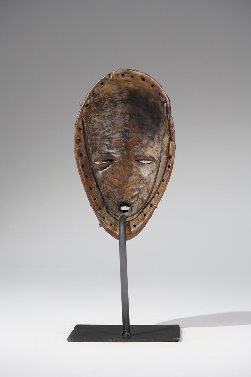 "The border between Cote d'Ivoire and Liberia cuts across several ethnic groups, including the Dan, Wee, Kran, and Grebo. In Dan or Bassa society, dangerous immaterial forest spirits are translated into the forms of human face masks. Whether or not they are worn, such sculptures are spiritually charged. Male performers, gle-zo, experience a dream sent by the mask spirit that allows them to dance it. In performance, the masks are integrated into the hierarchical system that governs political and religious life. Source: Met Museum, New York