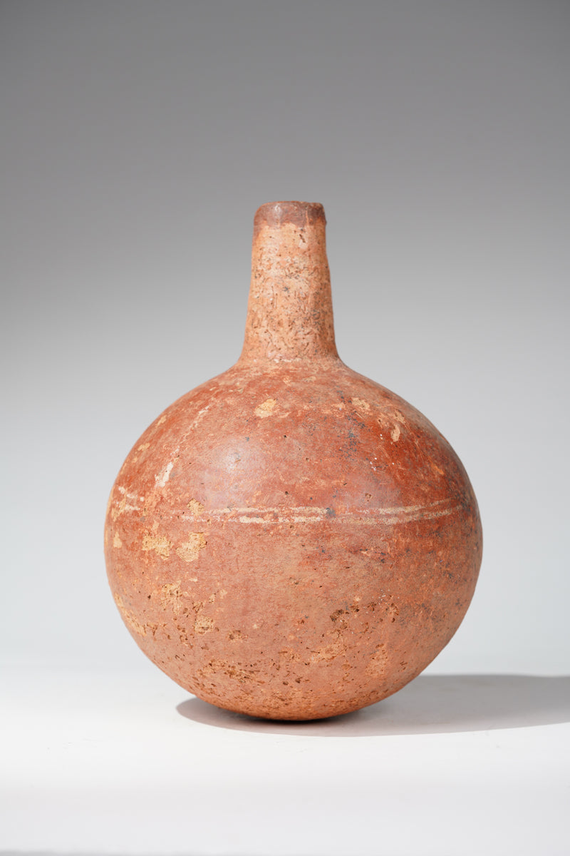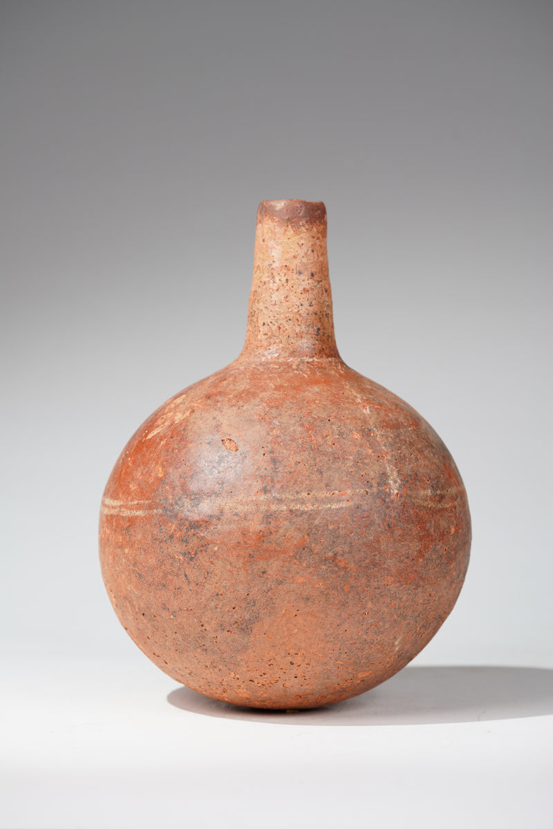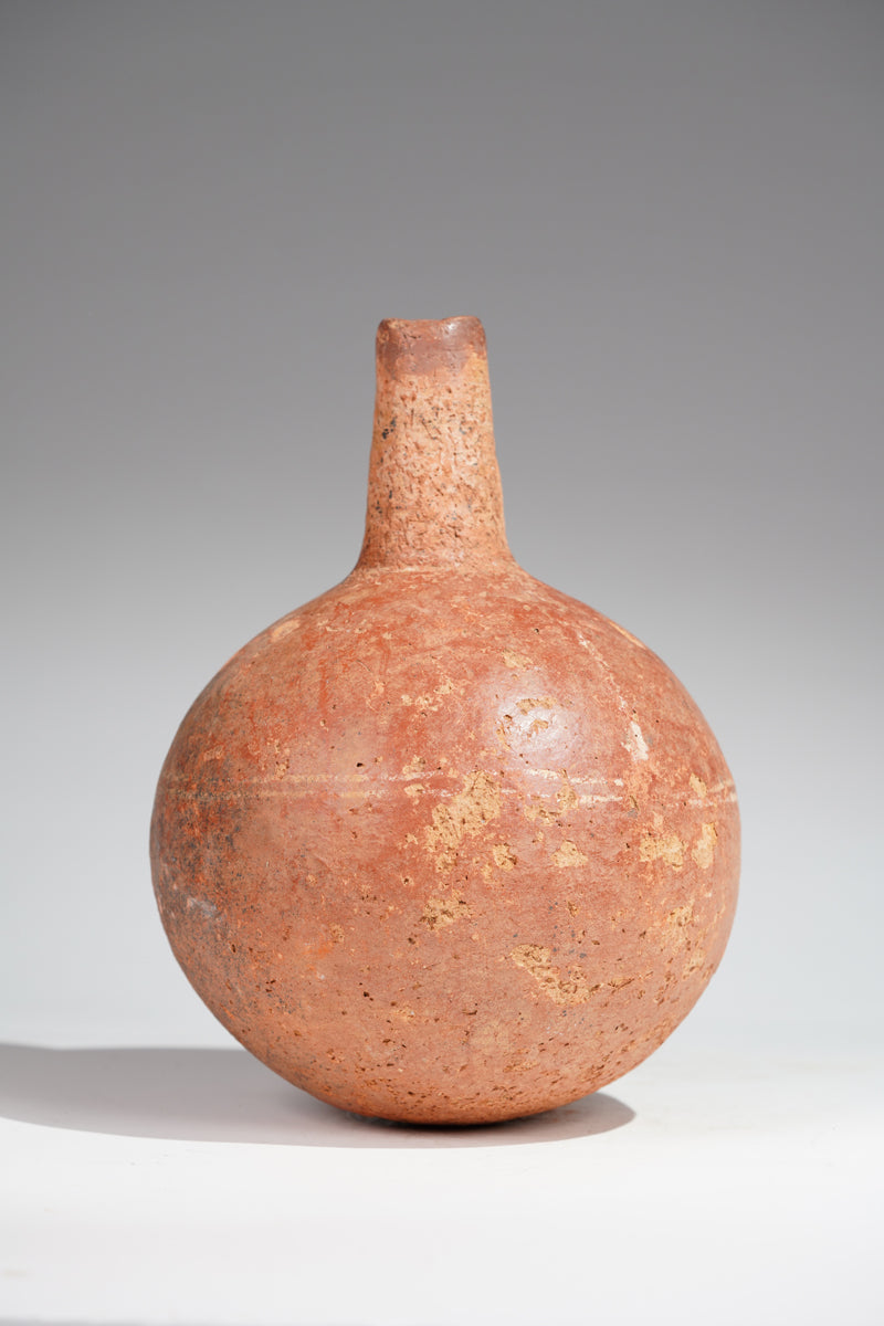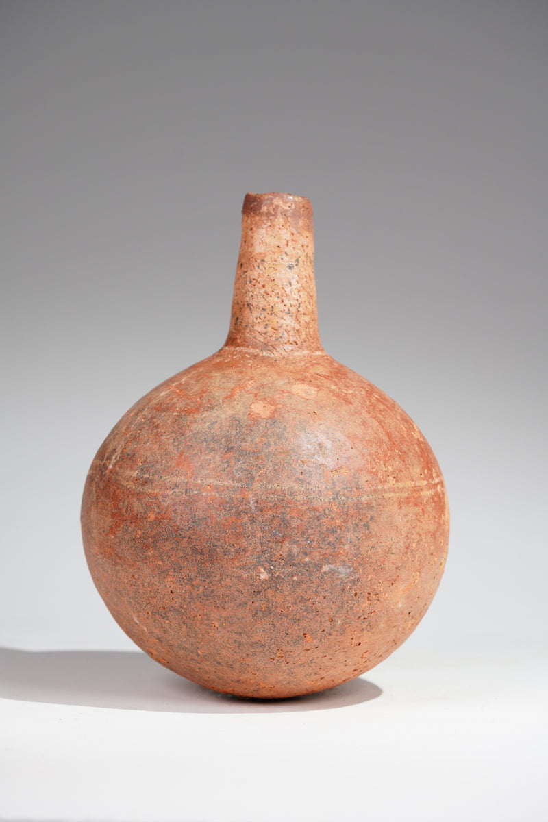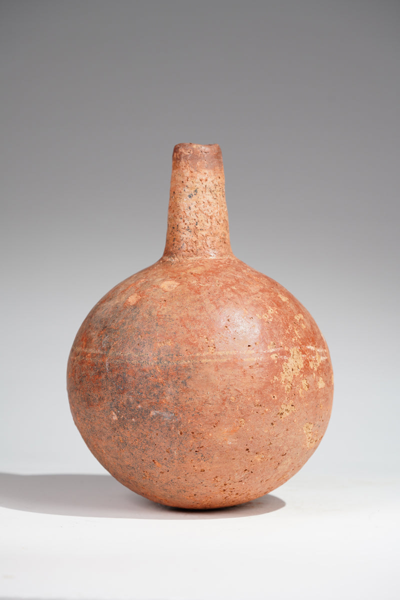 A Djenné terracotta vessel, Mali, brown to reddish patina, collected in the region of Mopti