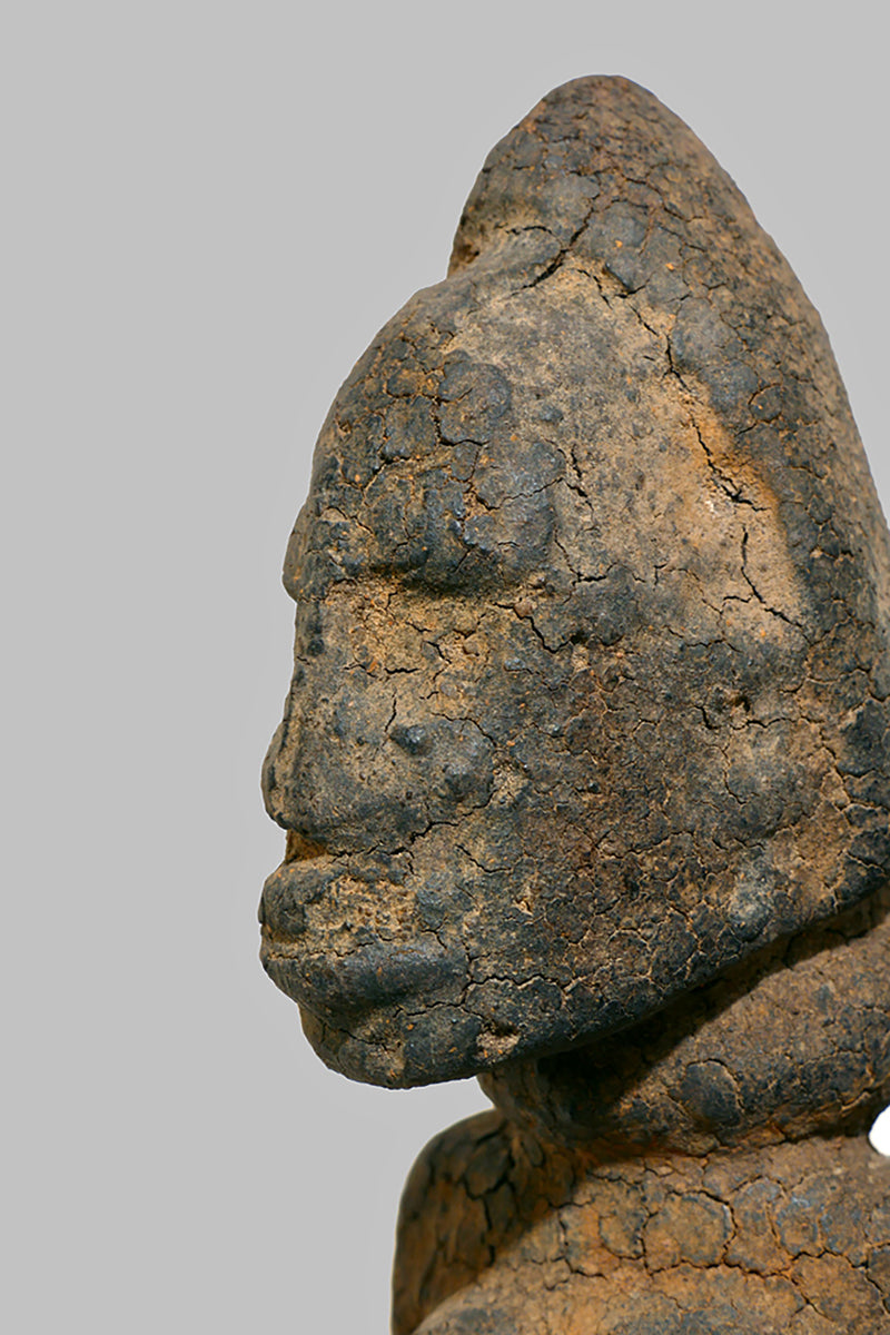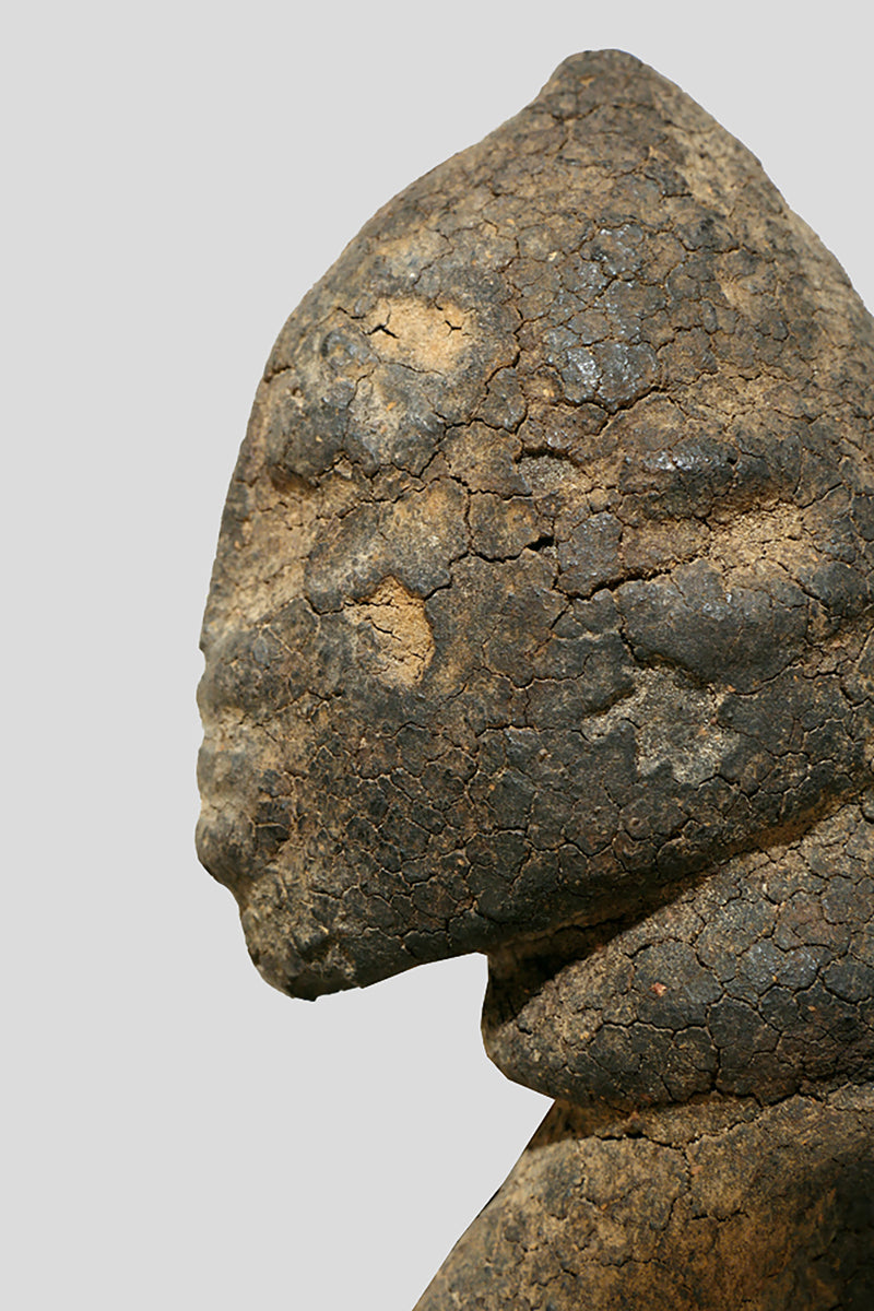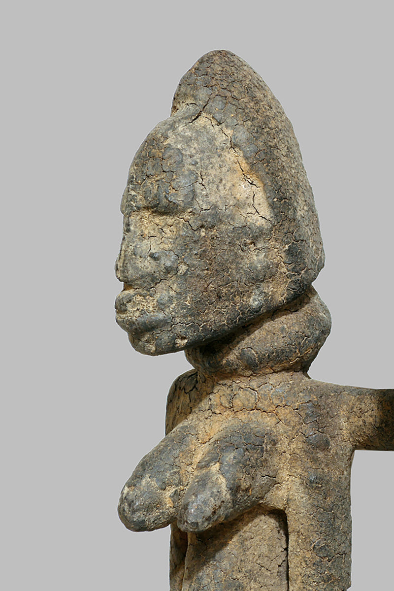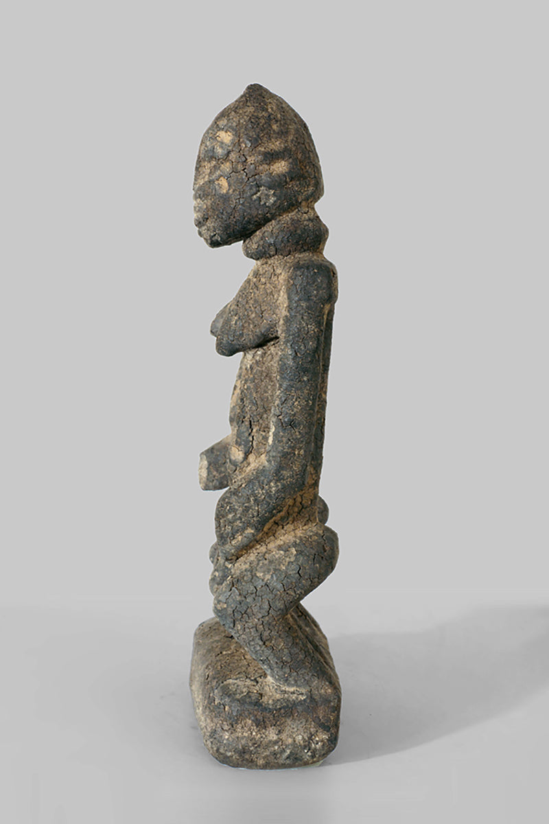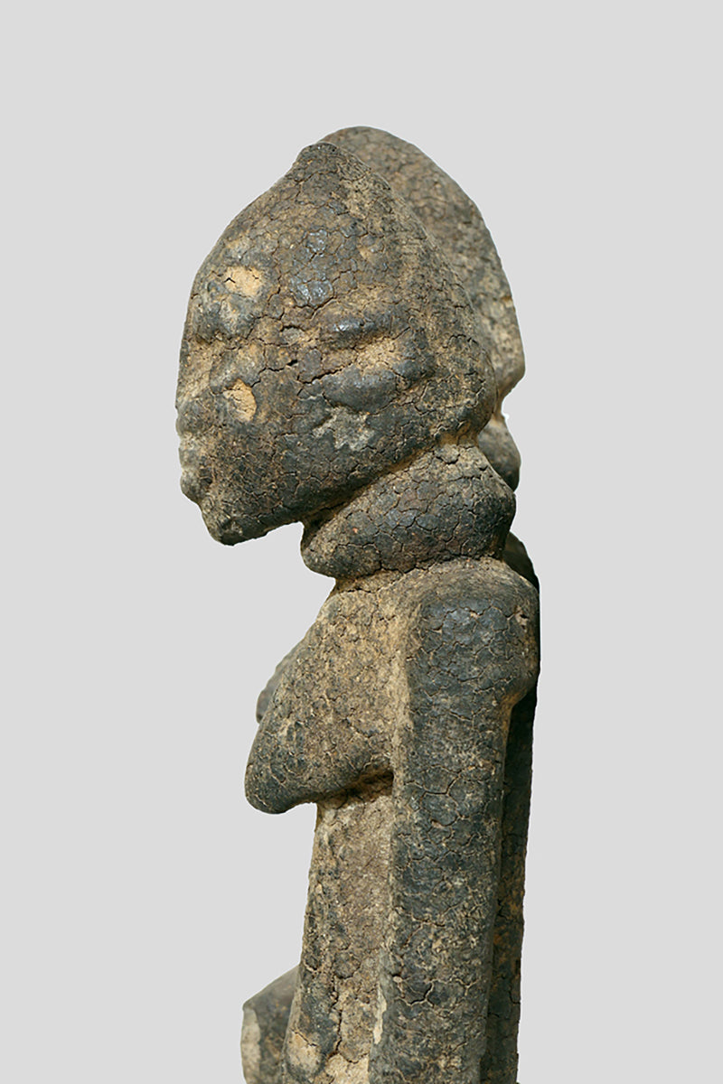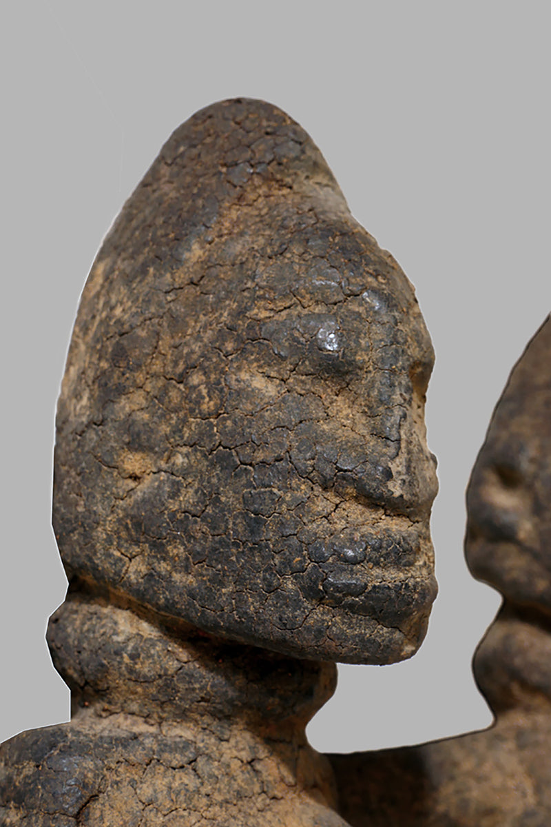 A Dogon couple, heavy encrusted, standing on a rectangular, rounded base.