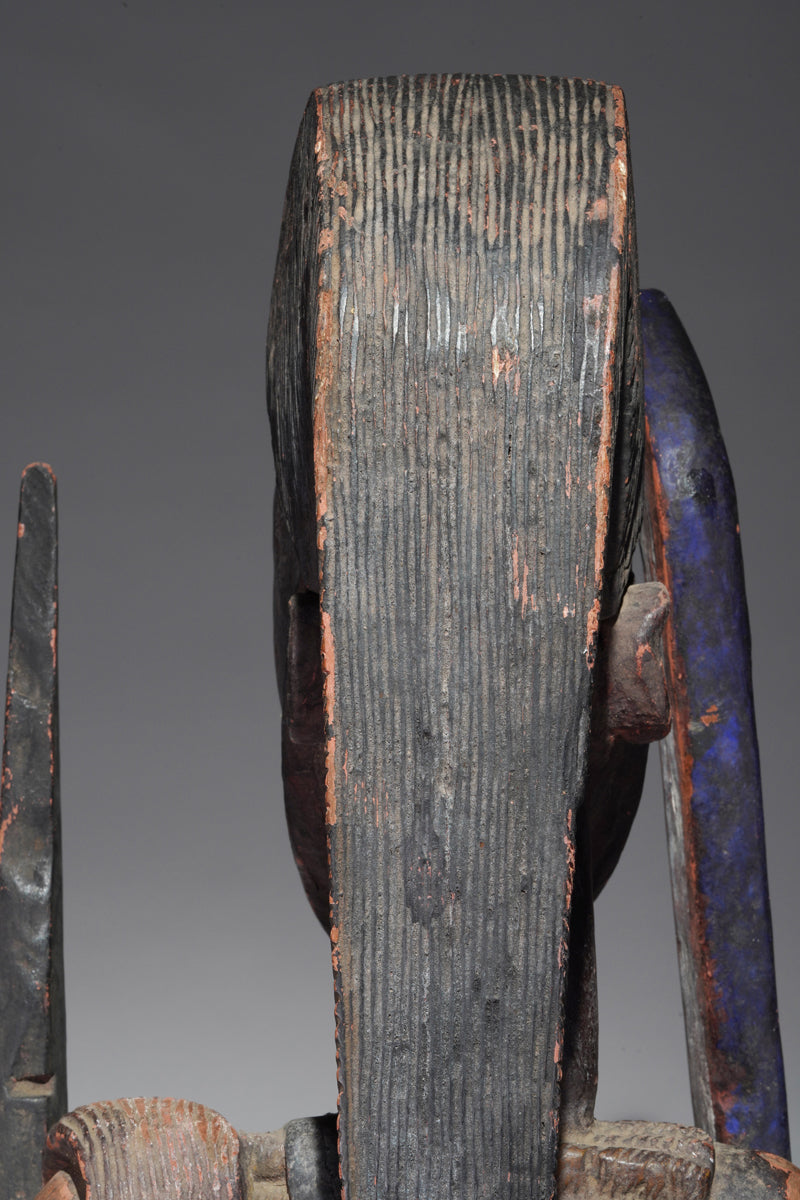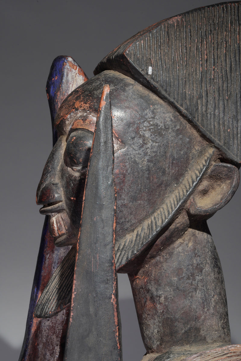 The term “double face” refers to the Janus-like configuration of the helmet mask, in which two visages—often back to back—project from a shared core. This duality may be read on several levels. Formally, it amplifies sculptural presence, enabling the mask to address multiple directions within the performance arena. Symbolically, it evokes expanded perception and omniscience, qualities associated with ancestral authority and with the oriṣa who sanction communal well-being. In some interpretations, the pairing of faces suggests generational continuity: the living community supported by the vigilant gaze of forebears. The sculptor’s task, therefore, was not merely to carve likeness but to materialize a metaphysical condition of doubled awareness.