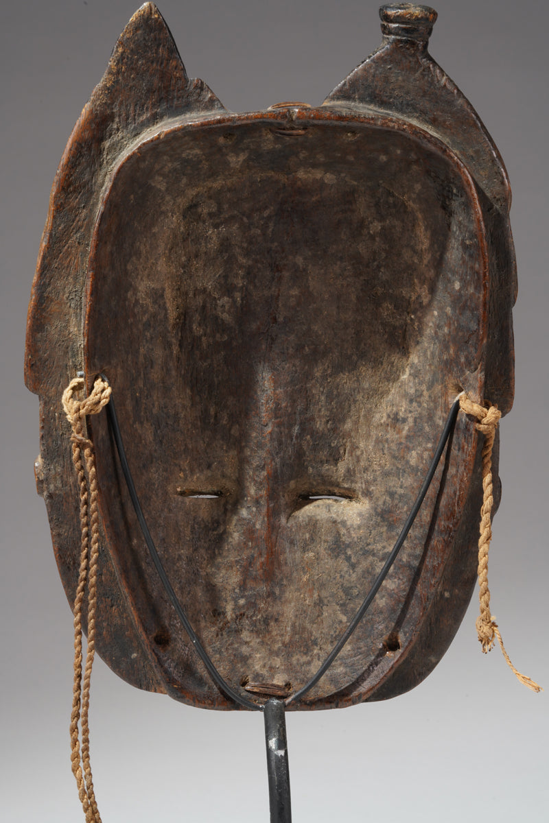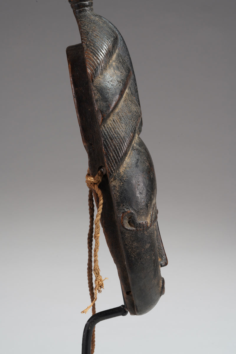 "In Baule communities in Côte d'Ivoire, Mblo performances comprise skits that feature masked dancers who impersonate familiar subjects that range from animals to human caricatures. The dances escalate in complexity and importance and eventually culminate in a performance that pays tribute to the community's most admired member. The individual thus honored is depicted by a mask that is conceived as his or her artistic "double" or "namesake." The highly stylized compositions of double-faced twin masks are the abstract projection of ideas relating to complementary opposites. Traditionally, Baule villages owned up to a dozen Mblo masks, though not all of them necessarily appeared at every performance.