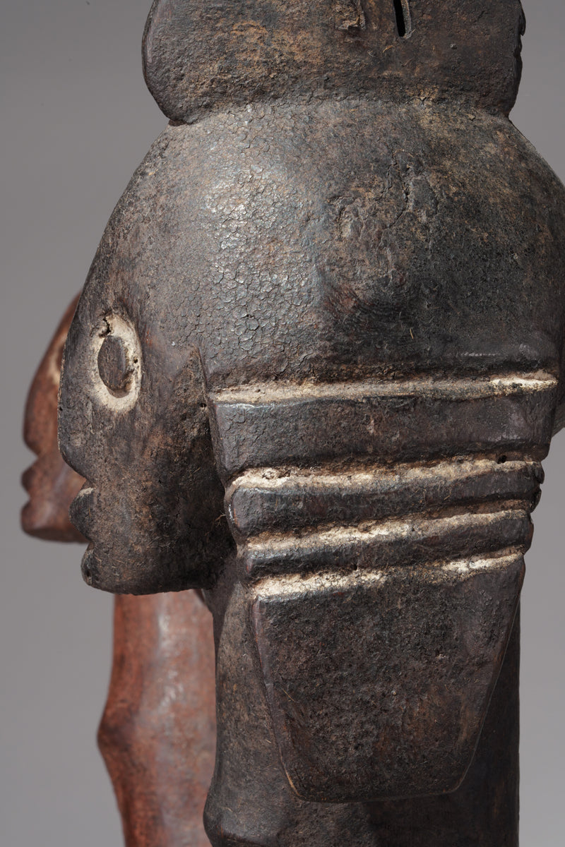 Double-headed Mumuye sculptures are rare and highly distinctive examples of West African art, originating from the Mumuye people of northeastern Nigeria, primarily in the Taraba region. These sculptures are part of a broader corpus of Mumuye statuary known as iagalagana, which were traditionally carved for ritual and spiritual purposes rather than for aesthetic or decorative reasons [1].