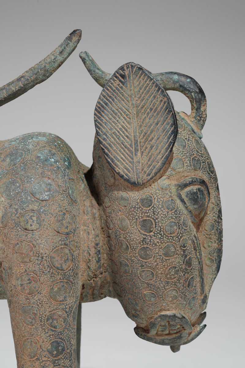 Probably influenced by European examples, aquamaniles in the shape of animals are among the brass works cast in Benin. Like their European counterparts, aquamaniles cast in Benin are used, as their name suggests, for washing the hands. (may be later it becomes its funcional purpose).