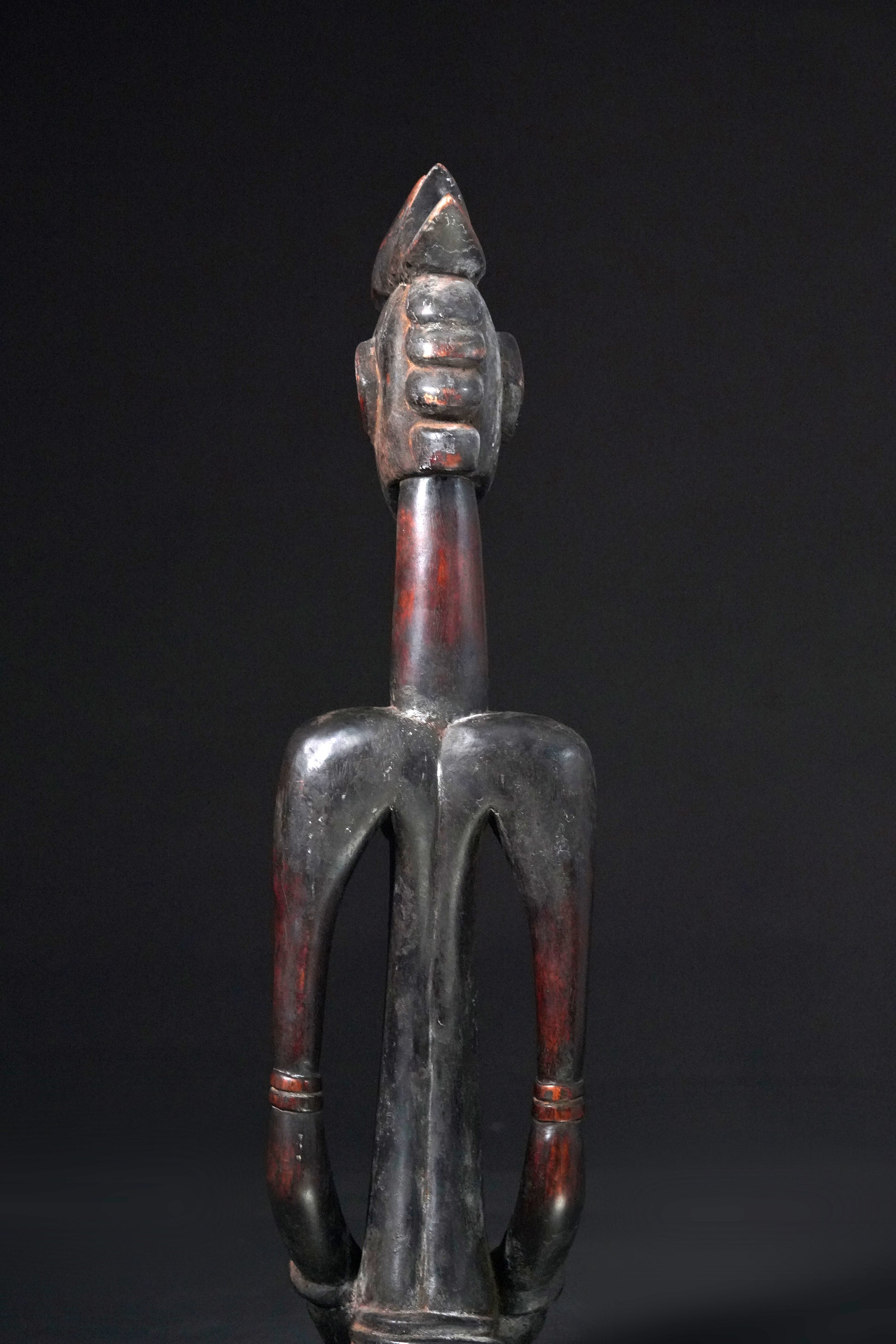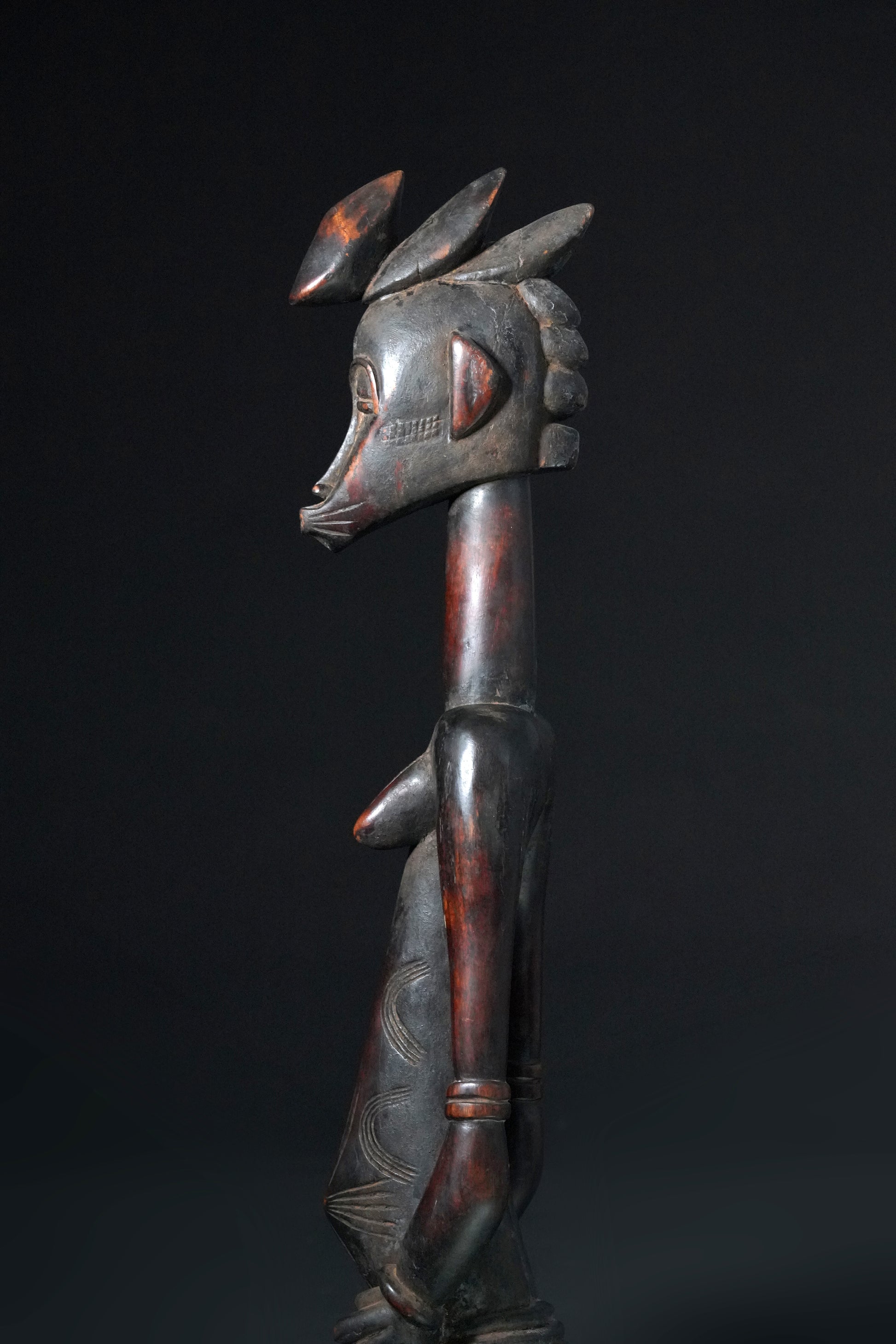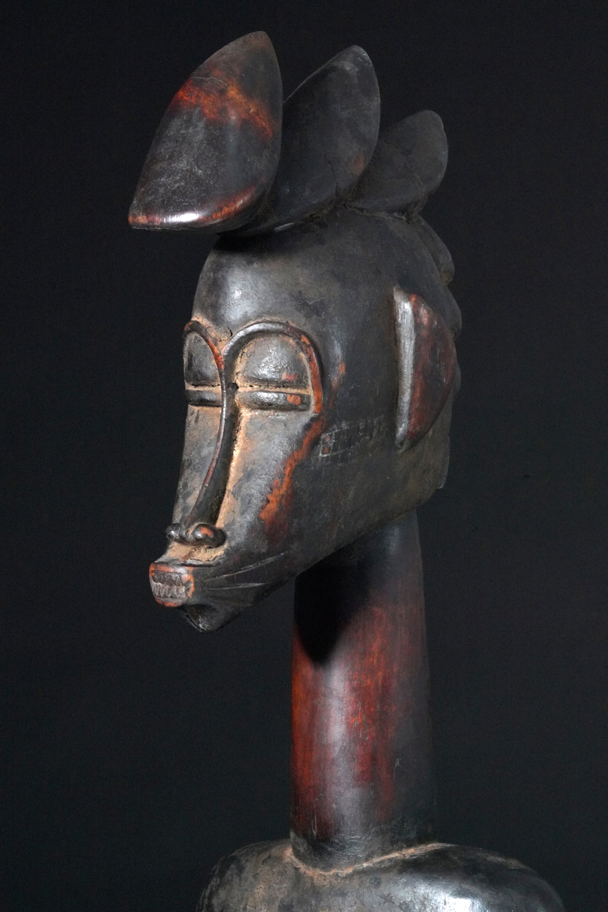 Lit.: A lecture of Dr. Junker, "der Originalzustand.. Wo ist er geblieben?" Gottschalk Burkhard, "Senufo, Massa und die Statuen des poro" 2002: 43; Glaze Anita J., "Art and Death in a Senufo Village", Indiana University Press, Bloomington 1981. A related eyemplare: Robert Goldwater, Senufo Sculpture from West Africa, New York, 1964, ills. 88 and 88a, Werner Gillon, Collecting African Art, London, 1979, p. 50, fig. 38 William Rubin, "Primitivism" in 20th Century Art: Affinity of the Tribal and the Modern, New York, 1984, vol. 1, p. 131 William Rubin, Le Primitivisme dans l’art du 20e siècle. Les artistes modernes devant l’art tribal, Paris, 1987, p. 131 Jacques Kerchache, Jean-Louis Paudrat and Lucien Stéphan, L'art africain, Paris, 1988, p. 82, pl. 34, Jacques Kerchache, Jean-Louis Paudrat, and Lucien Stéphan (eds.), Die Kunst des Schwarzen Afrika, Freiburg, 1989, p. 80, pl. 34 Jacques Kerchache, Jean-Louis Paudrat and Lucien Stéphan, Art of Africa, New York, 1993, p. 82, pl. 34 Mary H. Nooter, Secrecy: African Art that Conceals and Reveals, New York, 1993, p. 155, cat. 79.