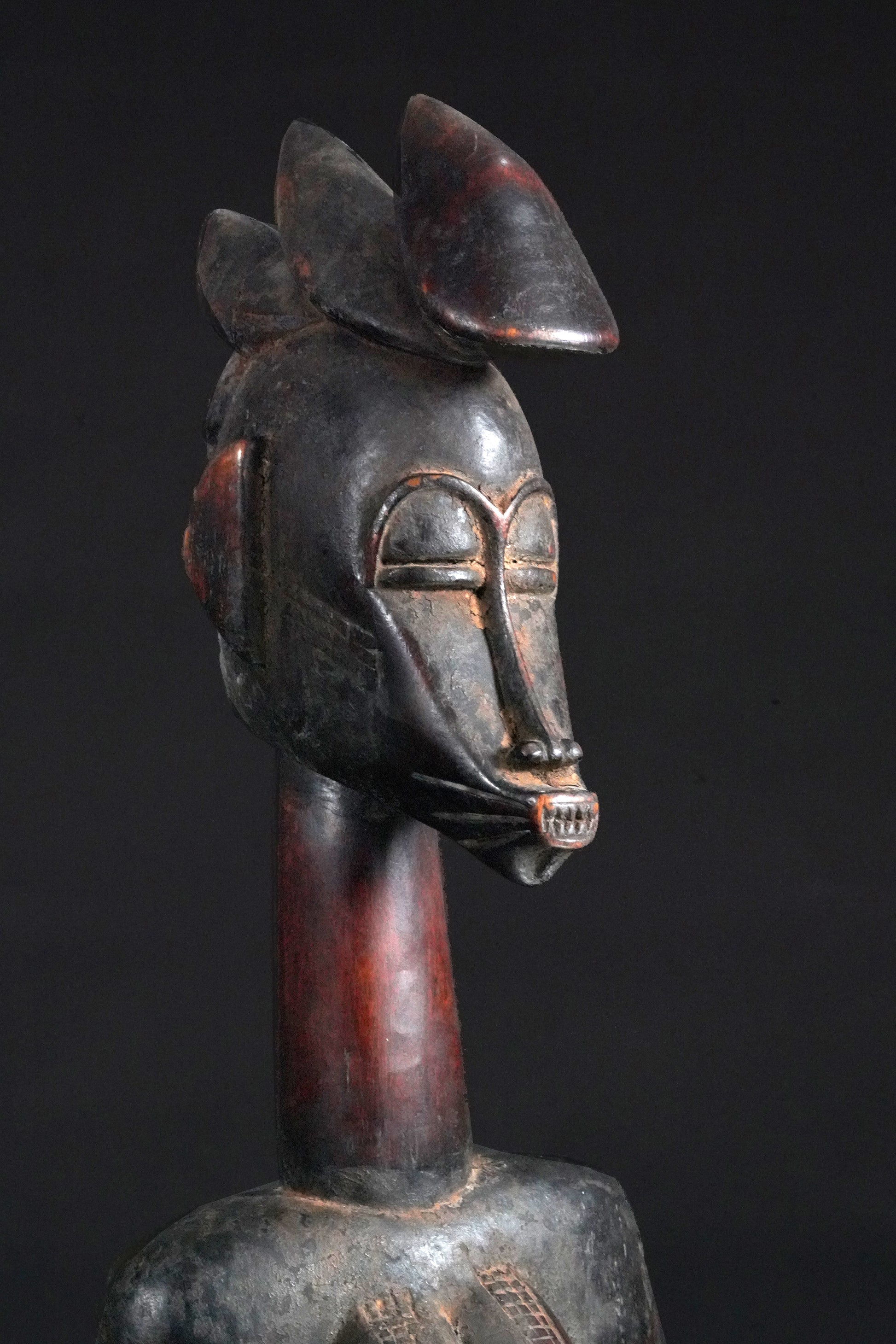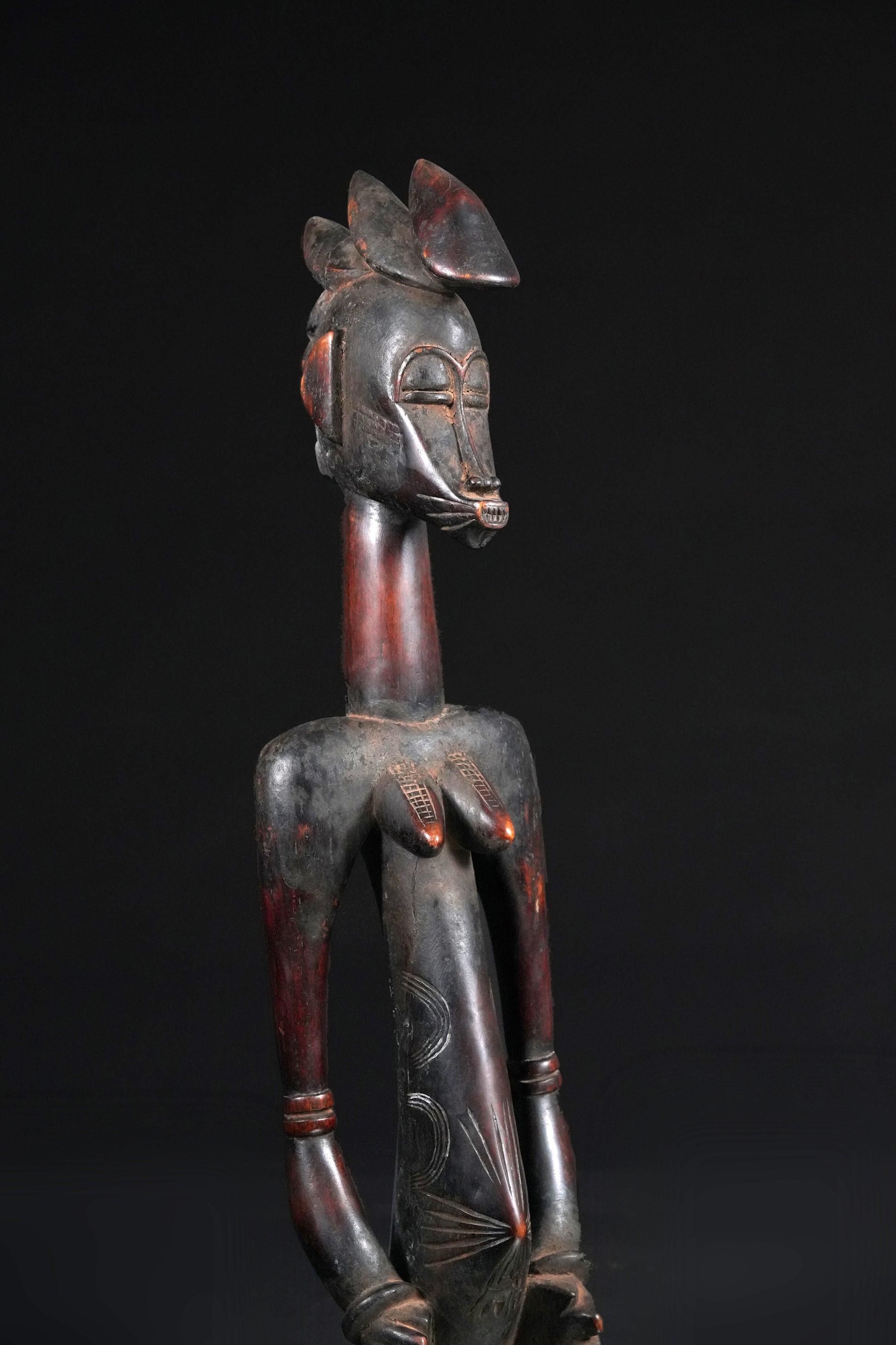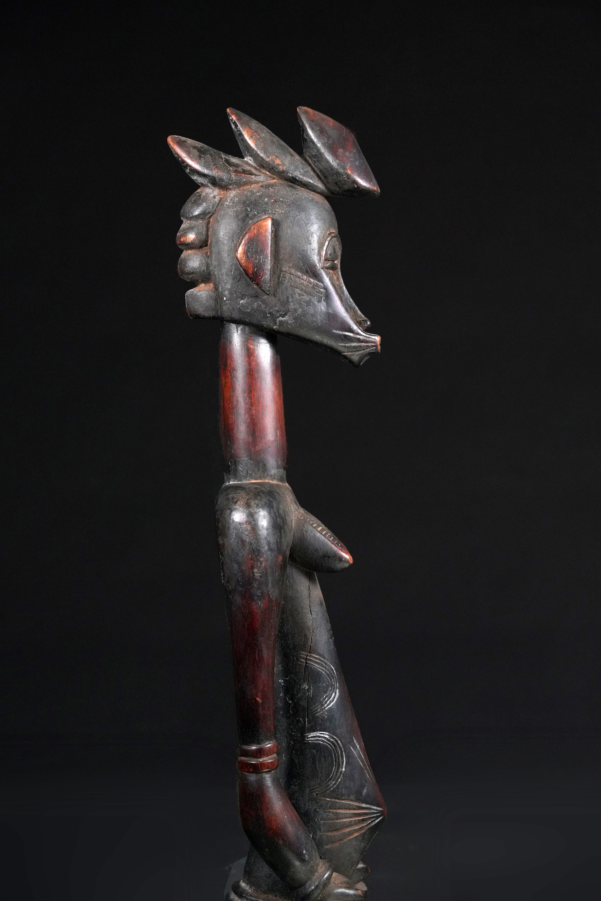 Lit.: A lecture of Dr. Junker, "der Originalzustand.. Wo ist er geblieben?" Gottschalk Burkhard, "Senufo, Massa und die Statuen des poro" 2002: 43; Glaze Anita J., "Art and Death in a Senufo Village", Indiana University Press, Bloomington 1981. A related eyemplare: Robert Goldwater, Senufo Sculpture from West Africa, New York, 1964, ills. 88 and 88a, Werner Gillon, Collecting African Art, London, 1979, p. 50, fig. 38 William Rubin, "Primitivism" in 20th Century Art: Affinity of the Tribal and the Modern, New York, 1984, vol. 1, p. 131 William Rubin, Le Primitivisme dans l’art du 20e siècle. Les artistes modernes devant l’art tribal, Paris, 1987, p. 131 Jacques Kerchache, Jean-Louis Paudrat and Lucien Stéphan, L'art africain, Paris, 1988, p. 82, pl. 34, Jacques Kerchache, Jean-Louis Paudrat, and Lucien Stéphan (eds.), Die Kunst des Schwarzen Afrika, Freiburg, 1989, p. 80, pl. 34 Jacques Kerchache, Jean-Louis Paudrat and Lucien Stéphan, Art of Africa, New York, 1993, p. 82, pl. 34 Mary H. Nooter, Secrecy: African Art that Conceals and Reveals, New York, 1993, p. 155, cat. 79.