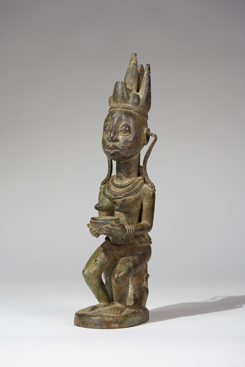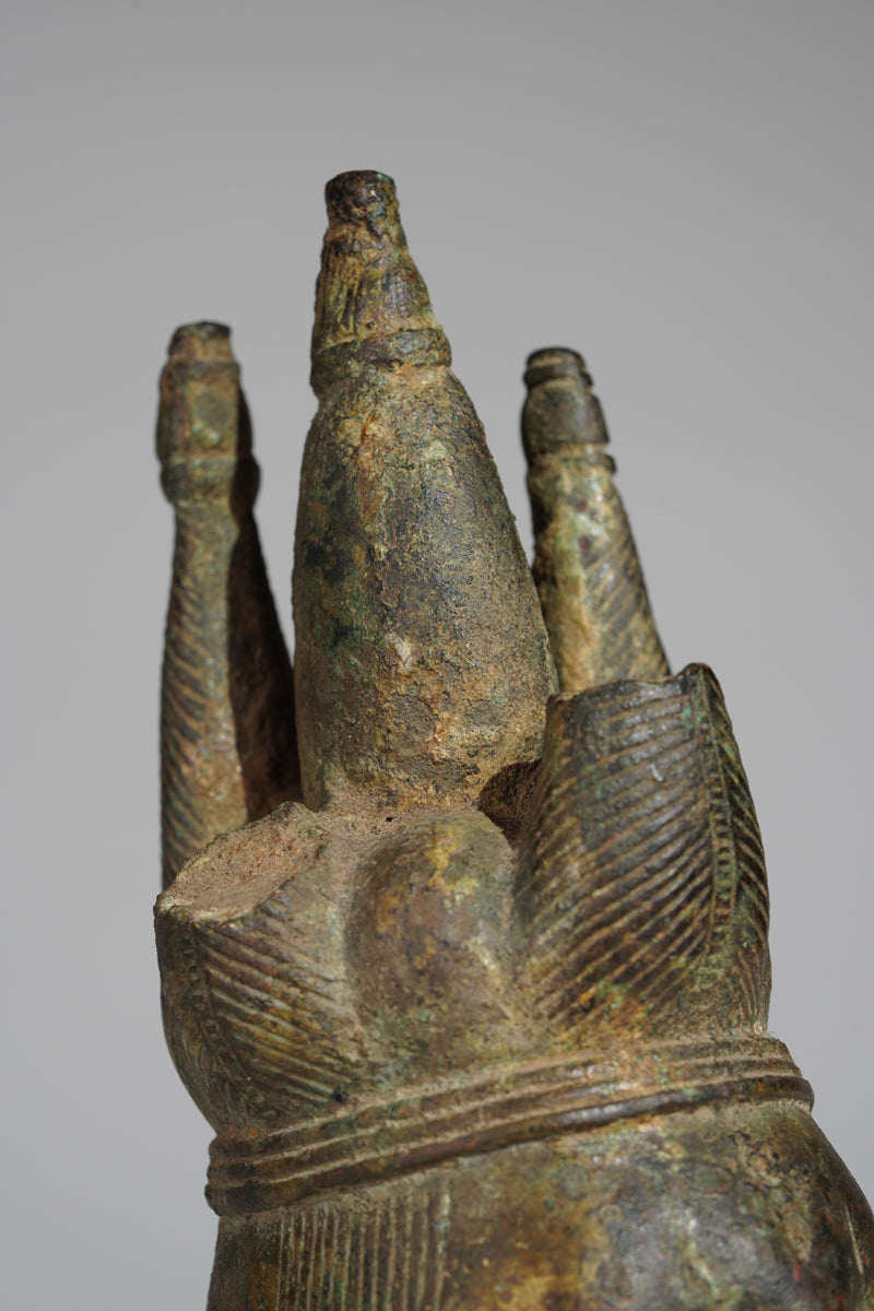 Afo Bronzes are relatively less well-known than the Benin or Ifẹ bronzes. The term "Afo" may refer to an ethnic group or a region in Nigeria associated with bronze casting. These bronzes were often created using the lost-wax technique, a method common across West Africa. Afo bronzes are rare and not as extensively documented, which adds to their significance in the study of African art. They may share stylistic traits with neighboring cultures but also have unique characteristics. Some pieces attributed to Afo origins have been found in archaeological contexts and could be as old or even older than the more famous Benin bronzes.