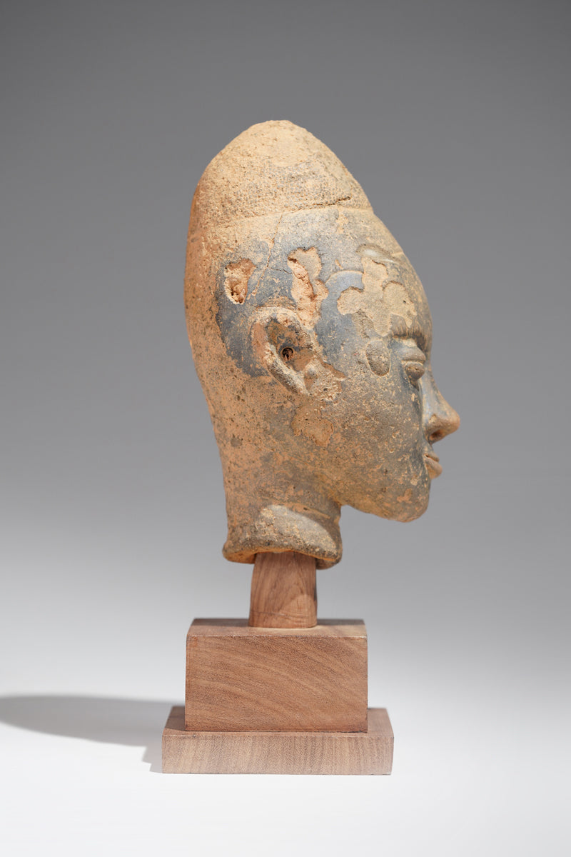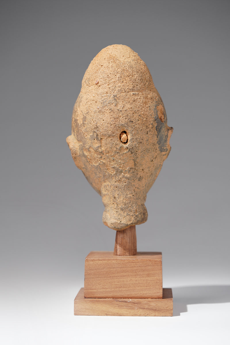 Material and Technique: These heads were made from terracotta (clay that is fired to harden it). The technique used to create these heads was typically hand-built rather than thrown on a wheel, with clay being molded or sculpted into the desired shape. In some cases, the heads were also painted or polished for additional decorative effects.