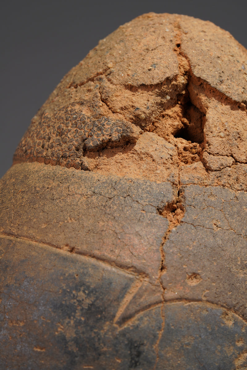 These terracotta heads were often produced as part of burial rituals and were placed on the graves of important individuals, such as chiefs or high-ranking elders, to honour their memory and to aid their journey into the afterlife. They were believed to represent the spiritual essence of the deceased, often crafted in a stylized, abstract form that emphasized certain features that were symbolic or significant within Akan society.