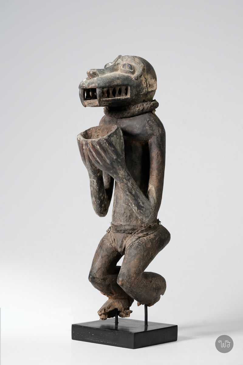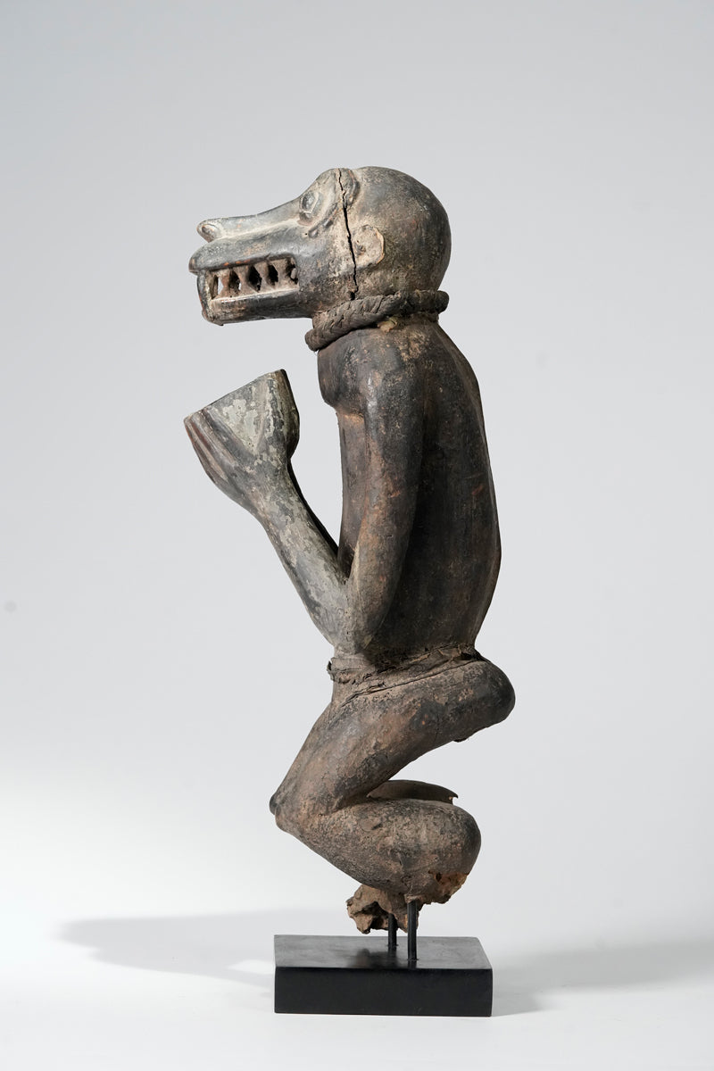 "In Baule culture, cupbearing monkey statues, commonly known as "gbekre" since their first mention in 1900 by Maurice Delafosse, belong to the category of amwin, or "objects of power". They were used by men-only initiation societies for a number of purposes, both functional – as a basis for prophylactic practices, linked to agrarian rites or to a form of divination known as mbra (Bouloré in RMN, 2000: 107 et Vogel, 1997: 221-230) – and iconographic, each type being designated by a specific term (aboya, mbotumbo, ndyadan, gbekre...)." Sotheby's