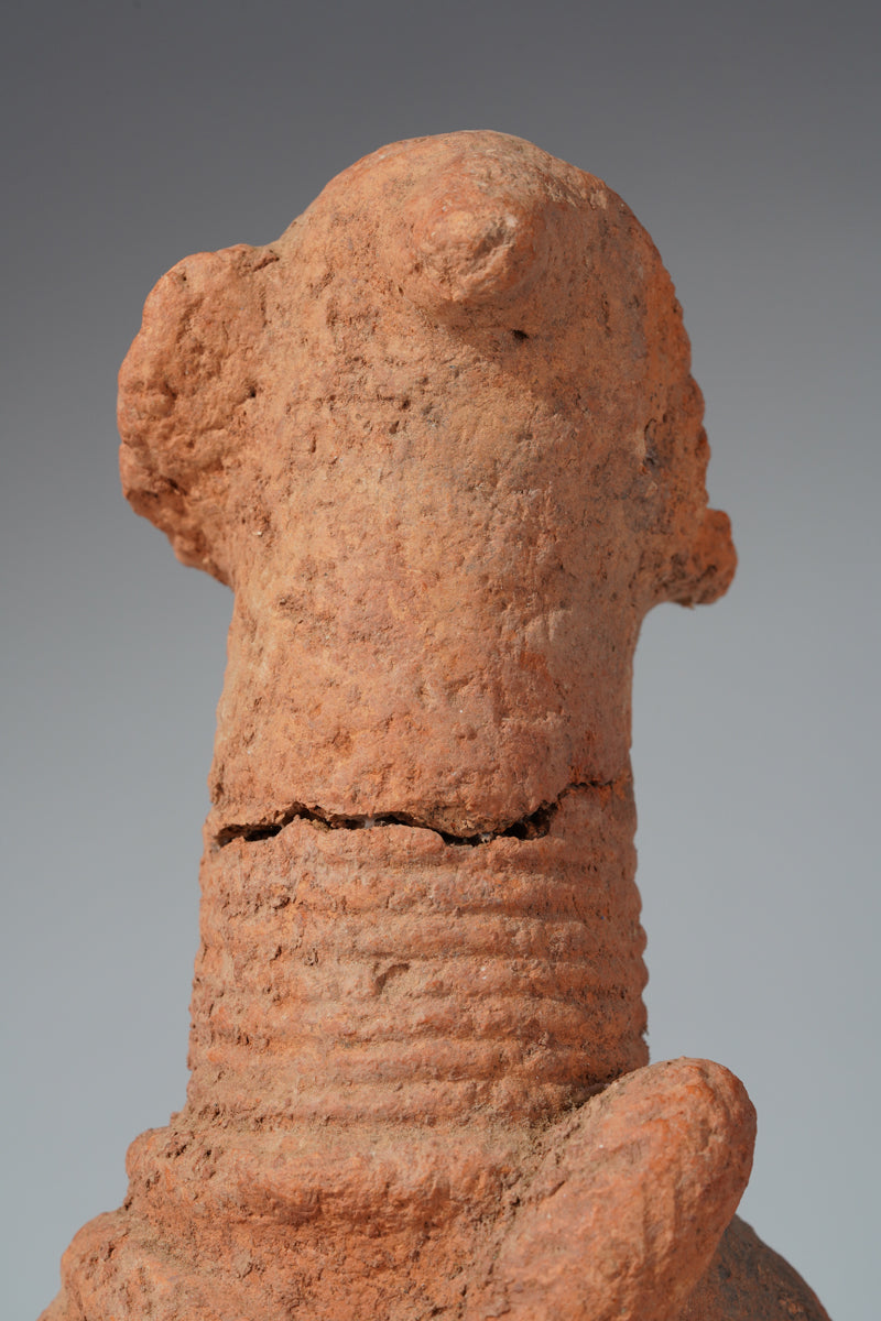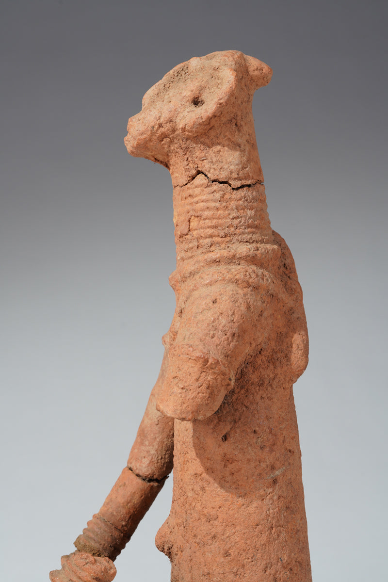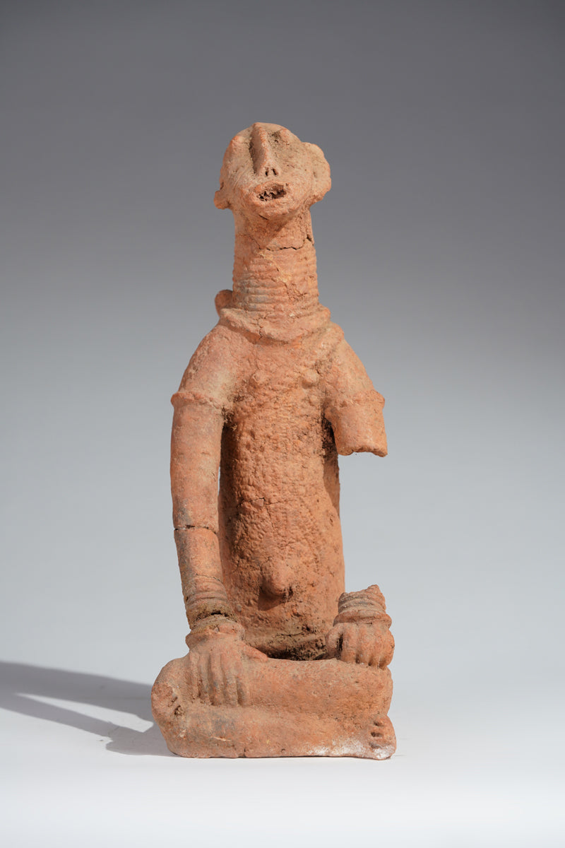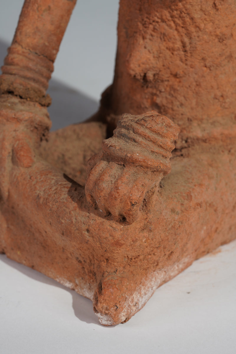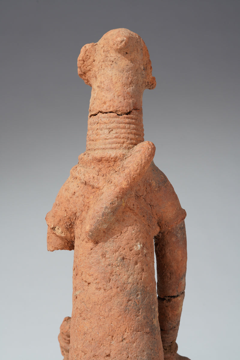 A fragmentary Bura reliquary terracotta sculpture collected in Tillaberie region, Niger. Signs of ritual use and age.
