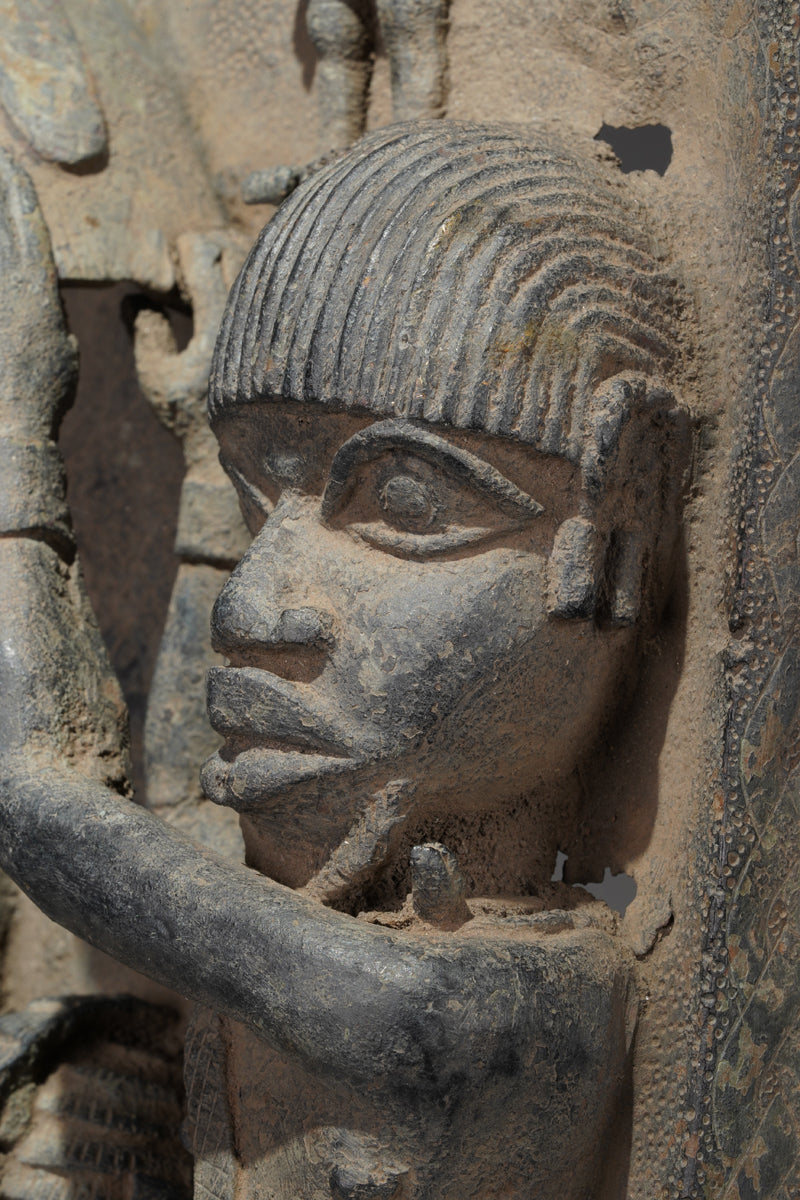 Following the British occupation of Benin City (Edo) in 1897 objects made of brass, ivory and wood were looted by British forces from the royal palace, its storerooms and compounds. Some of these objects were sold or exchanged on the coast. However, many were brought to the UK where they were sold through private auctions, donated to museums, or retained by soldiers of the expedition. The British Museum successfully petitioned the government to secure some of the relief plaques and over 300 were sent to the UK by the Consul-General [Sir] Ralph Moor and placed at the Foreign Office. During the summer of 1897 the Crown Agents for the Colonies, on behalf of the Foreign Office, agreed a temporary loan of 304 plaques to the British Museum. In September these were placed on public display in the Assyrian basement where they attracted considerable public attention. The Museum initially received 203 of these plaques as a gift from the Secretary of State for Foreign Affairs. In the summer of 1898, a further eleven plaques were sent to the British Museum from the Foreign Office and three of these were selected by the Museum and were subsequently presented as a gift. Of the remaining plaques the Foreign Office retained eight and the rest were offered for sale to major museums, collectors and private dealers in Europe and the UK. Today over nine hundred plaques are known to exist in museums and private collections around the world. See Collection File: Af1898,0115.1-203 (previously Eth.Doc.185).