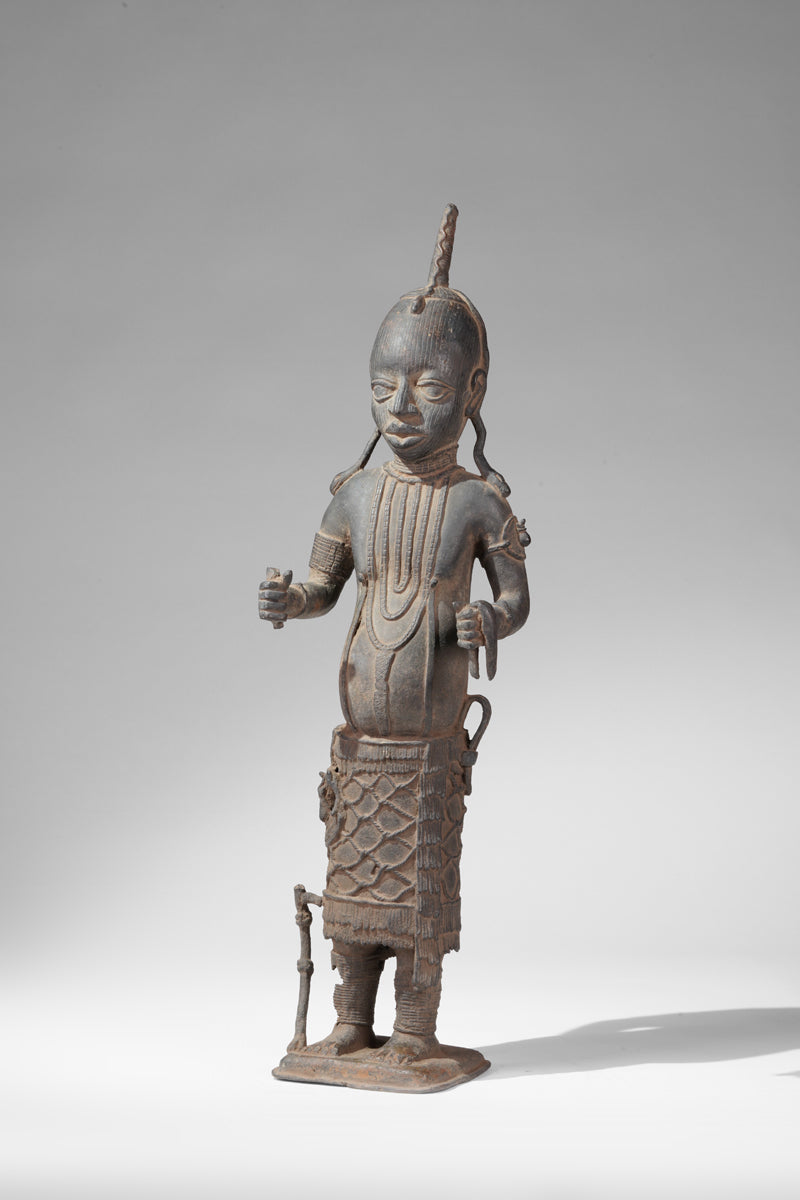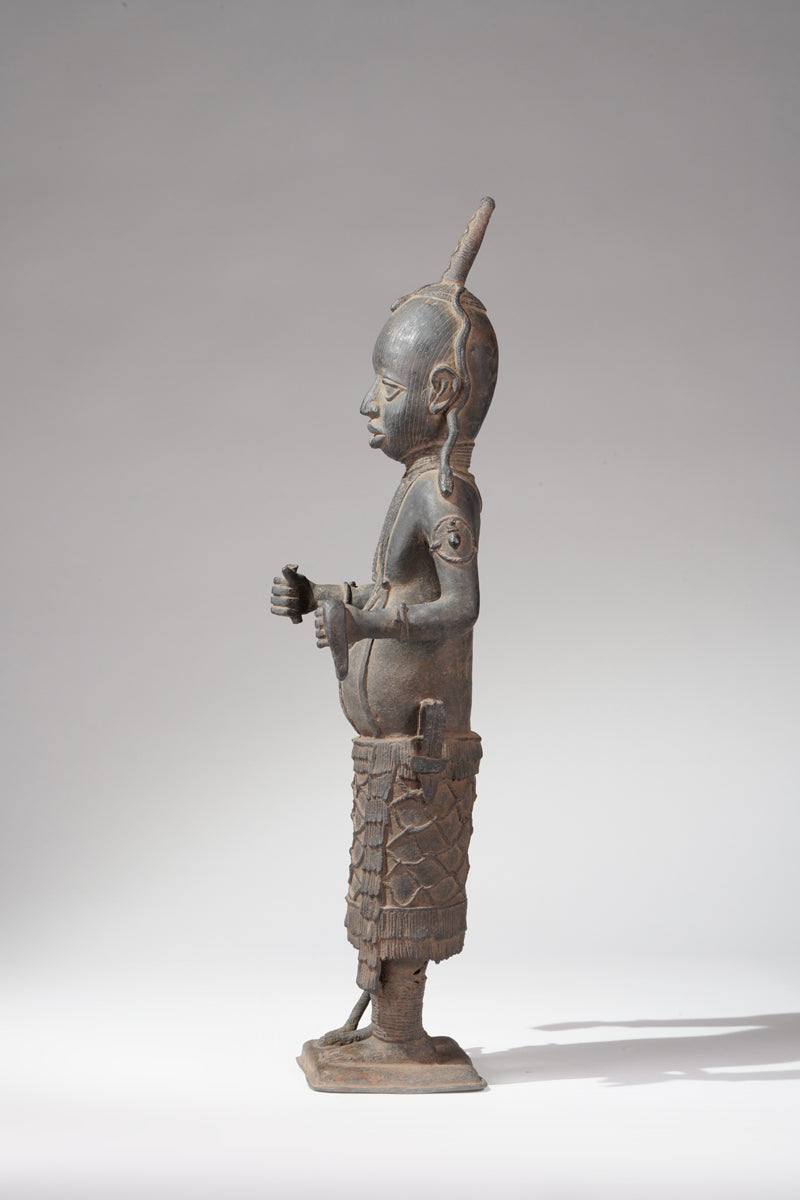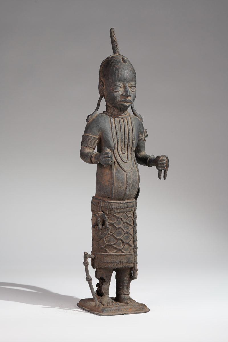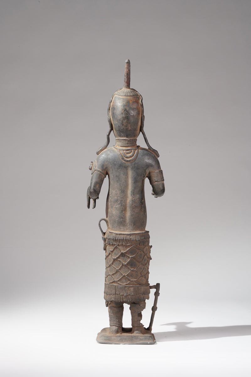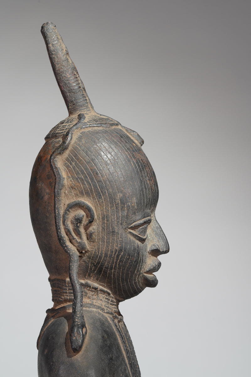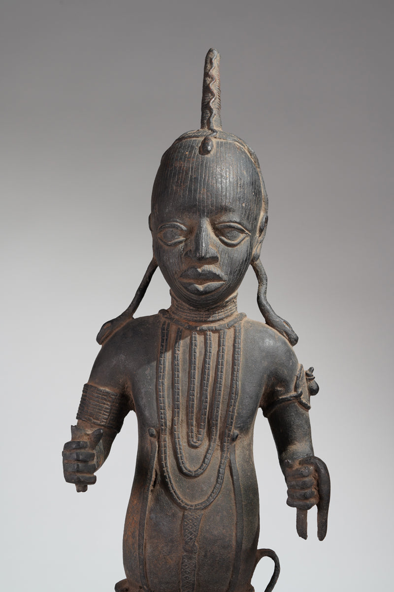 The so-called Udo style represents a regional and stylistic variant within the artistic traditions of the Benin Kingdom and is named after the town of Udo near Benin City. This style is characterized by a less rigid and formalistic approach compared to classical Benin bronze art. Instead, the Udo style emphasizes more expressive and naturalistic elements, which may indicate either an earlier developmental phase or a distinct local tradition within the Benin artistic system.