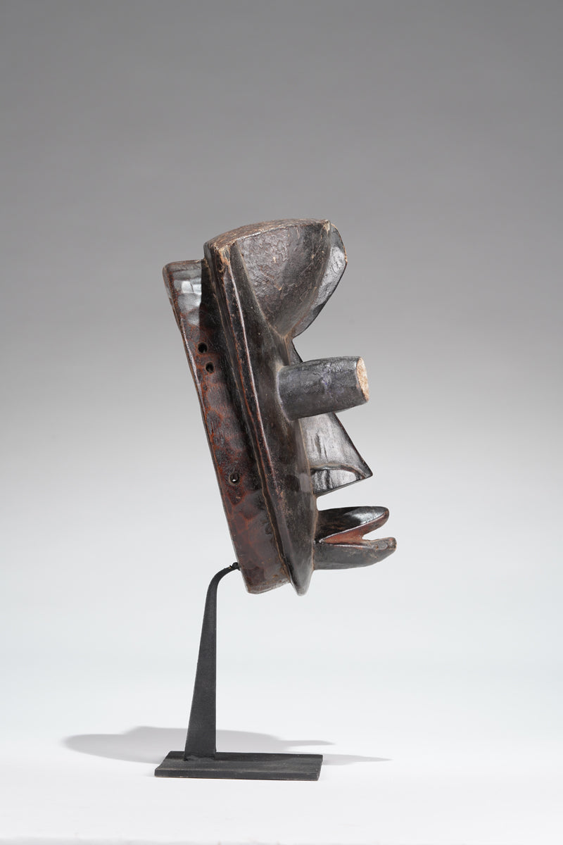 The masks that are created represent the spirits of the hidden world that dwells within the forests. Skilled initiates are responsible for their production, and they are used during special ceremonies for initiates and public festivals. This particular mask belongs to the category of plank masks with tubular eyes, which tend to have a more abstract appearance. The interest of cubist painters and modern sculptors in the abstract of the Grebo mask can be seen in some of their works, such as Picasso´s 1914 guitar.