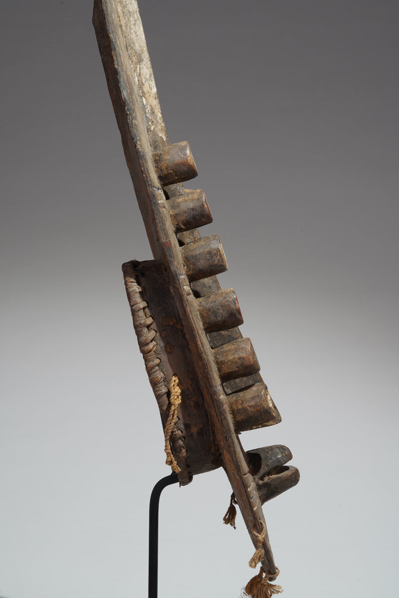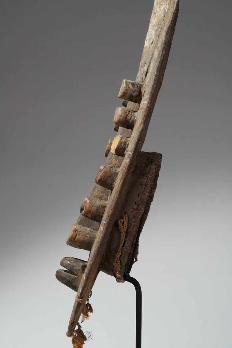Bassani, La Grand Heritage, Florence, 1992:262 is writing about this mask, states this is a classical example of the geometric style of Greba masks. On the lower flat side, the features are rendered by rigorous volumes - two cylinders for the eyes, a pyramid for the the nose and a parallelogramm for the lips. The mask is a precise geometric form which accentuated the architectural plastic qualities. Indeed Picasso was inspiered by the related mask which he purchased in Marseille in 1912 when he created the "Guitar", now in the Museum for Modern Art, New York (Rubin, Primitivism in the Art of the 20th century, 1984:20 - 21).