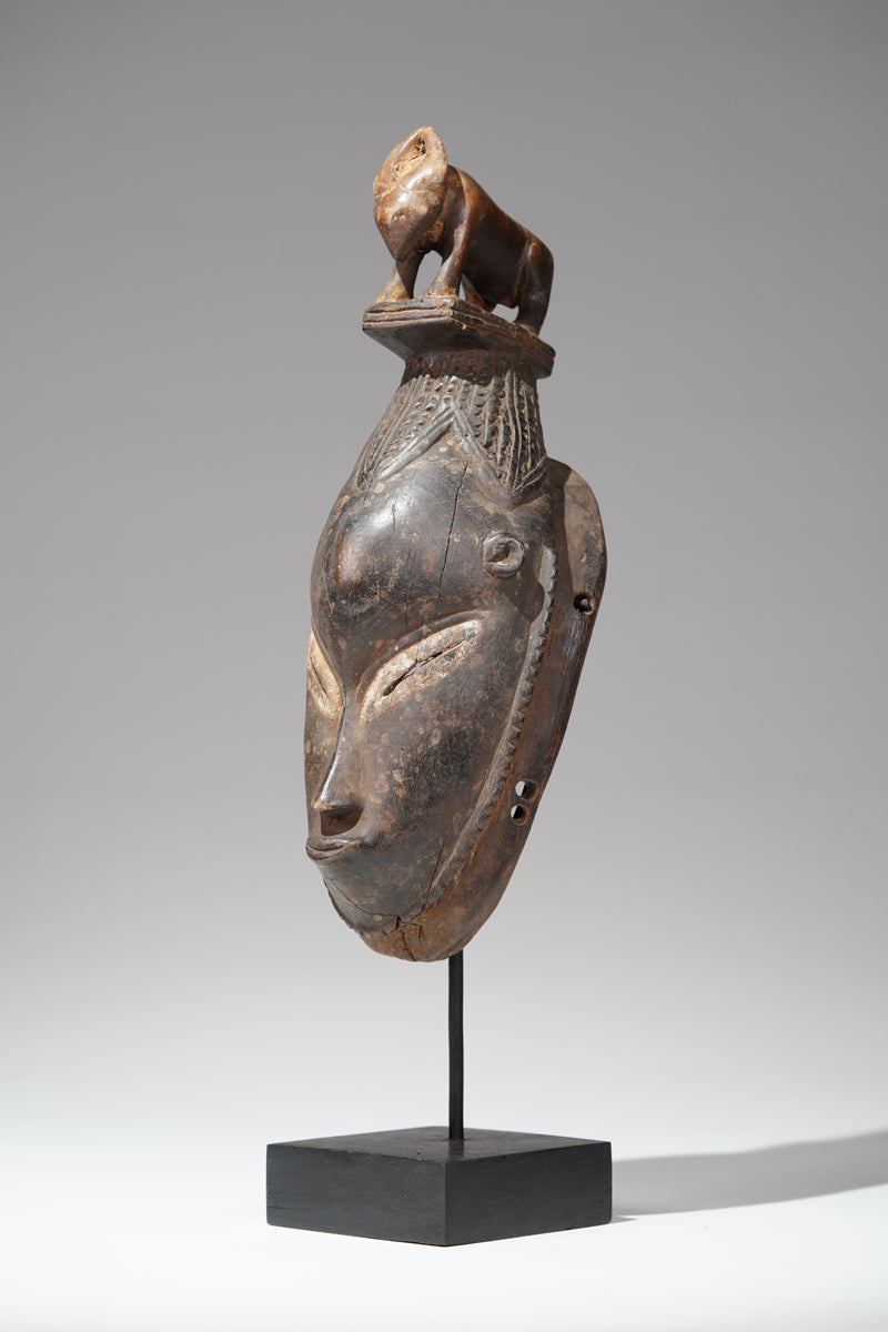 A Guro face mask, Ivory Coast, collected in the Gohitafla region. Incl. stand.Certificate of origin and provenance.