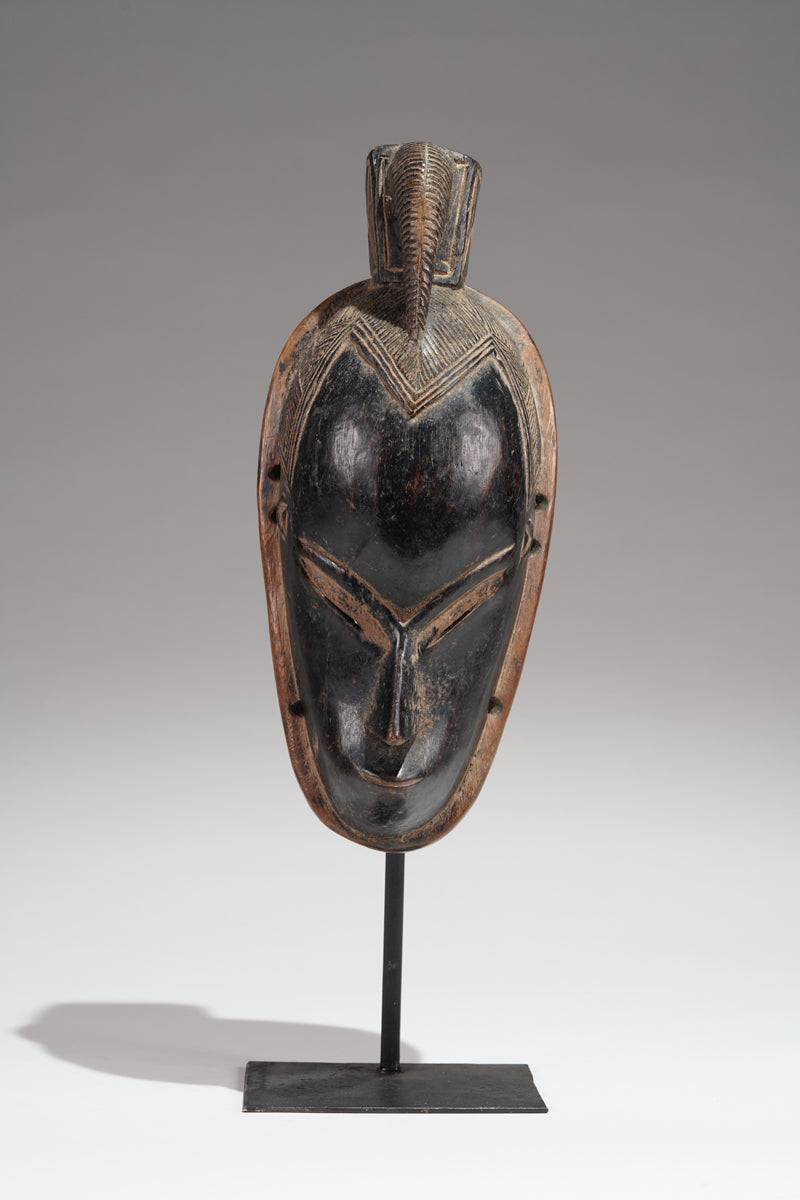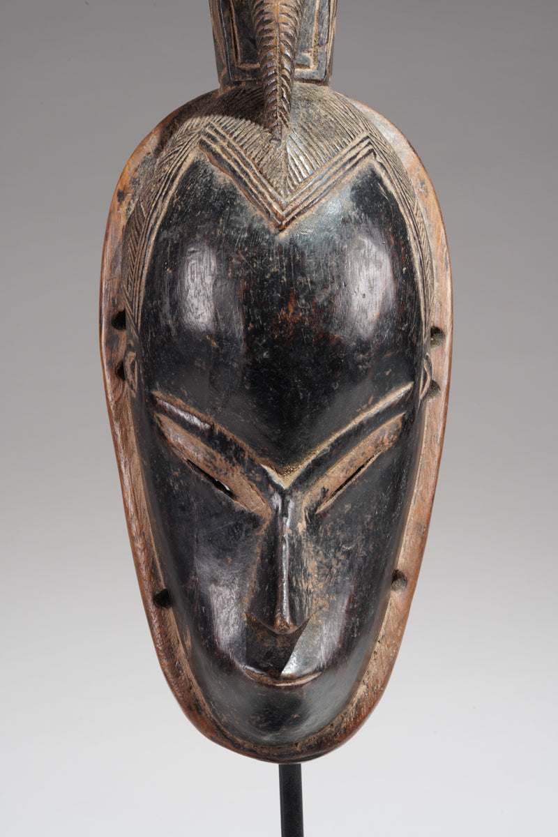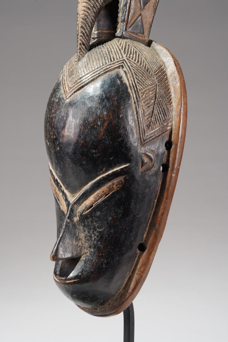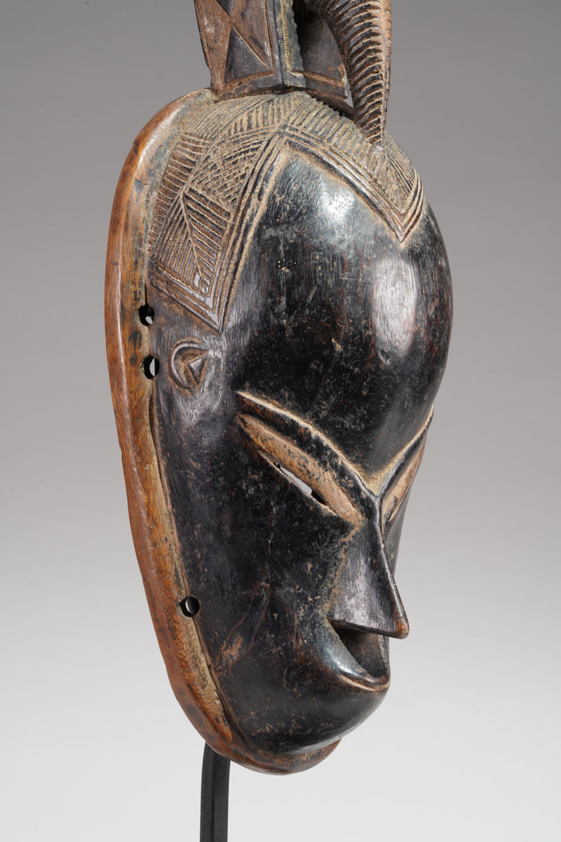 A Guro Mask, Cote d'Ivoire, collected in the region of Gohitafla, provenance Amadou Bouaflé, Abidjan, dark wood, glossy patina, signs of ritual use and age. Certificate of origin and provenance.