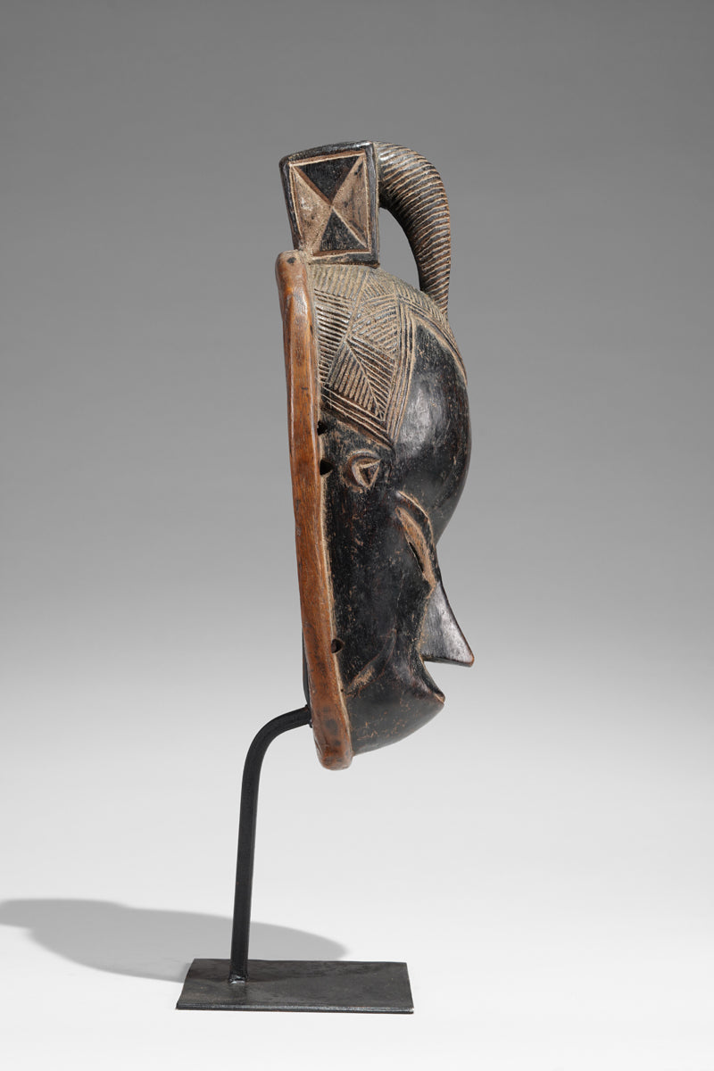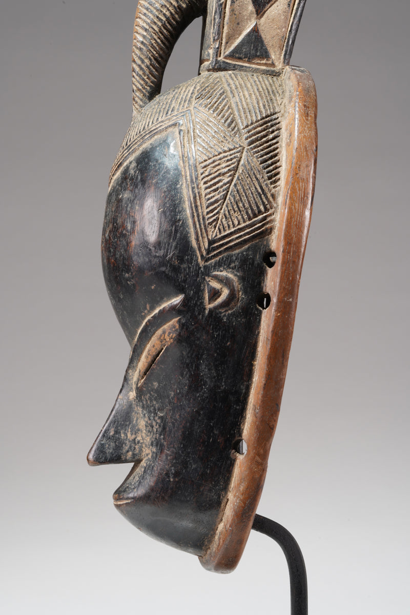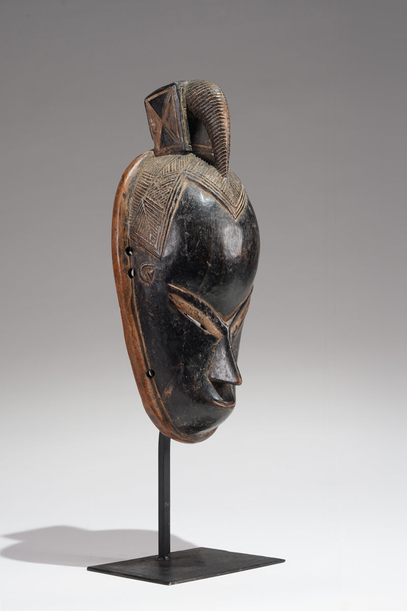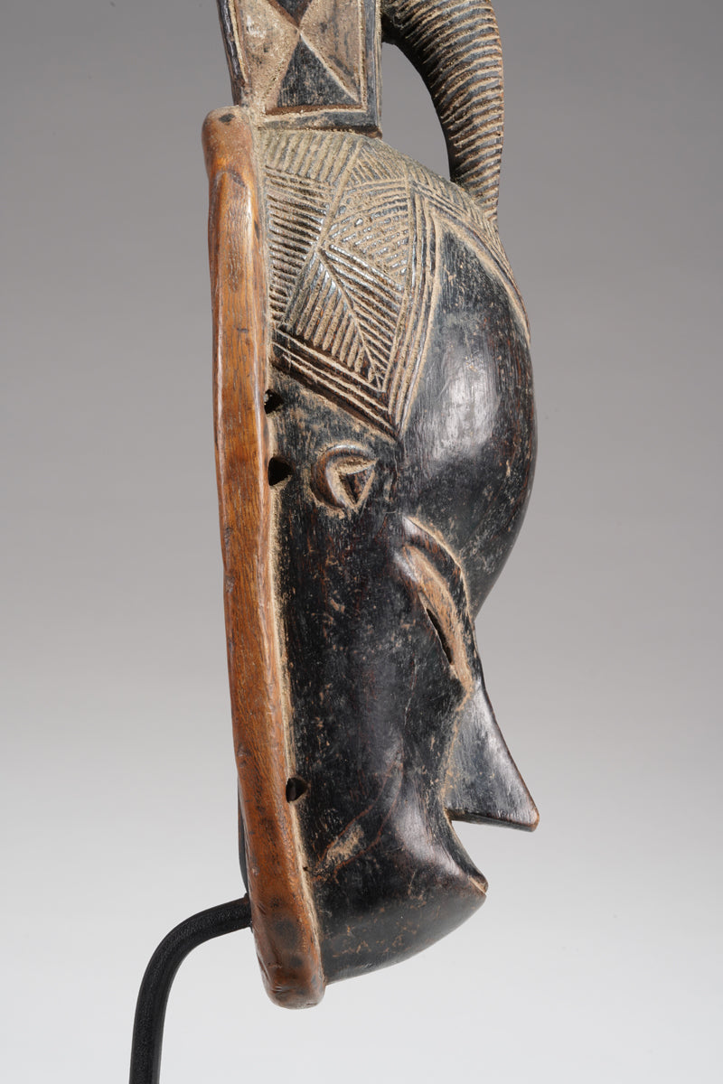 A Guro Mask, Cote d'Ivoire, collected in the region of Gohitafla, provenance Amadou Bouaflé, Abidjan, dark wood, glossy patina, signs of ritual use and age. Certificate of origin and provenance.