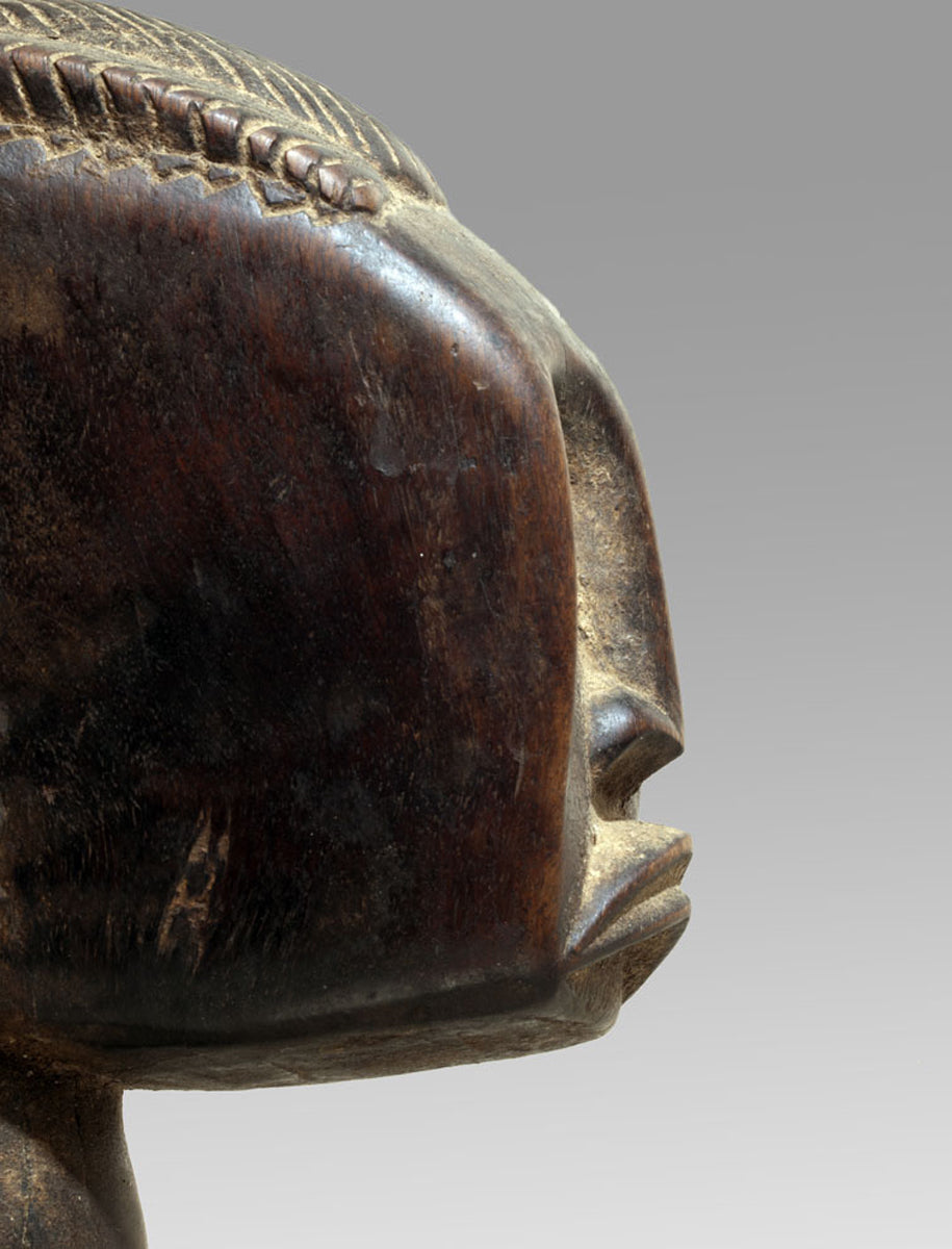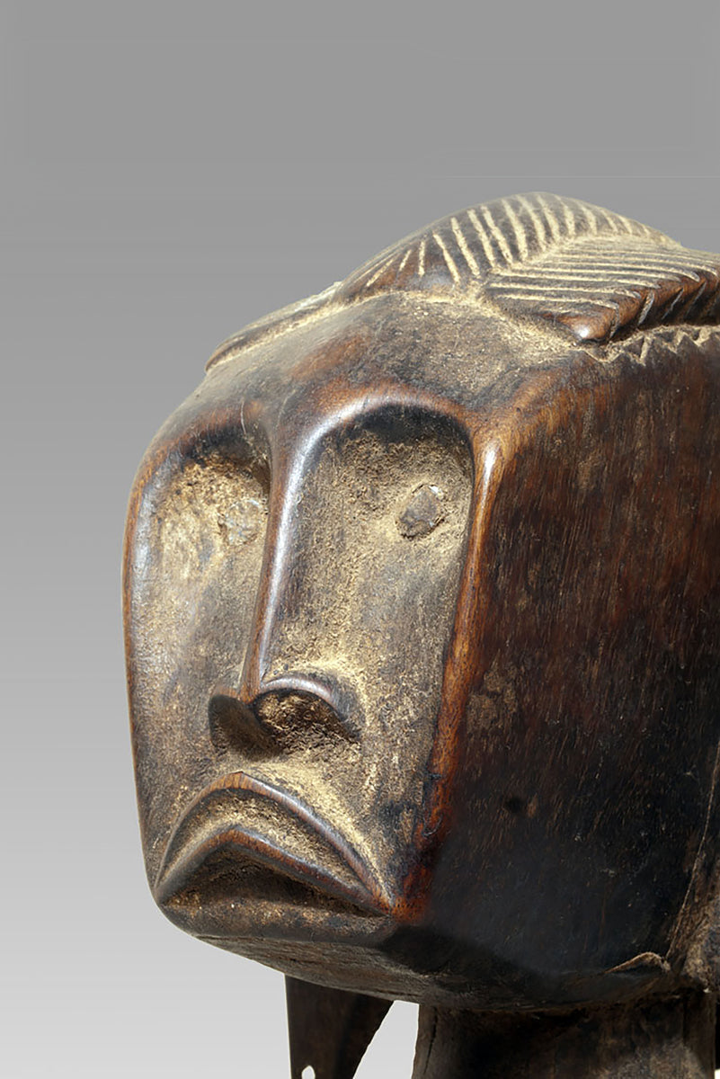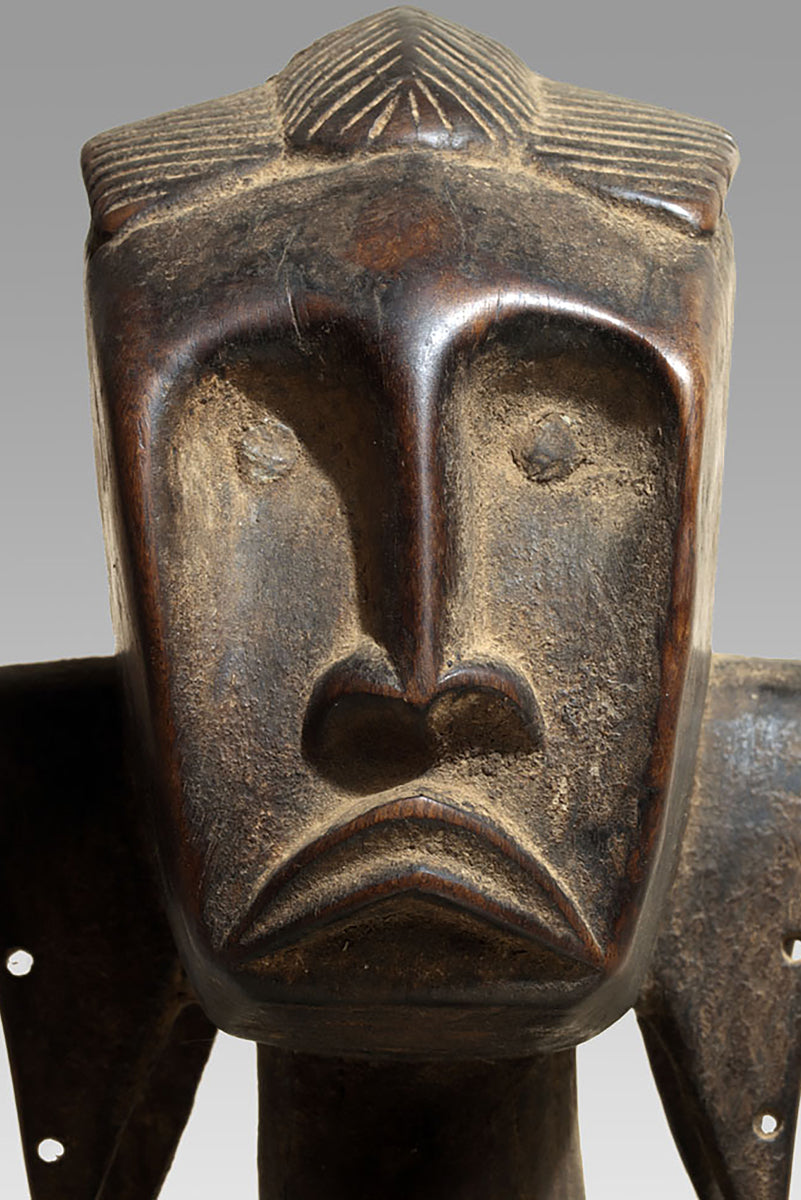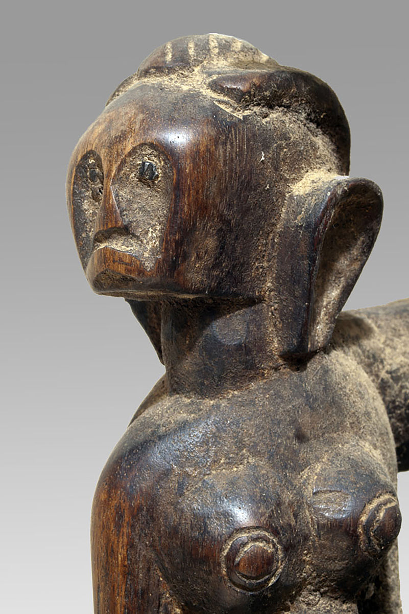 The maternities of the Bamana from the Massigui–Dioïla region occupy a distinctive position within the sculptural corpus of southern Mande societies. They articulate the ideological weight of motherhood through a restrained formal language whose clarity recalls the pedagogical functions of these figures in local initiation and moral instruction. Their appearance is shaped by regional workshop traditions that favour compact volumes and a frontal presentation, often heightened by a slightly columnar proportioning of body and limbs.