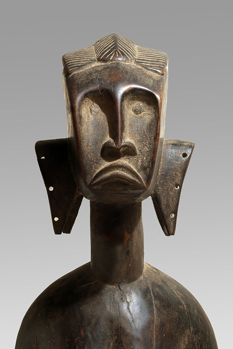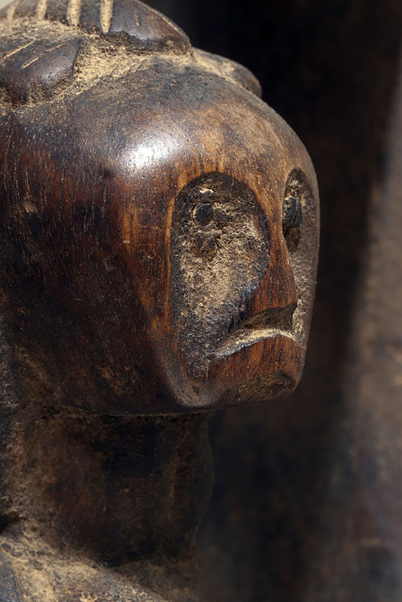 Regional distinctions in Massigui and Dioïla become visible in the slightly heavier torso construction when compared with Sikasso or Bougouni examples, and in the occasional presence of scarification motifs along the cheeks or abdomen. These marks serve as visual signatures of lineage identity and local aesthetics rather than portraits of specific individuals.