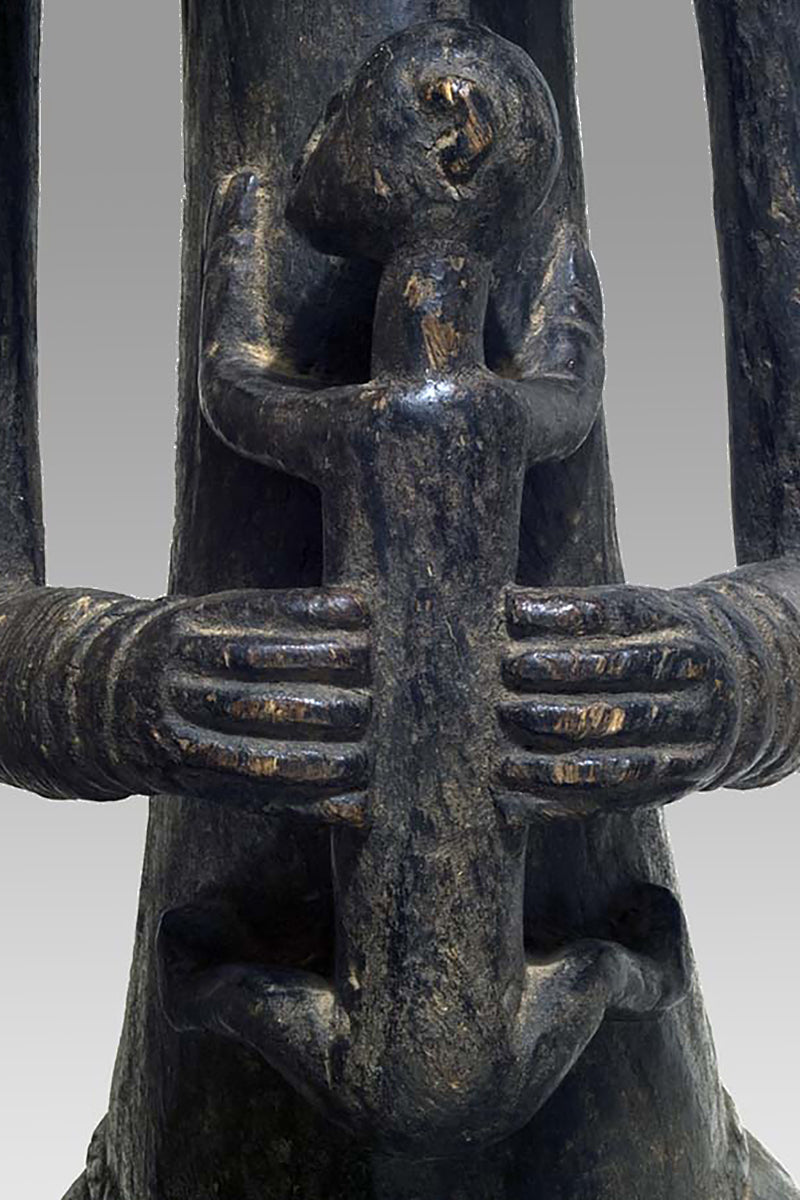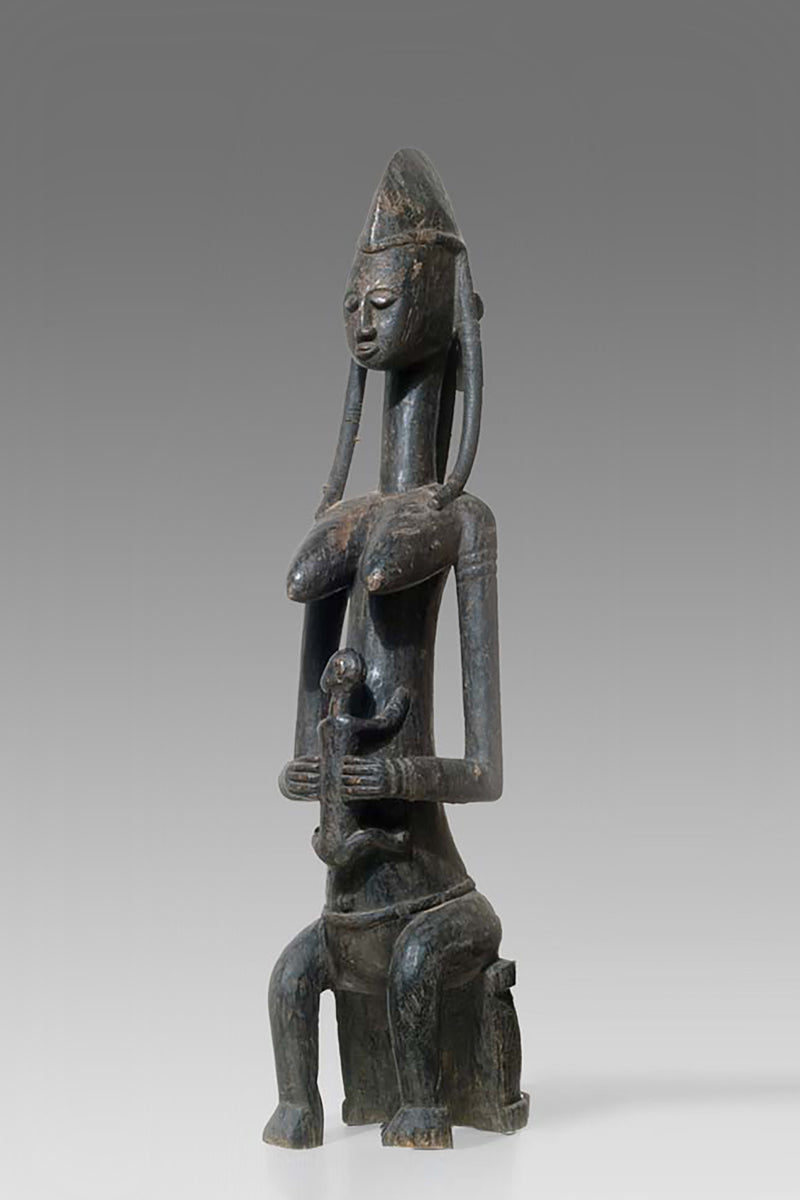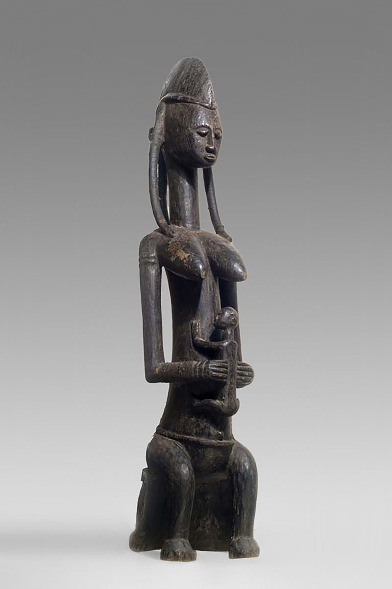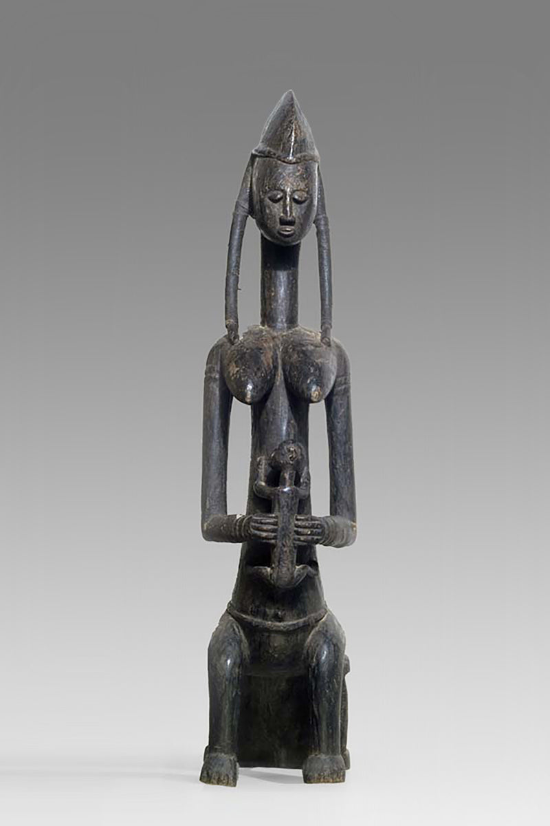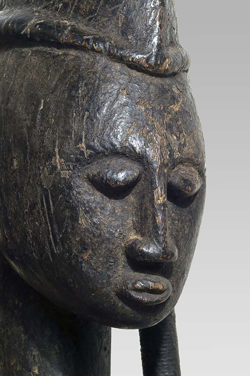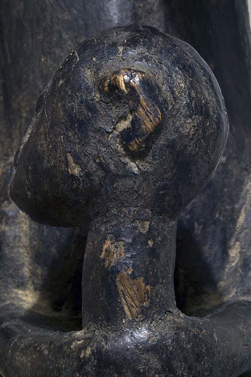 Muso Massa sculptures from Godjiila (Kuruma region) are large, carved female figures that function as emblematic representations of the highest-ranking woman in the village—often the wife or principal female of the village chief—and serve a visible role in the social and ritual topography of Bamana-speaking communities in the wider Kuruma area. s. Wolfgang Jaenicke Gallery