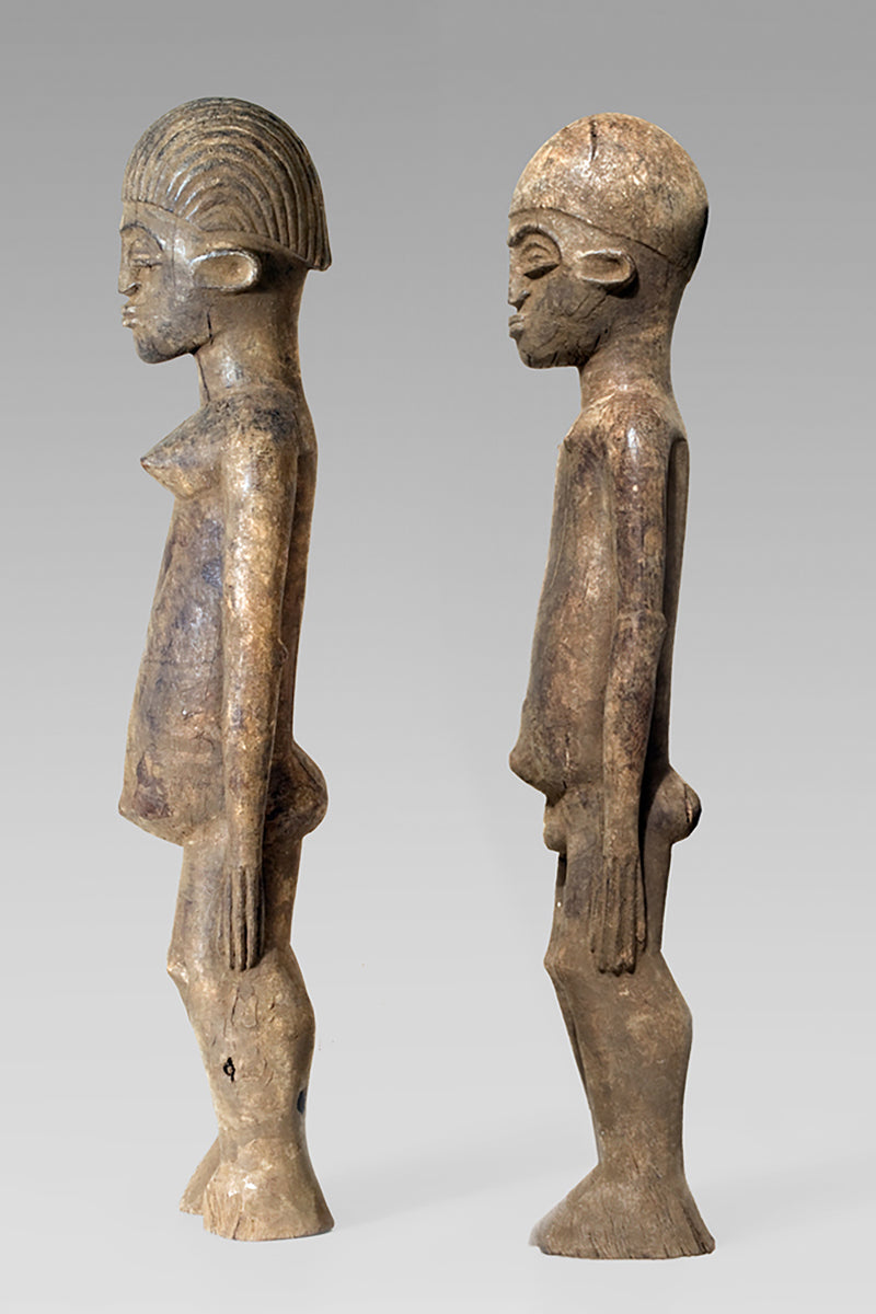 A Lobi couple of Pessare Dah, traces of ritual use and age.