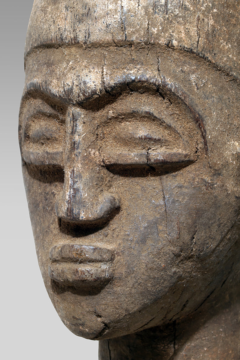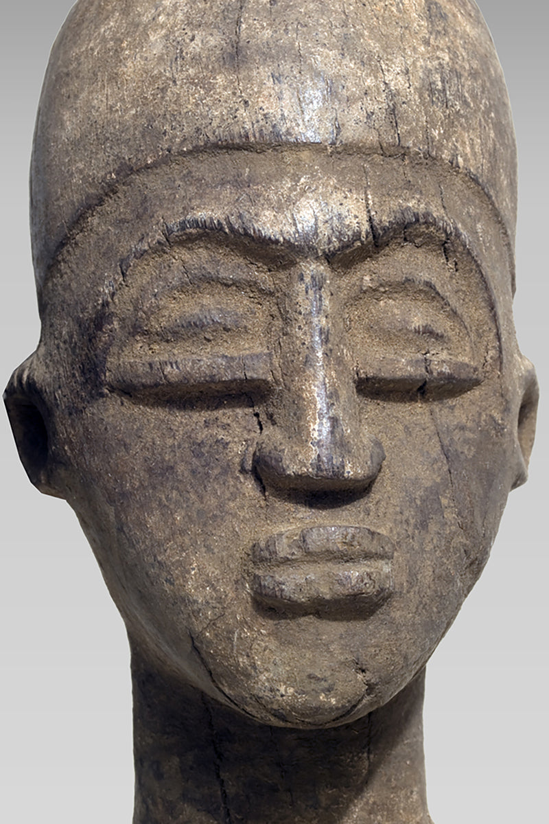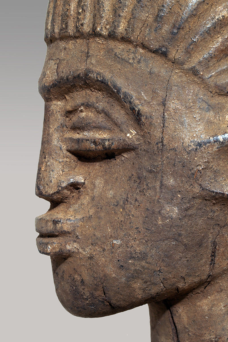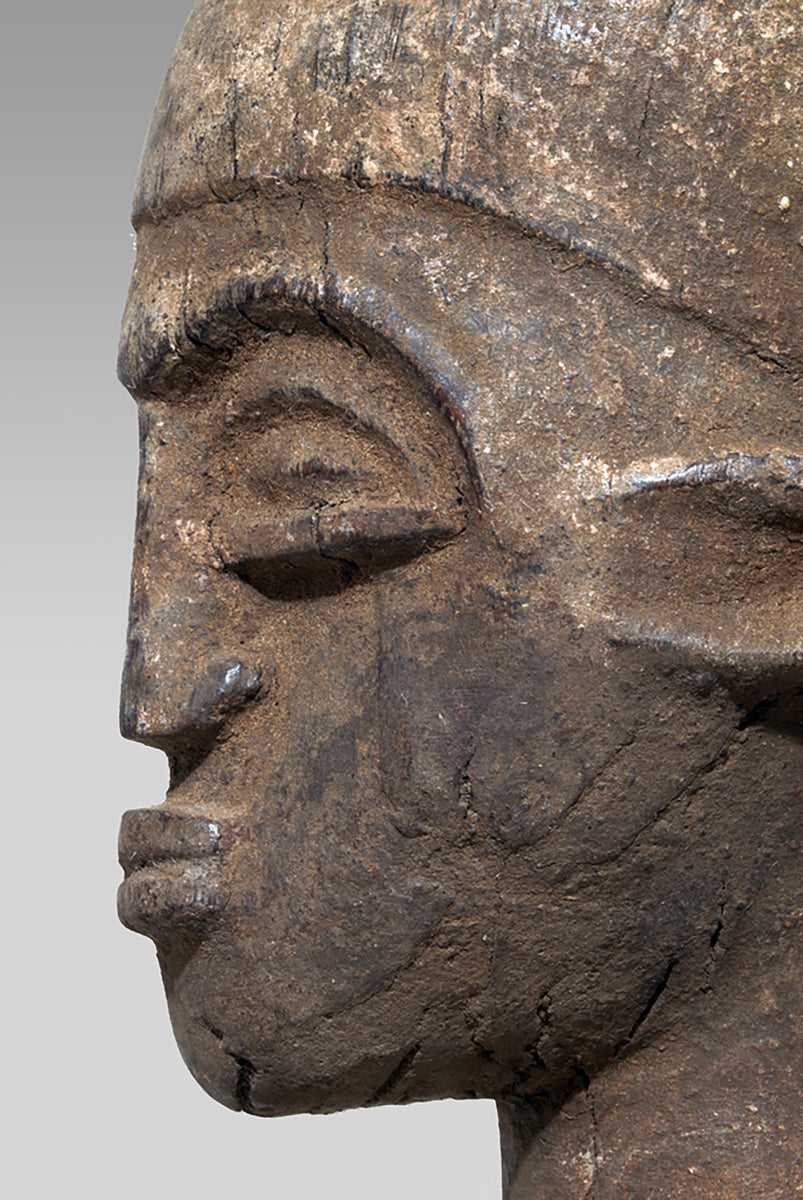 Dah’s early work was deeply influenced by Sikire Kambire, an earlier master sculptor whose death in 1963 marked the end of an era in Lobi art. Sikire’s figures, often characterized by hollowed or burned-out eyes and deep facial grooves, served as a model for Dah’s initial carvings. These formal similarities were noted in both the carving techniques and the visual language that defined the figures’ emotional intensity. Over time, however, Dah’s work evolved into something more individualistic. Scholars such as Wolfgang Jaenicke have identified three stylistic phases in Dah’s career, moving from direct imitation to a middle phase of experimentation, and ultimately to a late period marked by greater formal freedom and expressiveness (Jaenicke, 2020).