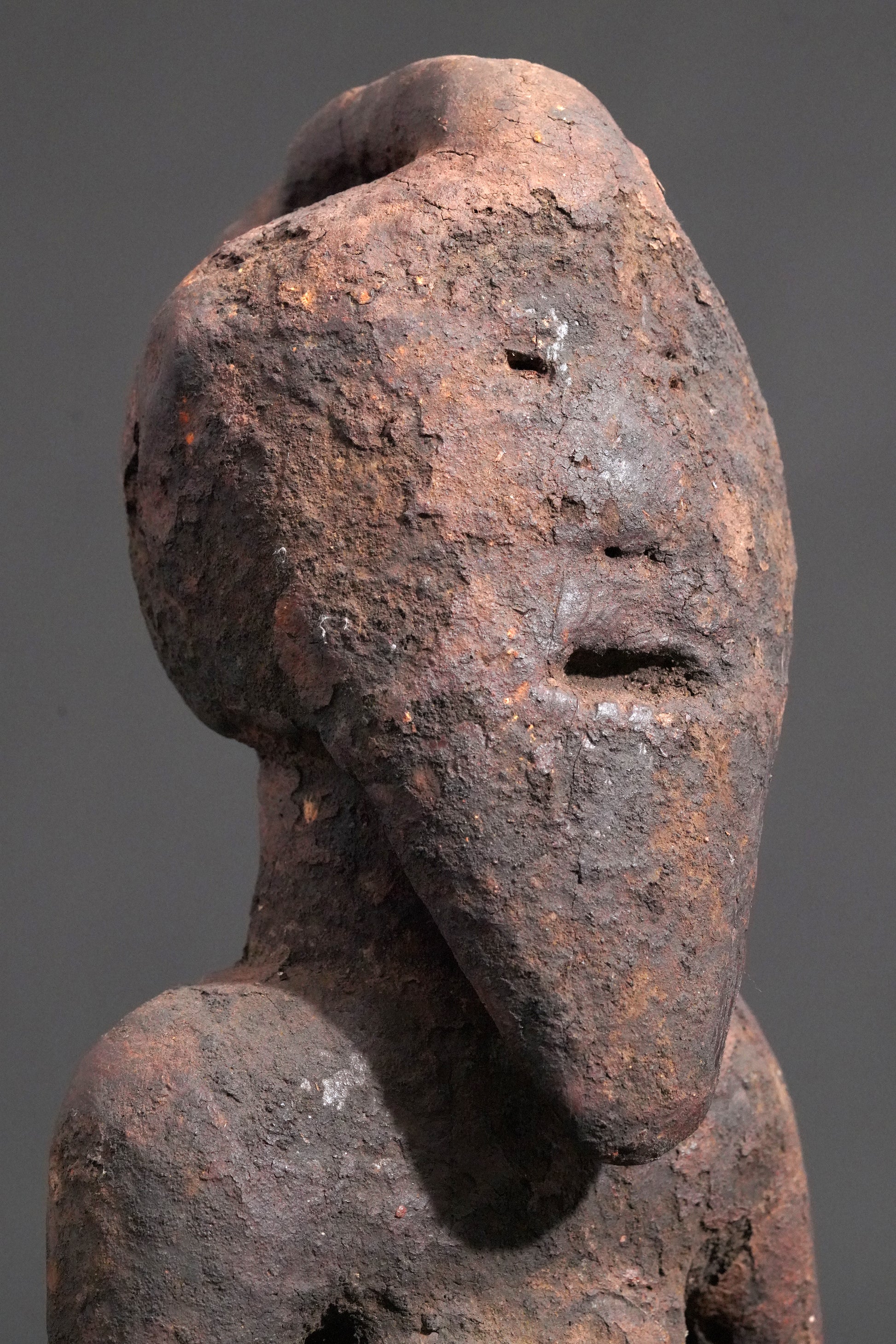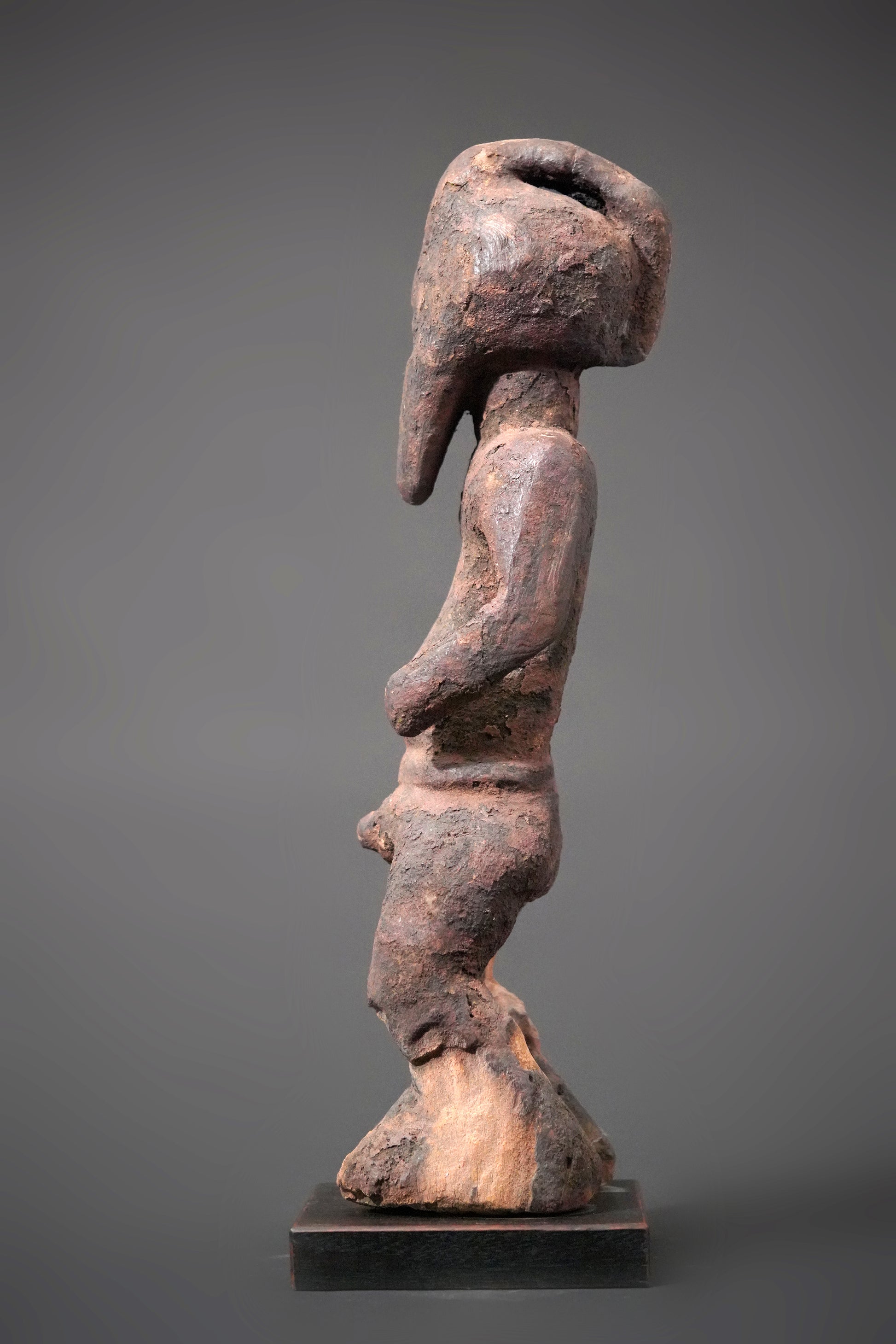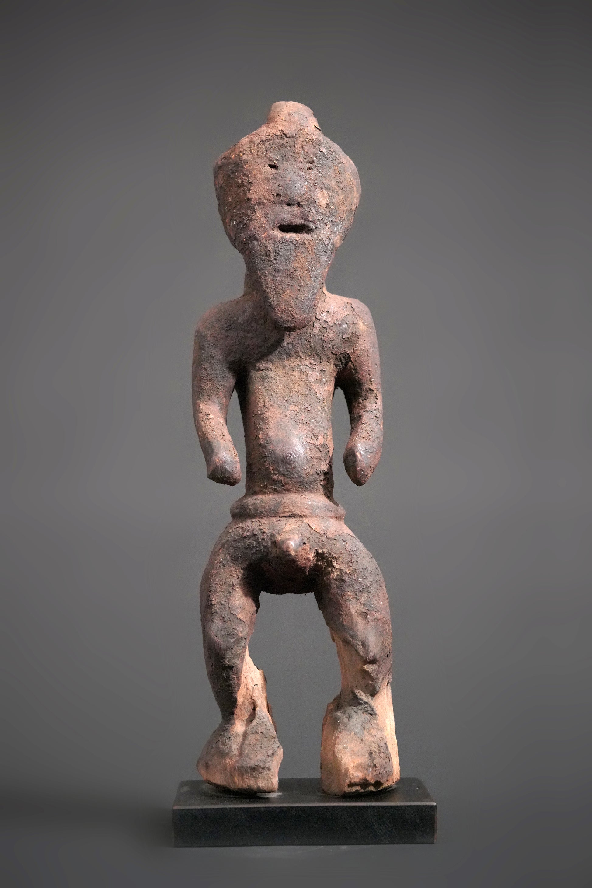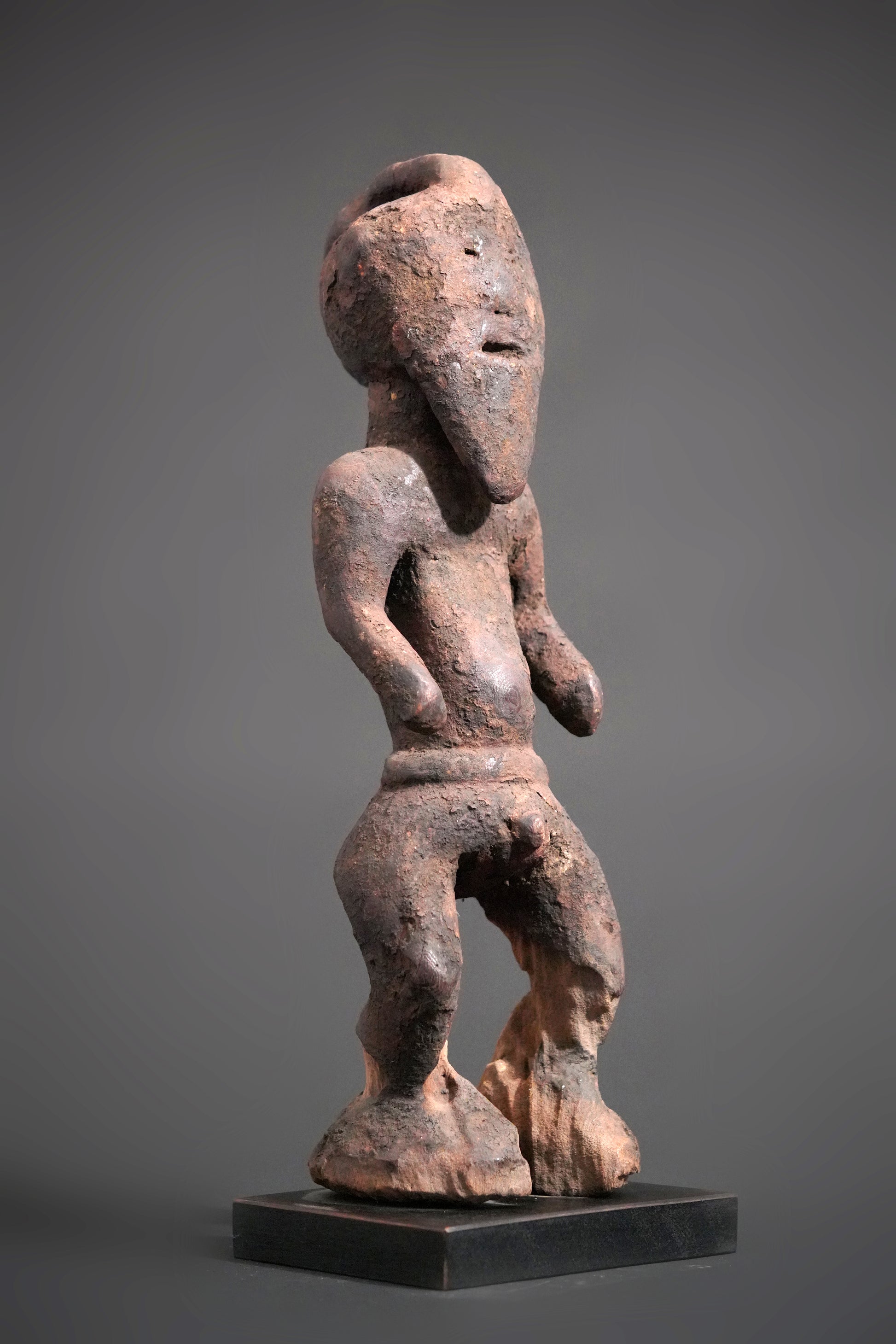 The literature on the art of these ethnic groups suggests a transitional style between the art of their neighbours, the Chamba and the Mumuye. According to Pierre Harter, these powerful statues are associated with ancestor veneration, while Baeke places them in the context of the medical rite so, referring to an extraordinary spiritual being (Lebas, 2012, p. 287). See Falgayrettes-Leveau (1996, p. 10) for a very comparable statue in the collections of the Musée Dapper.