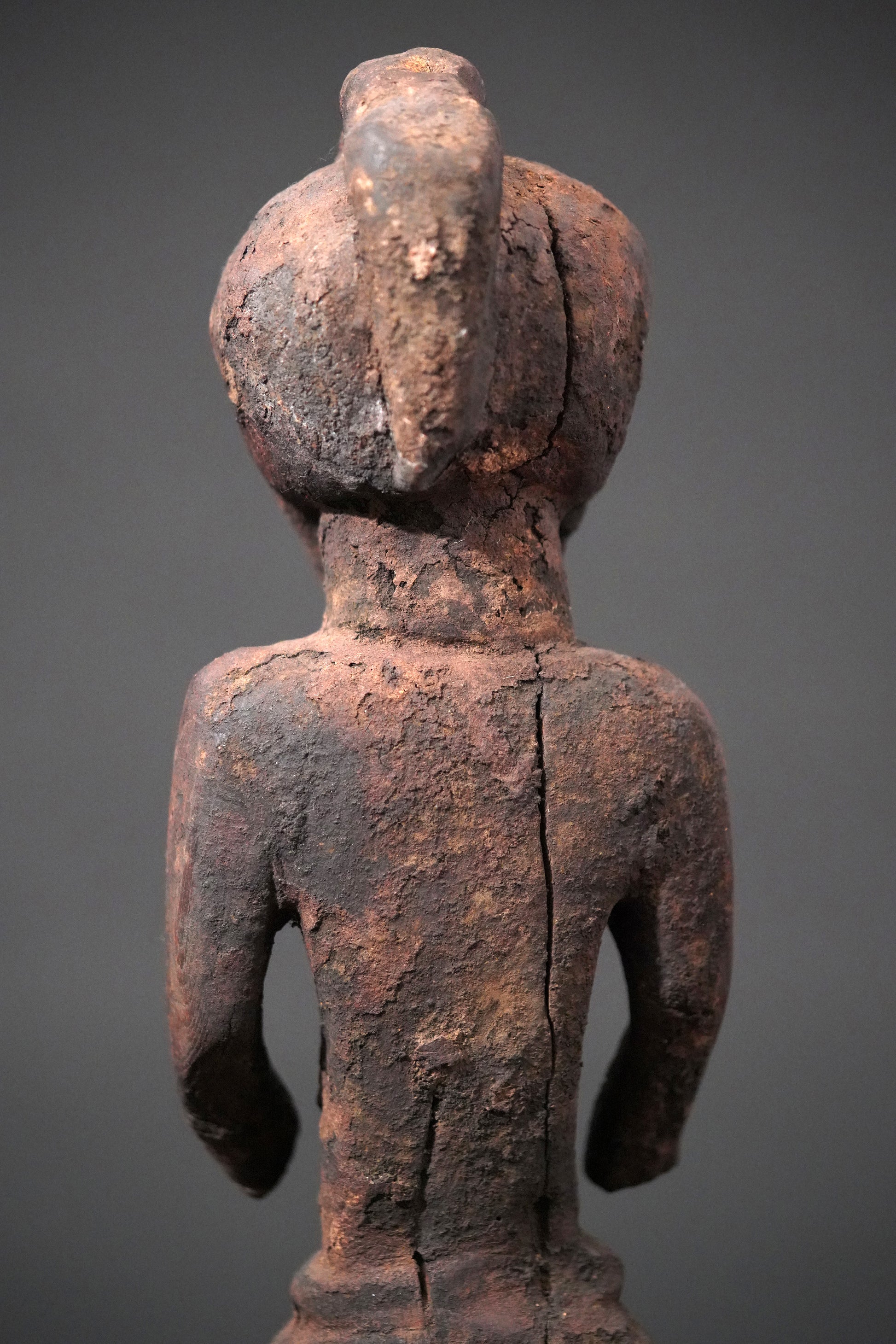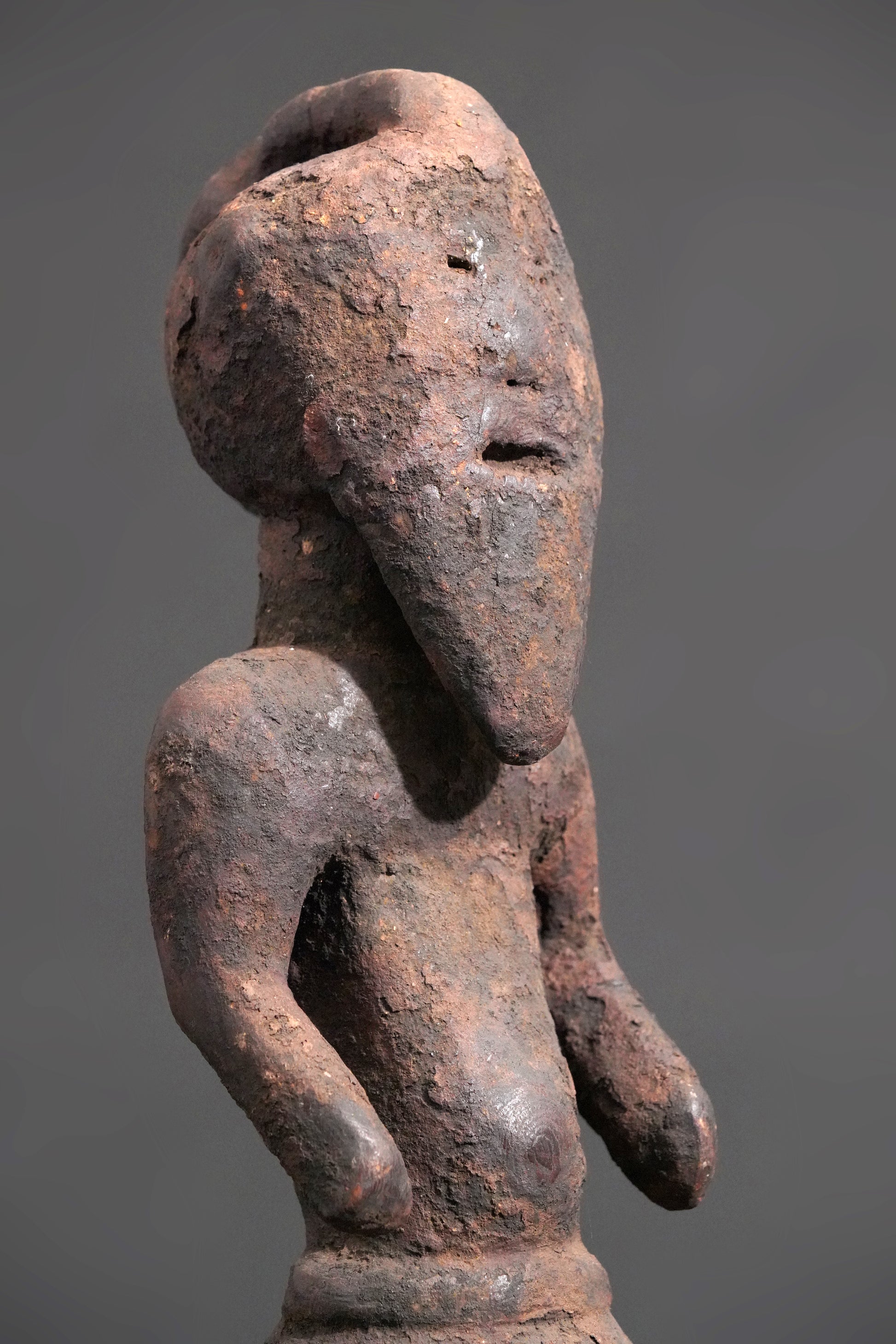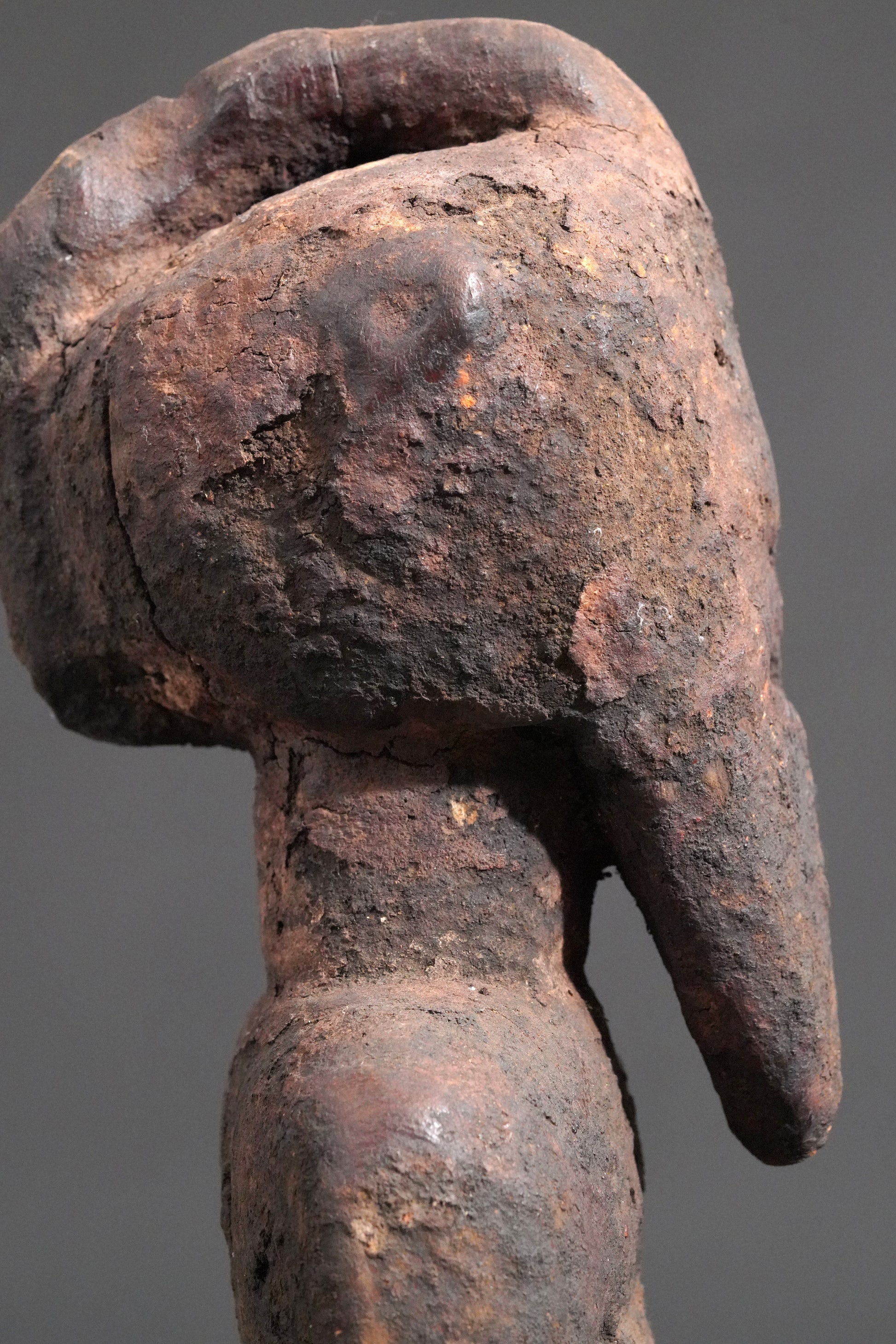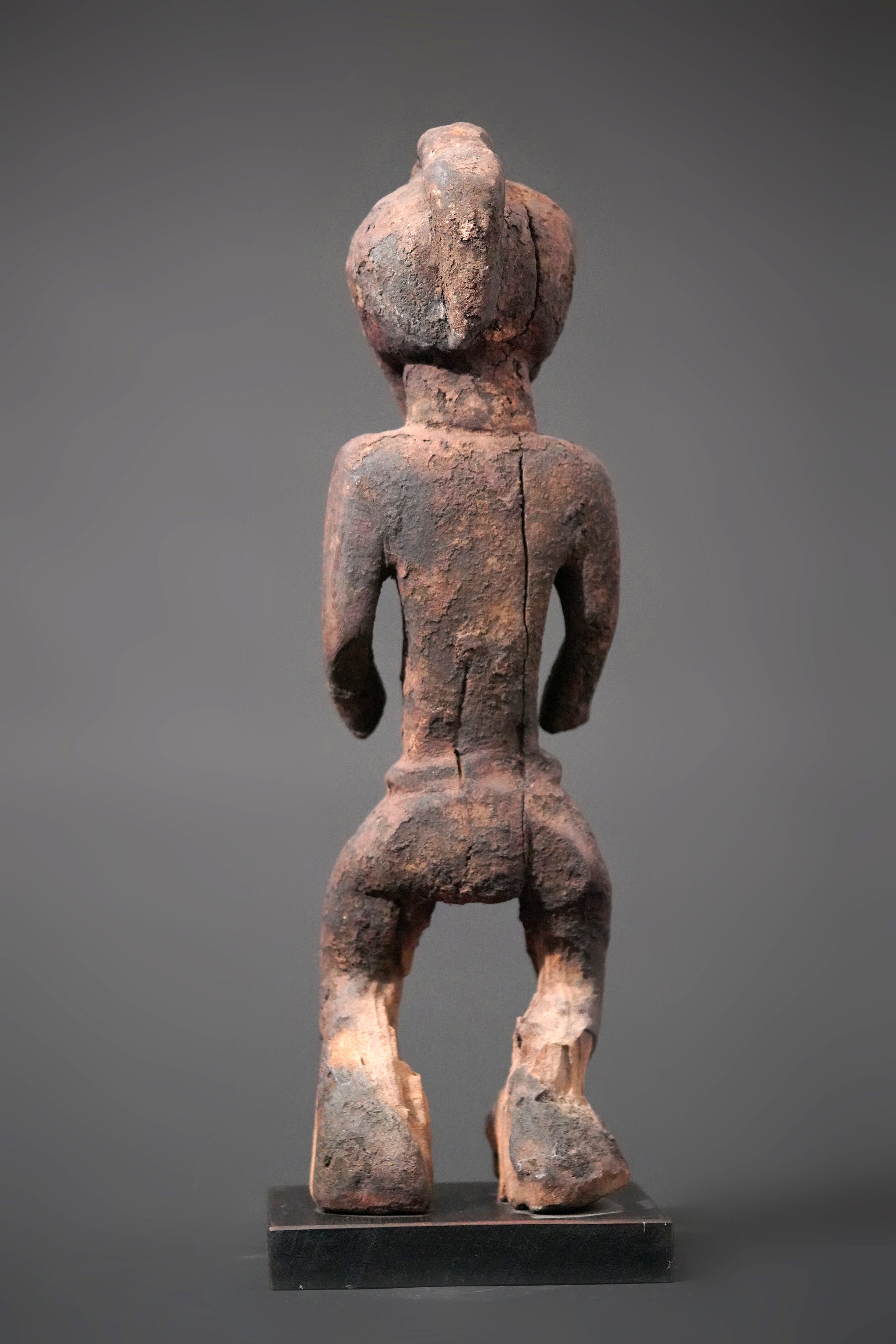 The literature on the art of these ethnic groups suggests a transitional style between the art of their neighbours, the Chamba and the Mumuye. According to Pierre Harter, these powerful statues are associated with ancestor veneration, while Baeke places them in the context of the medical rite so, referring to an extraordinary spiritual being (Lebas, 2012, p. 287). See Falgayrettes-Leveau (1996, p. 10) for a very comparable statue in the collections of the Musée Dapper.
