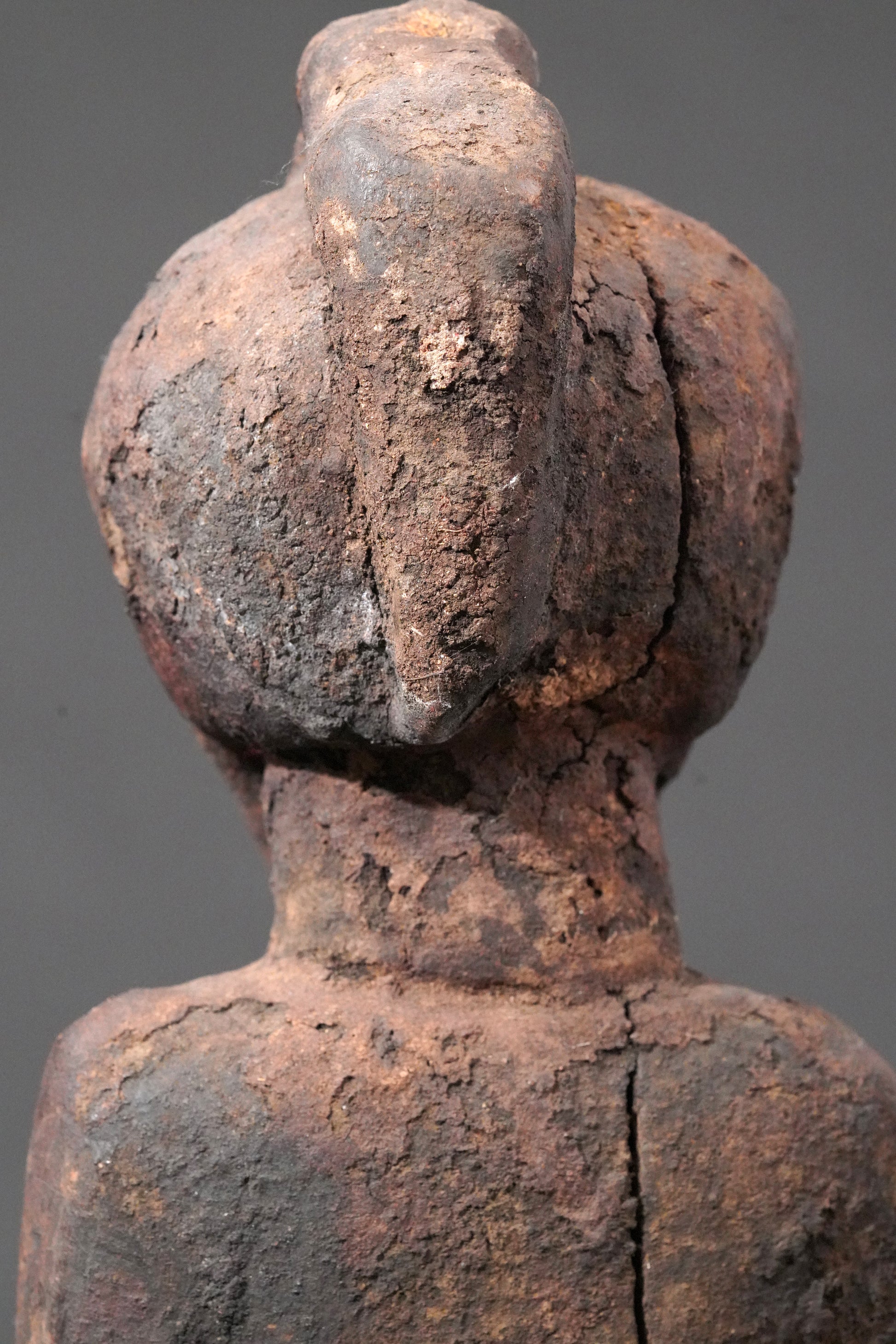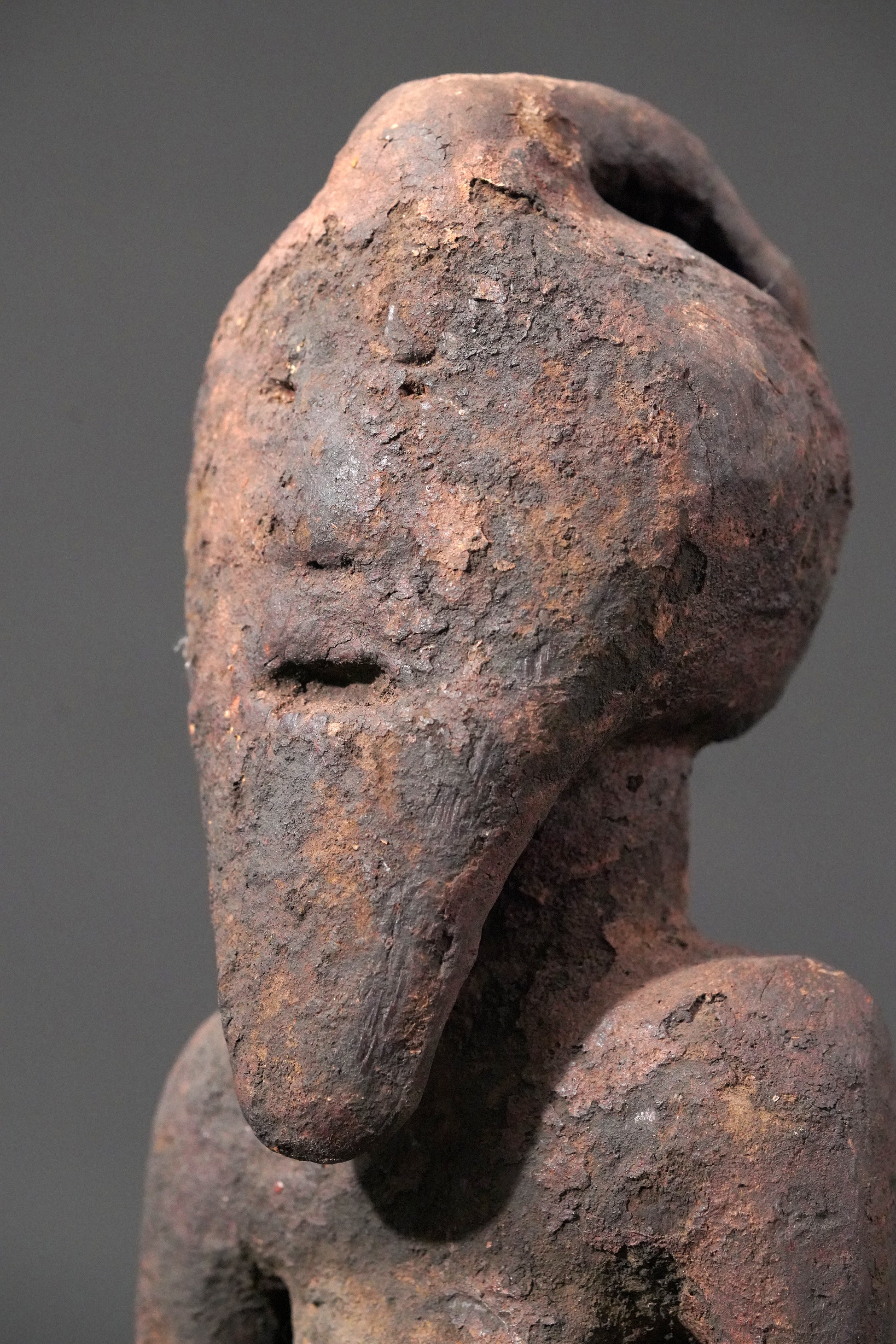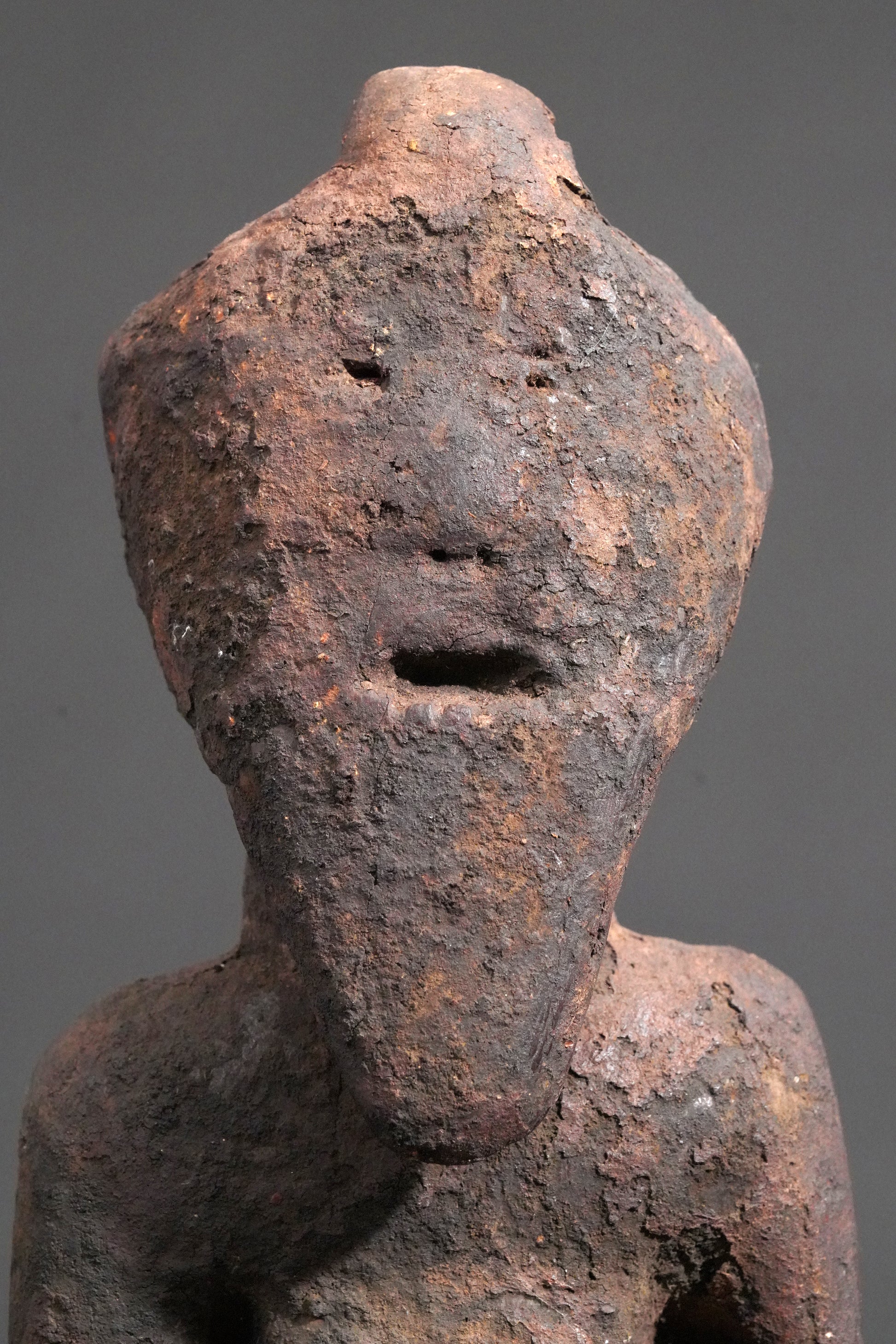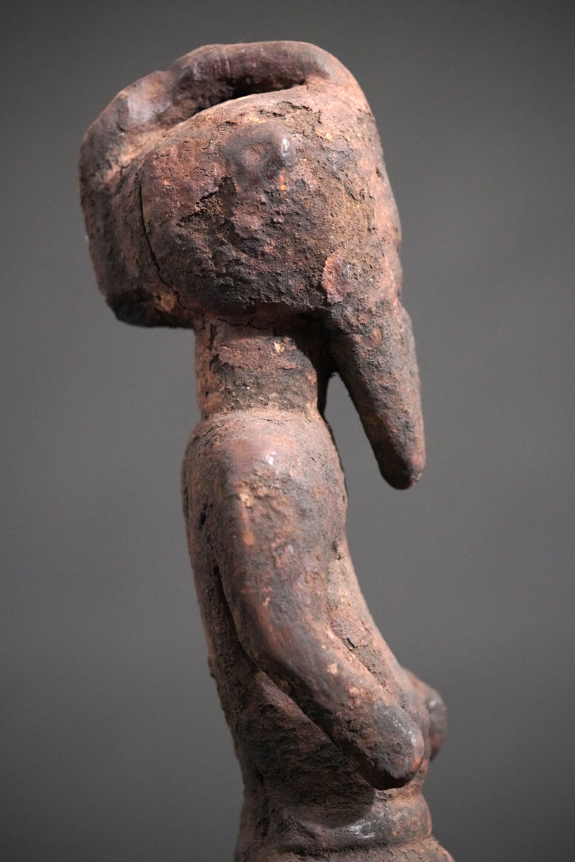 The literature on the art of these ethnic groups suggests a transitional style between the art of their neighbours, the Chamba and the Mumuye. According to Pierre Harter, these powerful statues are associated with ancestor veneration, while Baeke places them in the context of the medical rite so, referring to an extraordinary spiritual being (Lebas, 2012, p. 287). See Falgayrettes-Leveau (1996, p. 10) for a very comparable statue in the collections of the Musée Dapper.