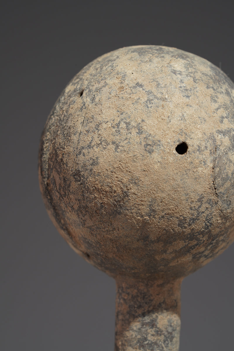 "A great discovery were the so called "Prampram" sculptures, which are stylistically related to the Northern part of the small tribes in Northern Ghana and Togo, in particular the Moba. In my interview Baba Sylla, Accra, Ghana, isn´t speaking about a "tribe“, he named it "a great family", which seems to be incorrect under anthropological aspects, but it is a link to the fact, how small this "tribe" is or was in reality. Maybe this is the reason that these sculptures are unknown in literature. Only Karl-Heinz Krieg (short before his death) conducted unpublished researches with voice protocols close to the hut, where these sculptures were once part of a shrine. But a friend of him told me that Mr. Krieg had no possibility to access the hut."