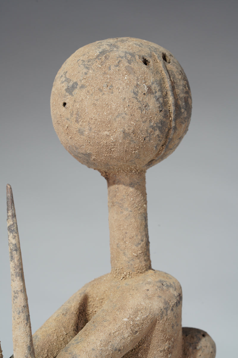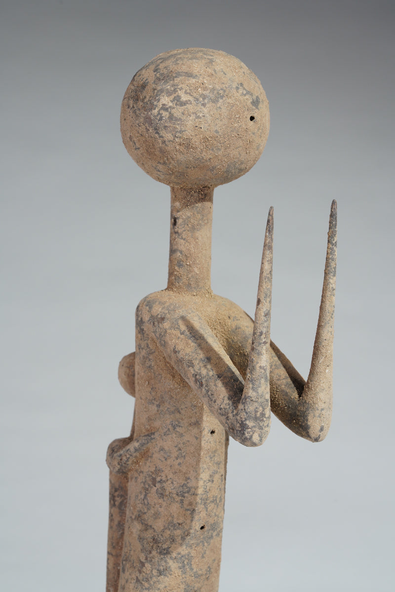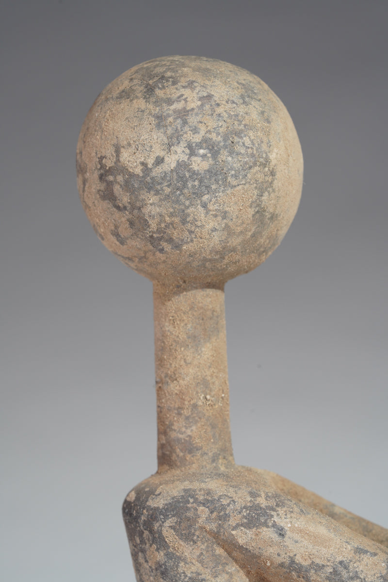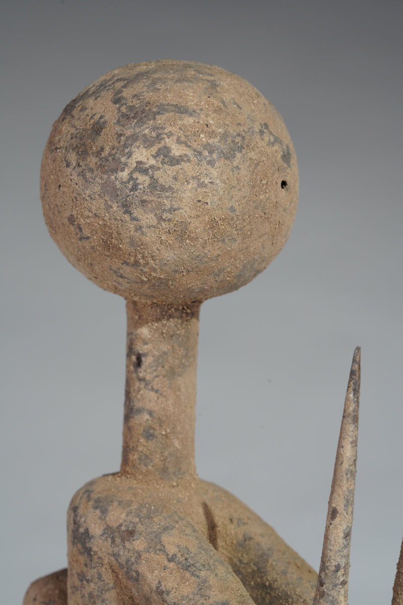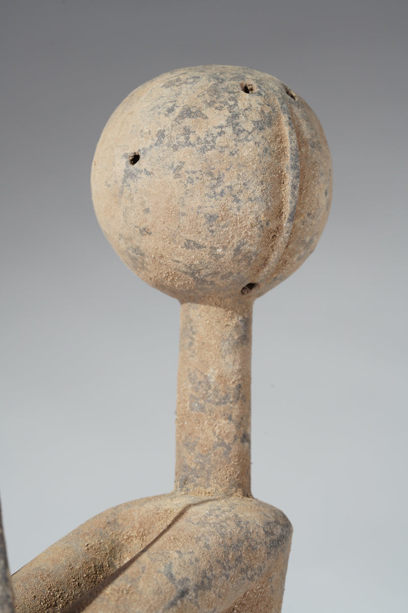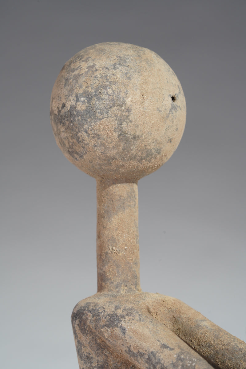 In the coastal Ga communities of Ghana, particularly in Prampram, sculptural representations of bodily irregularity or physical handicap are rare but conceptually significant. They often appear within ritual or funerary contexts, where the body becomes a metaphor for the relationship between the living, the ancestors, and the spiritual realm. The example from Prampram verifies this conception through its deliberate distortion of form, which functions not as a record of infirmity but as a visual marker of liminality and spiritual agency.