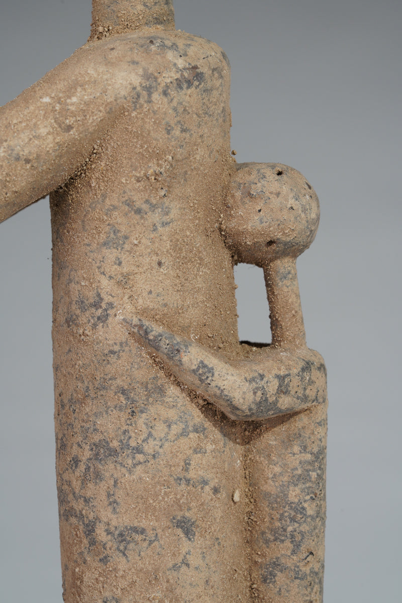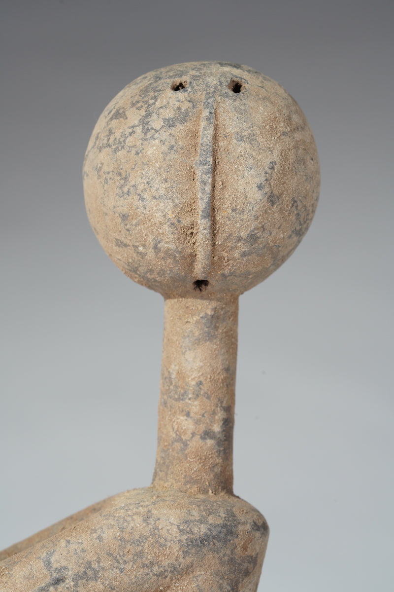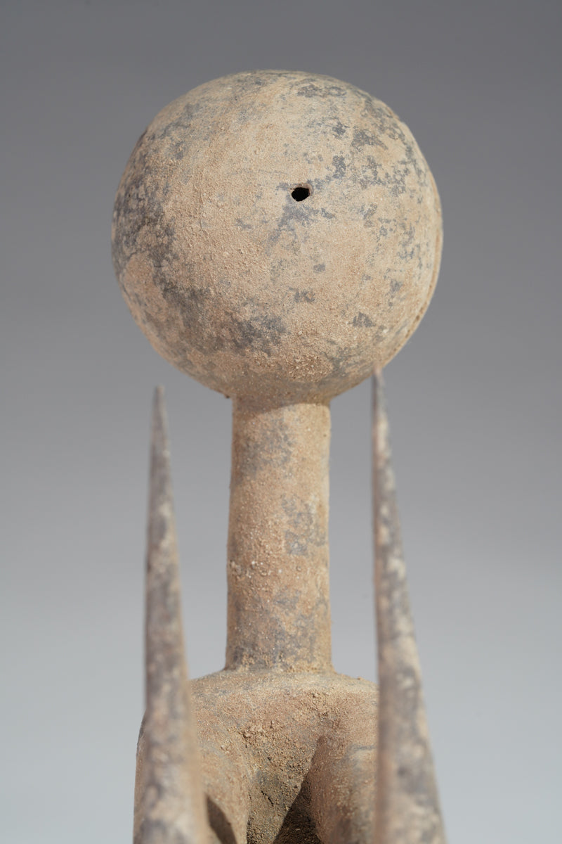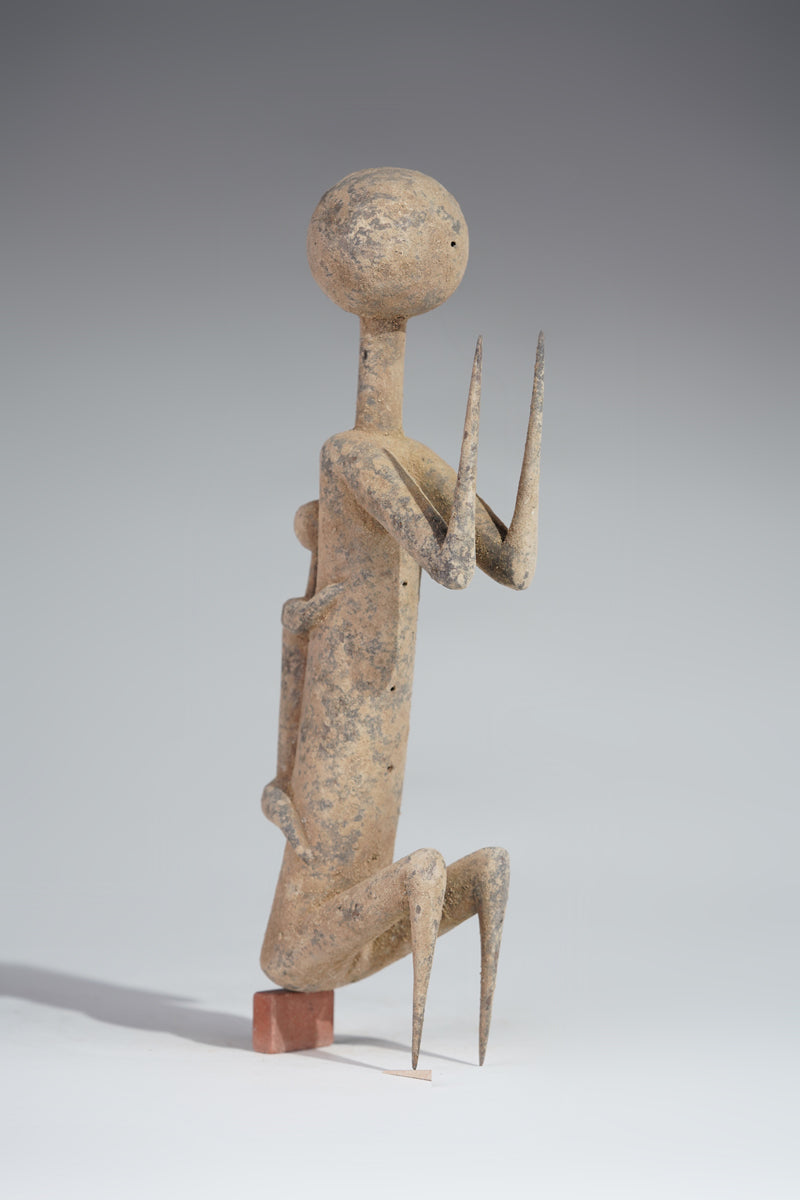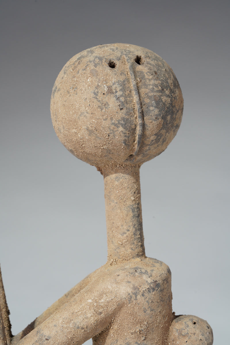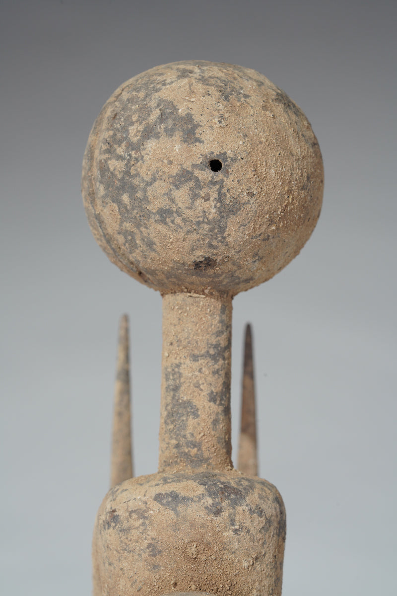 In the coastal Ga communities of Ghana, particularly in Prampram, sculptural representations of bodily irregularity or physical handicap are rare but conceptually significant. They often appear within ritual or funerary contexts, where the body becomes a metaphor for the relationship between the living, the ancestors, and the spiritual realm. The example from Prampram verifies this conception through its deliberate distortion of form, which functions not as a record of infirmity but as a visual marker of liminality and spiritual agency.
