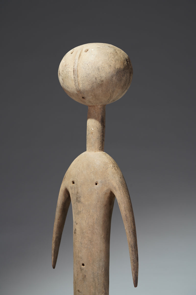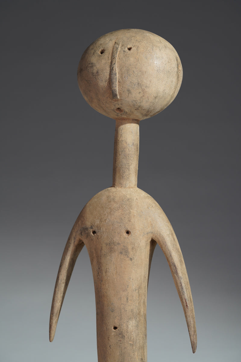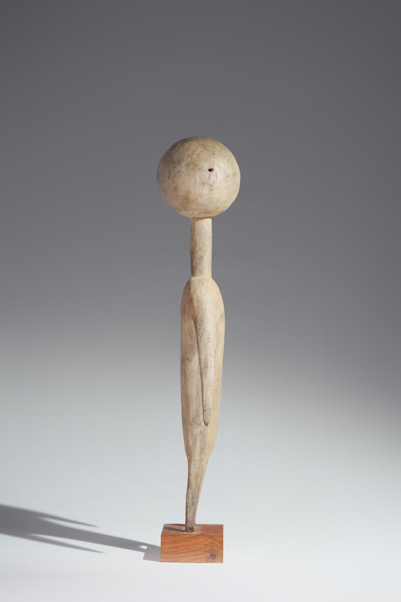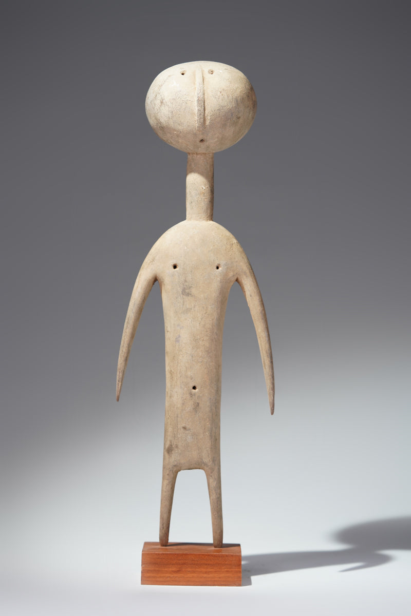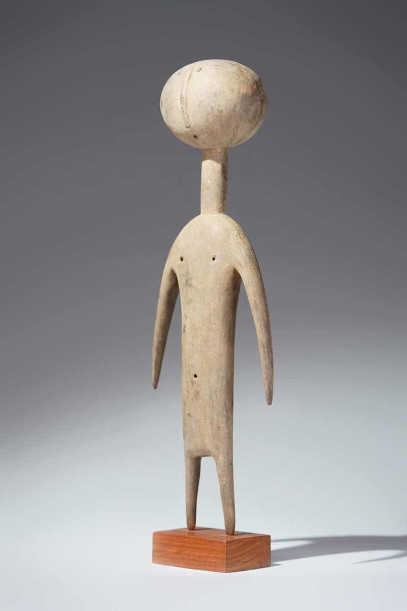 A PramPram couple, Ghana, elongated body with tapering limbs, a spherical head, eyes, ears, navel and nipples are represented as indentations, the nose in the shape of a small ridge, collected from Baba Sylla., Accra, Ghana.